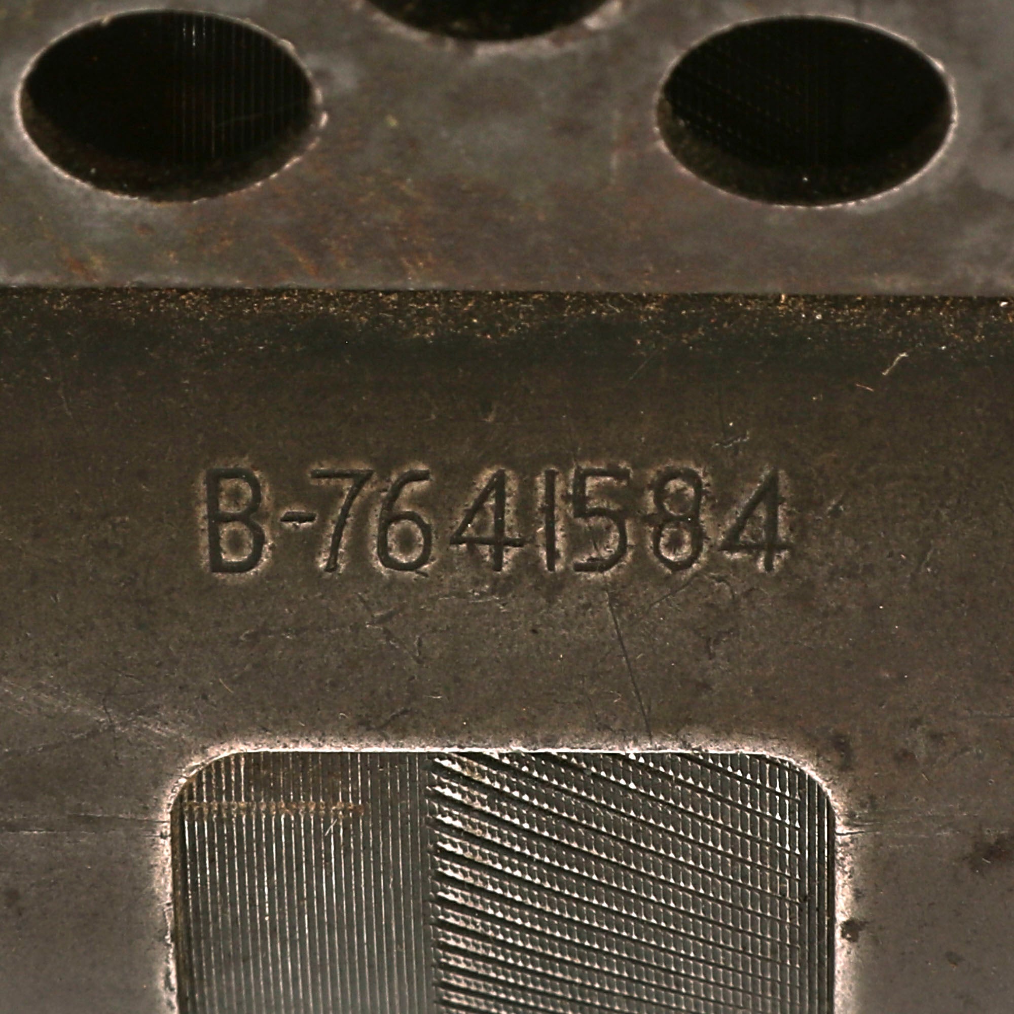While it is non functional, the breech door still can be open and closed relatively easily.It also still has the original markings visible on the bottom front of the rear housing, which give the model, serial number, and inspection date:-