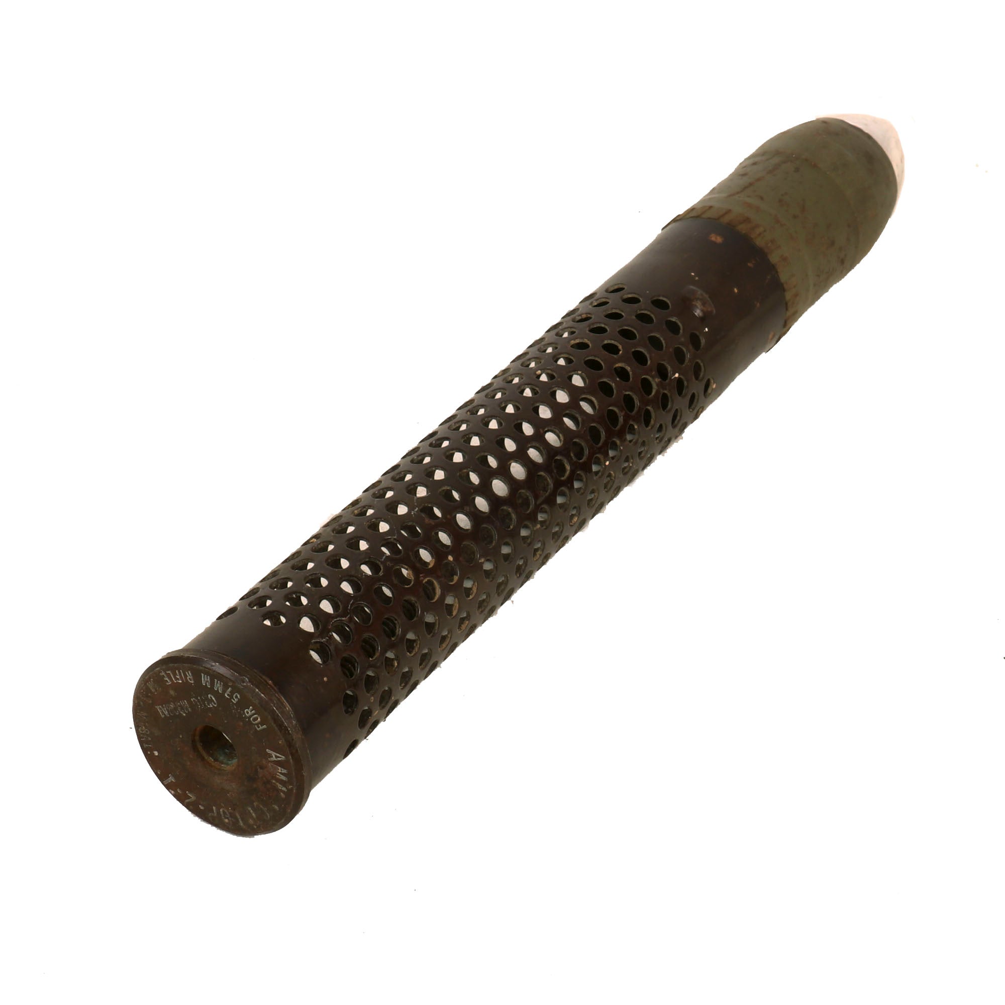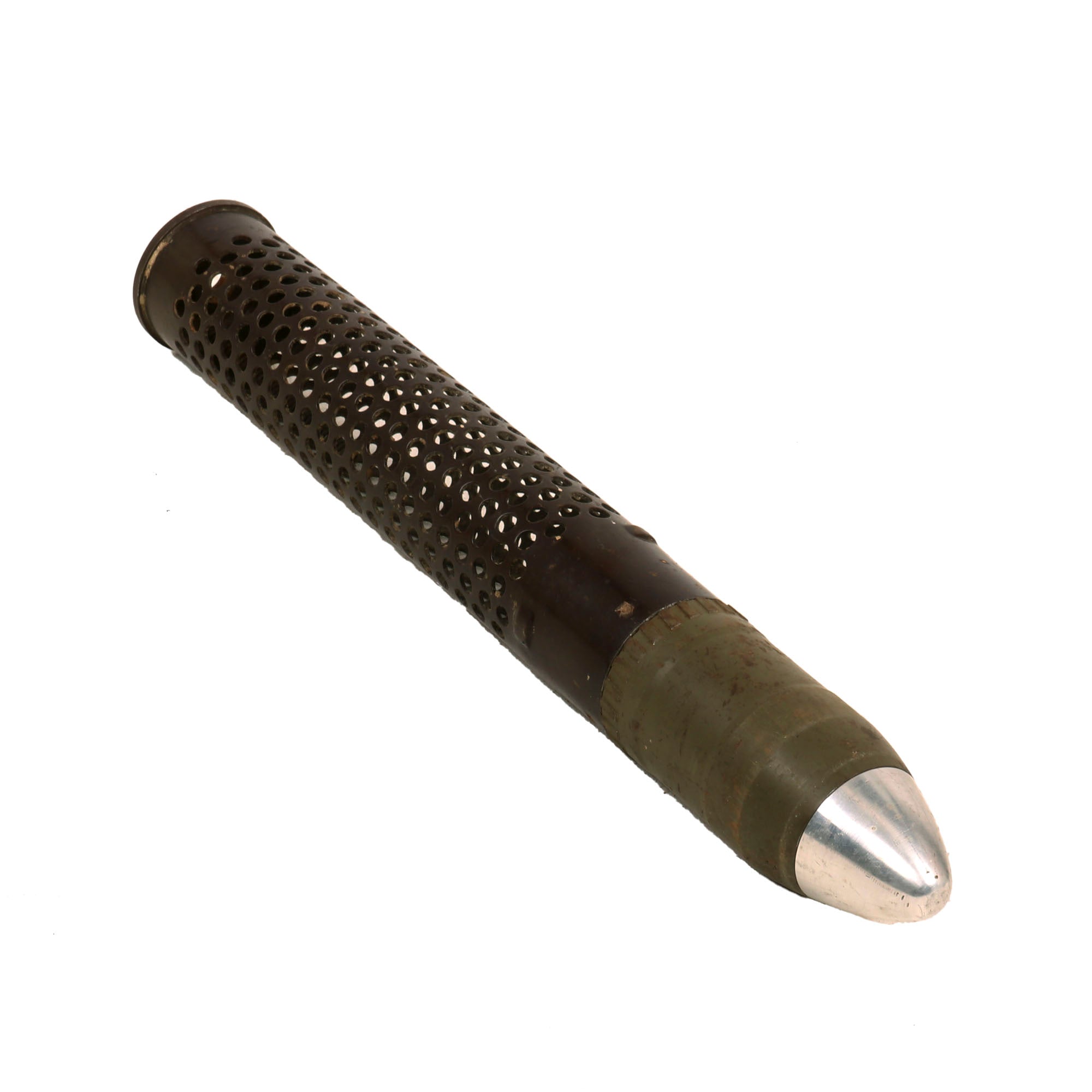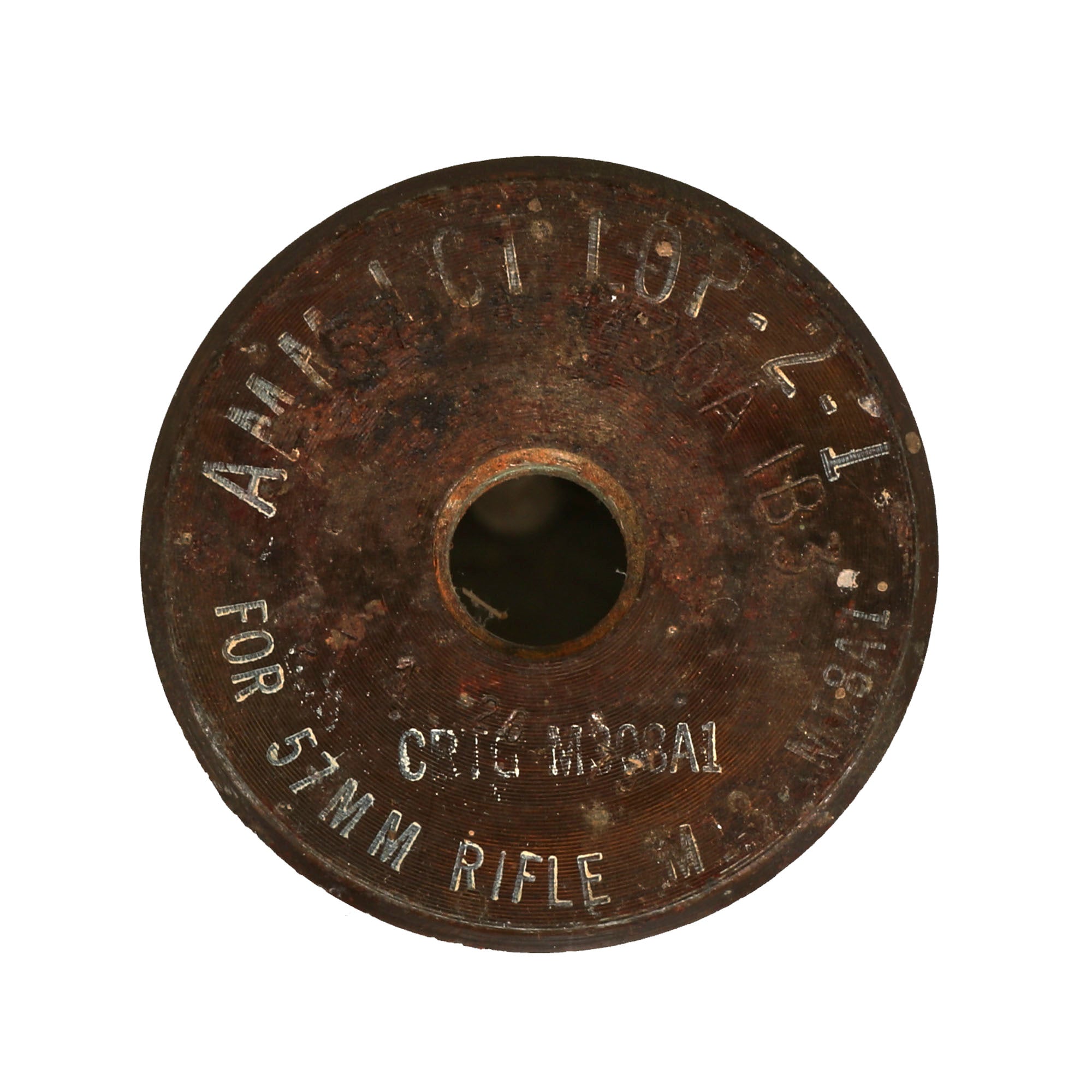 ● An inert 57 MM M306A1 Projectile with an aluminum dummy fuze on the top, which are housed in a 57 MM M30A1B3 shell casing. This comes with the correct 57MM RIFLE CONT. M167A2 canister. These all appear to be from the 1970s.