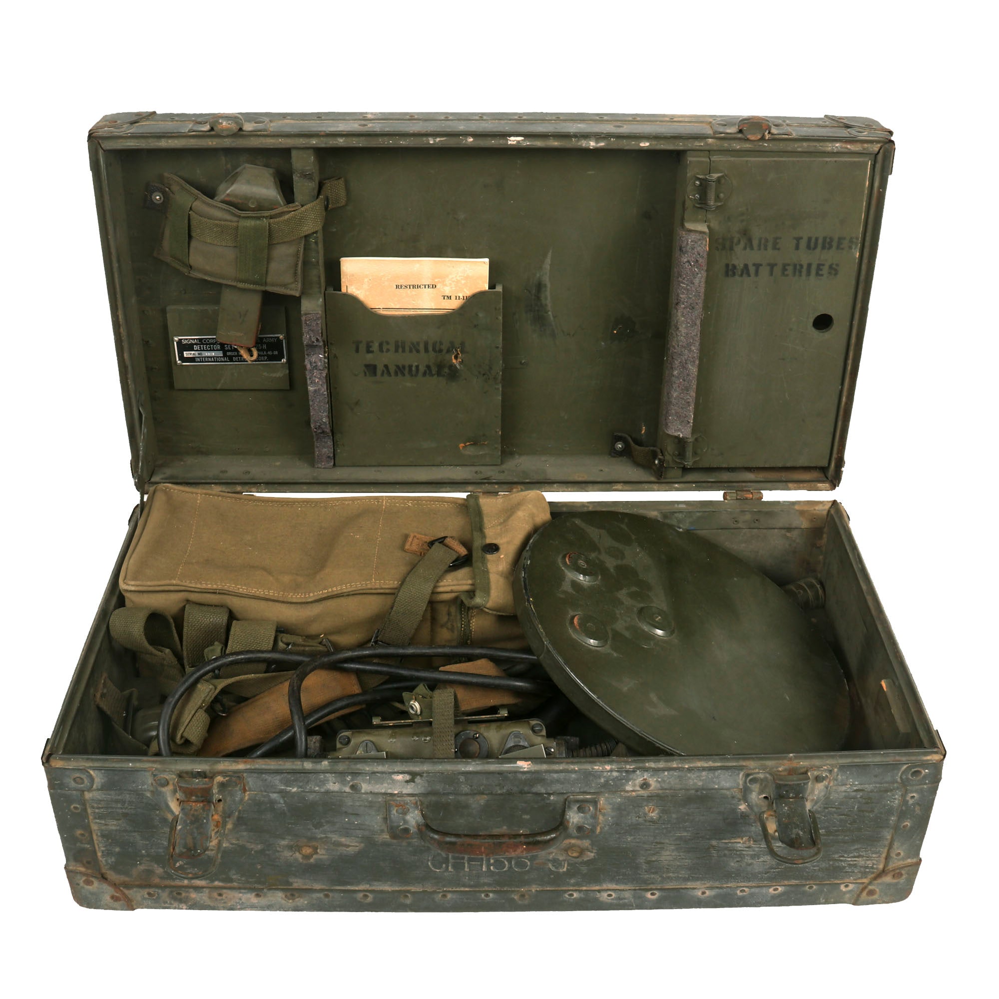 This is a great example of a scarce set of WWII Mine Detecting equipment. Comes ready for further research and display!