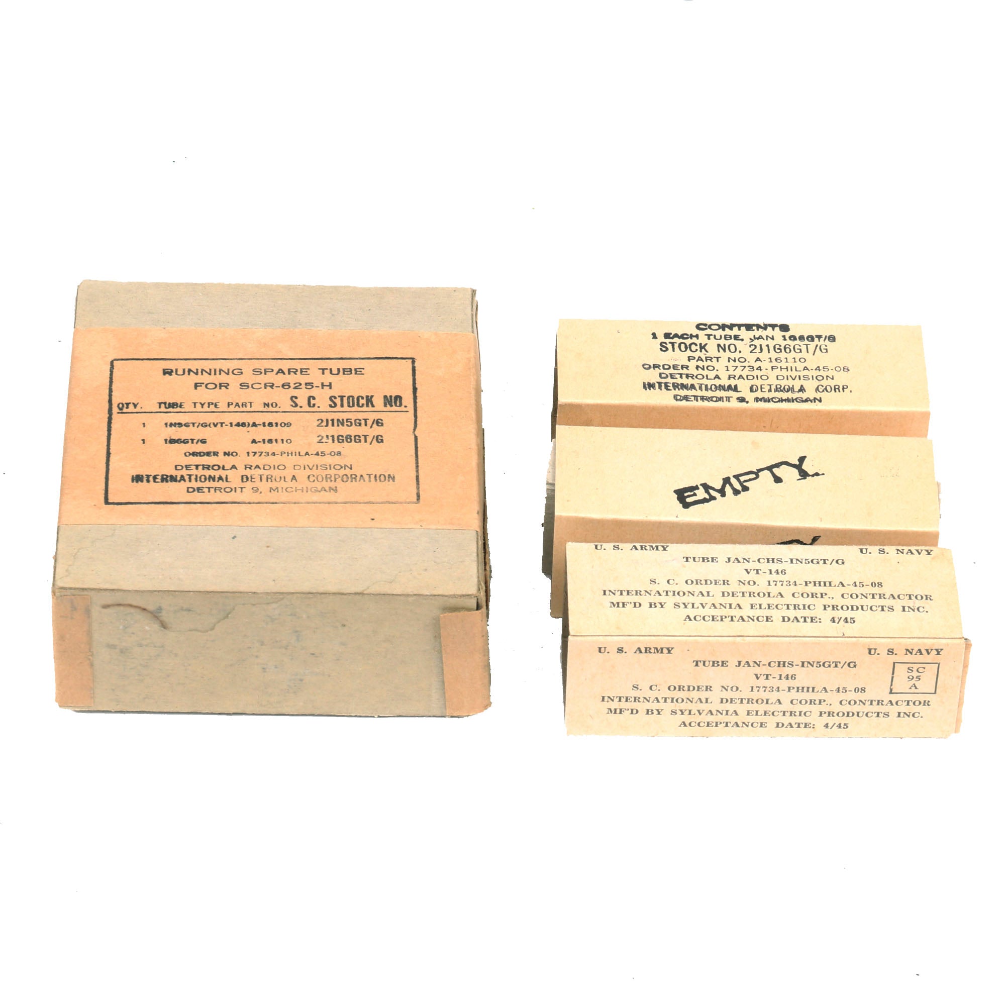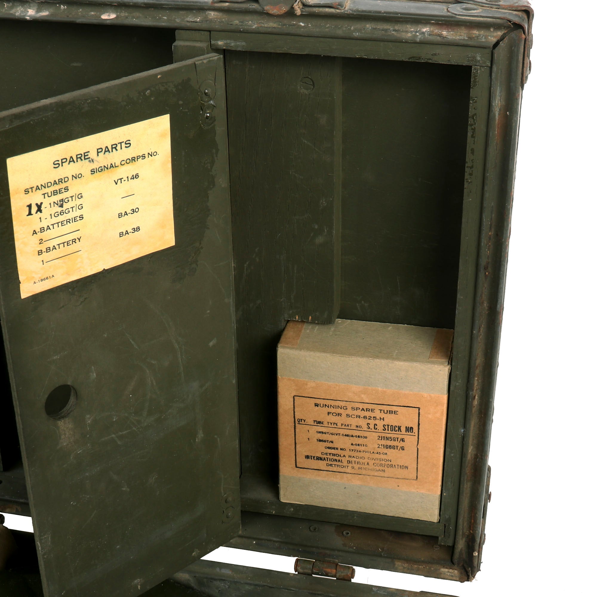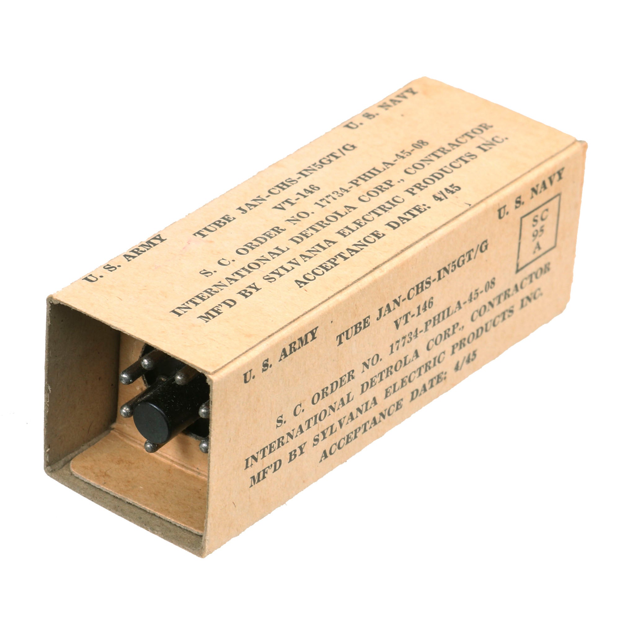 - Running spare tube for SCR-625-H in original box. Tube is dated April 1945.