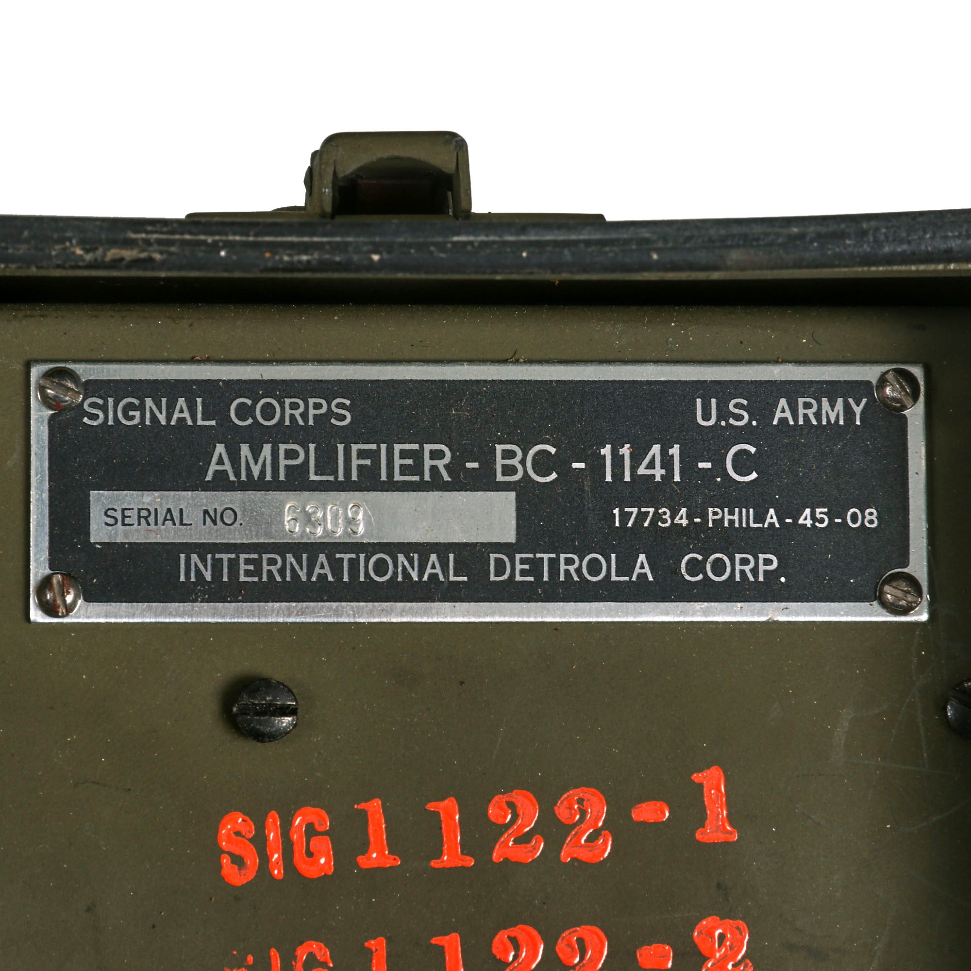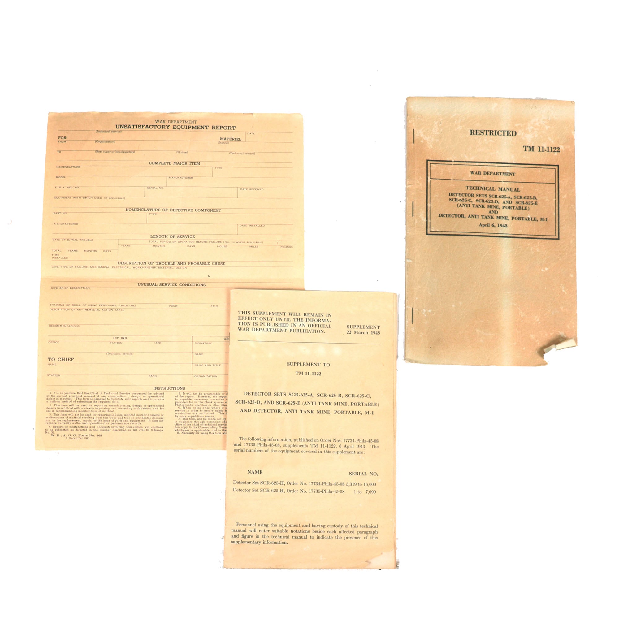 - Technical manual 11-1122 dated April 6, 1943 with supplement and Unsatisfactory Equipment report, blank.