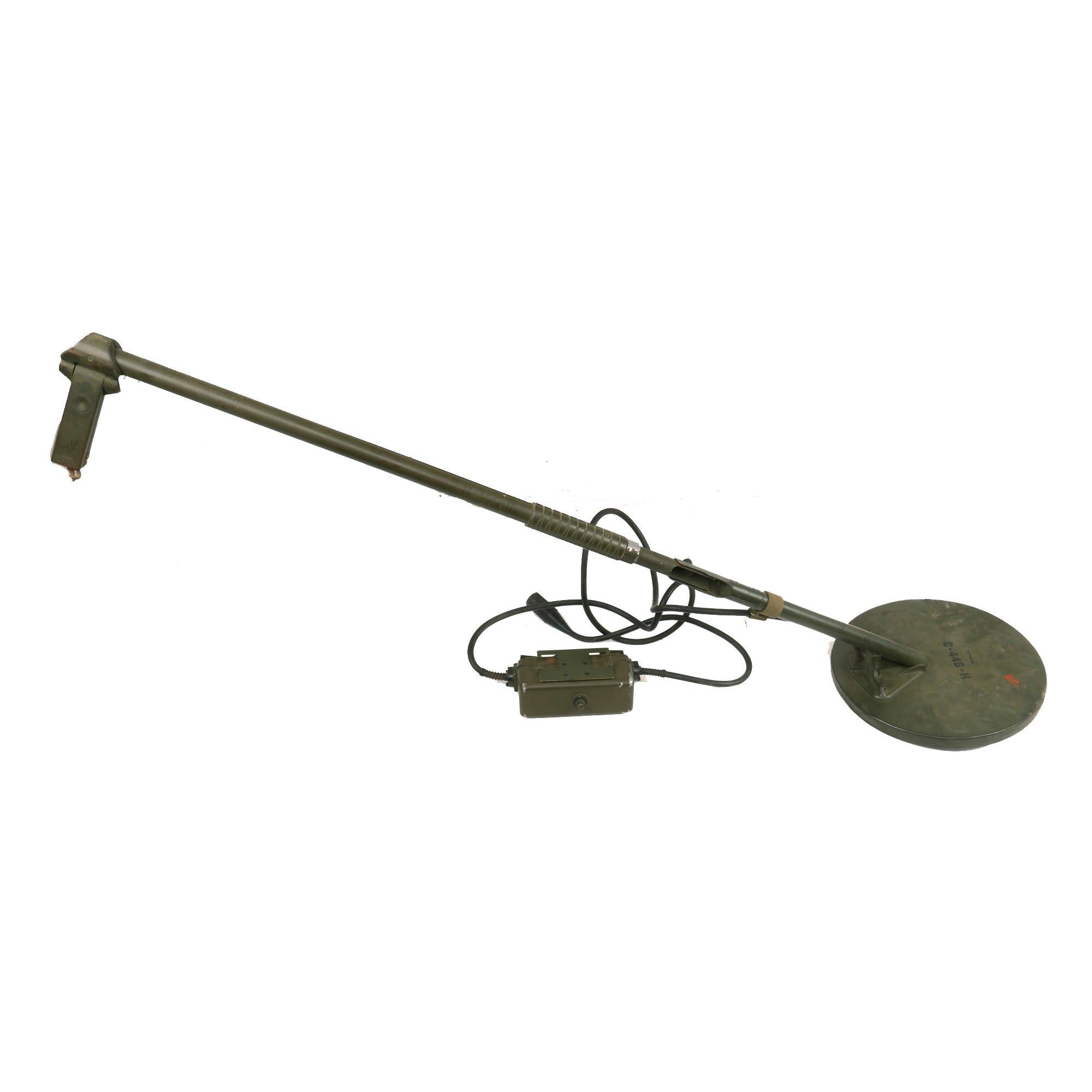 Original Item: Only One Available. The SCR-625 was a mine detector that was used by the United States during WWII. The 625 had a total length of 1.8 meters and a total weight of 3.4 kilograms. Its design consisted of a metal coil at the bottom of the searching rod which led into the operator's bag which itself contained the batteries needed for operation. The operator of the detector was also given a pair of headphones.
