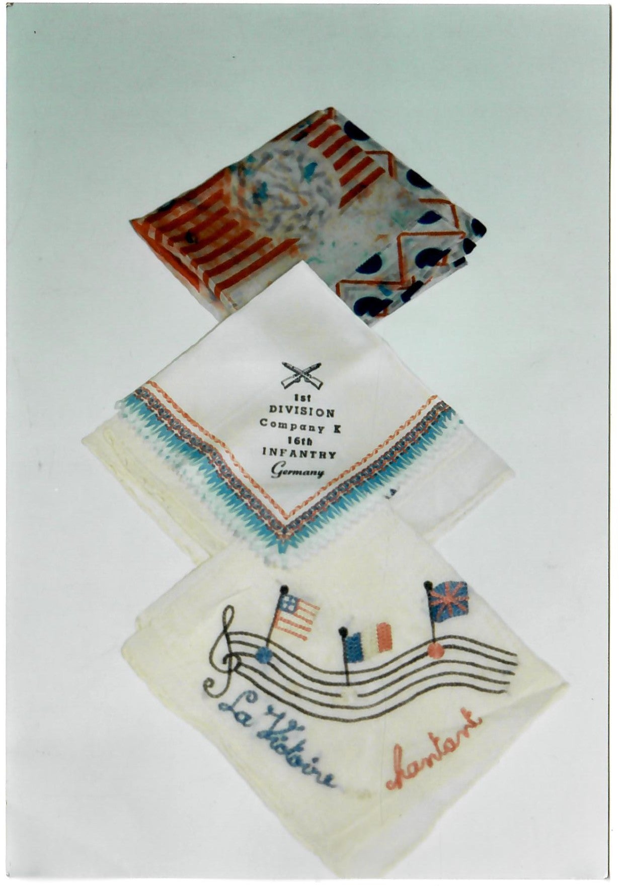 The group comes with photographs of Wrede’s purple heart medal, souvenir handkerchiefs with Company K, 16th Infantry, 1st Division on one of them. We aren’t sure where the confusion with the identification came about, but with some work there might be something to find. It’s possible that the group belonged to a Wrede, just not this one.