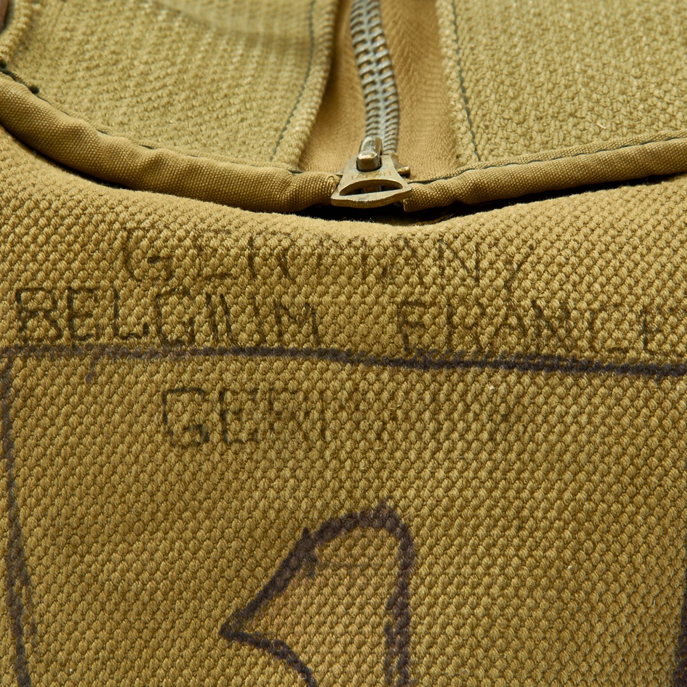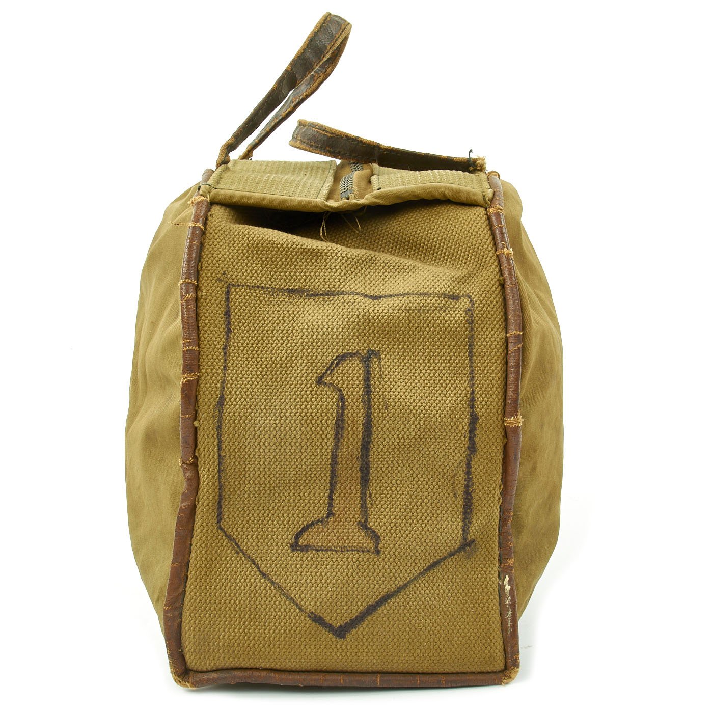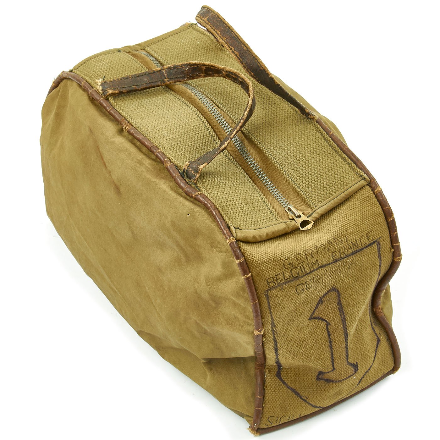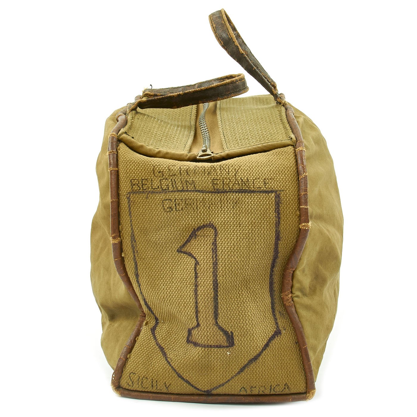- Original WWII Zip top ditty bag with hand drawn 1st Infantry Division insignia on both ends.