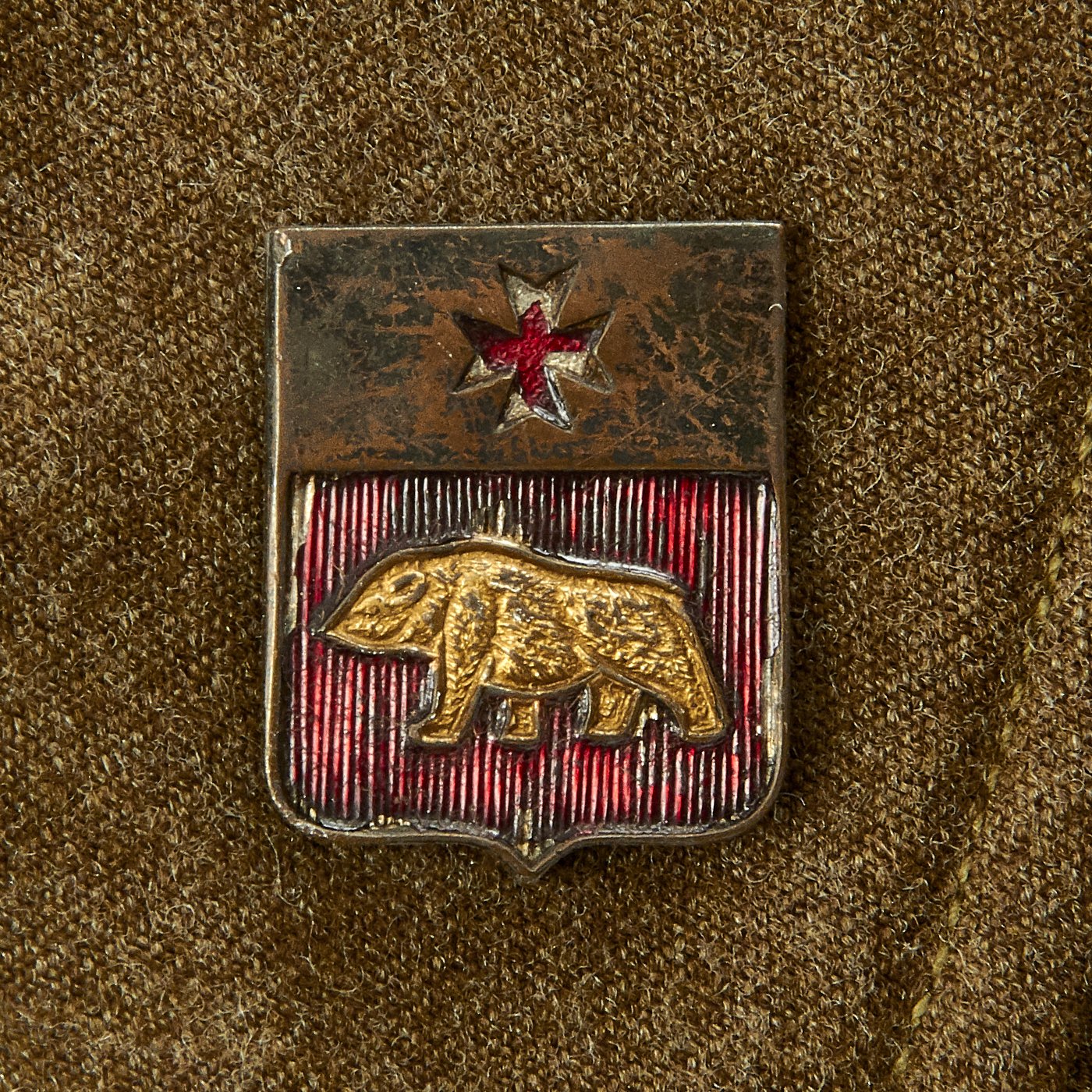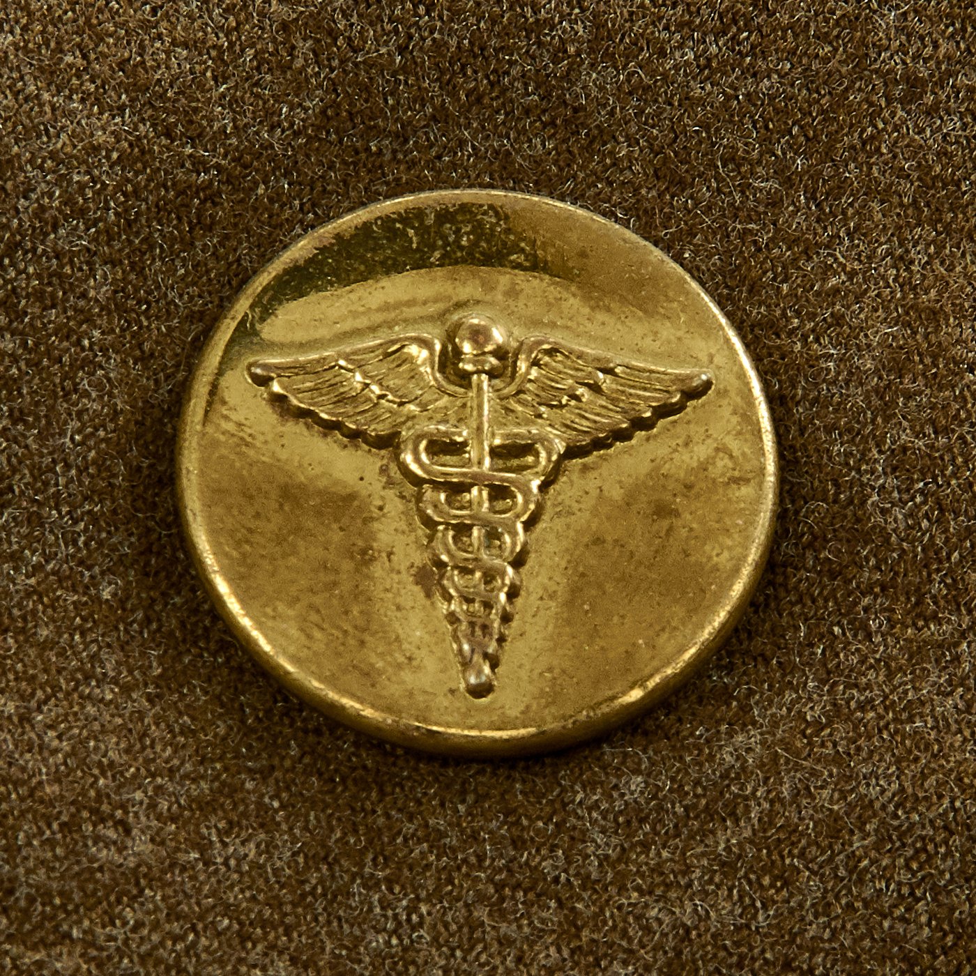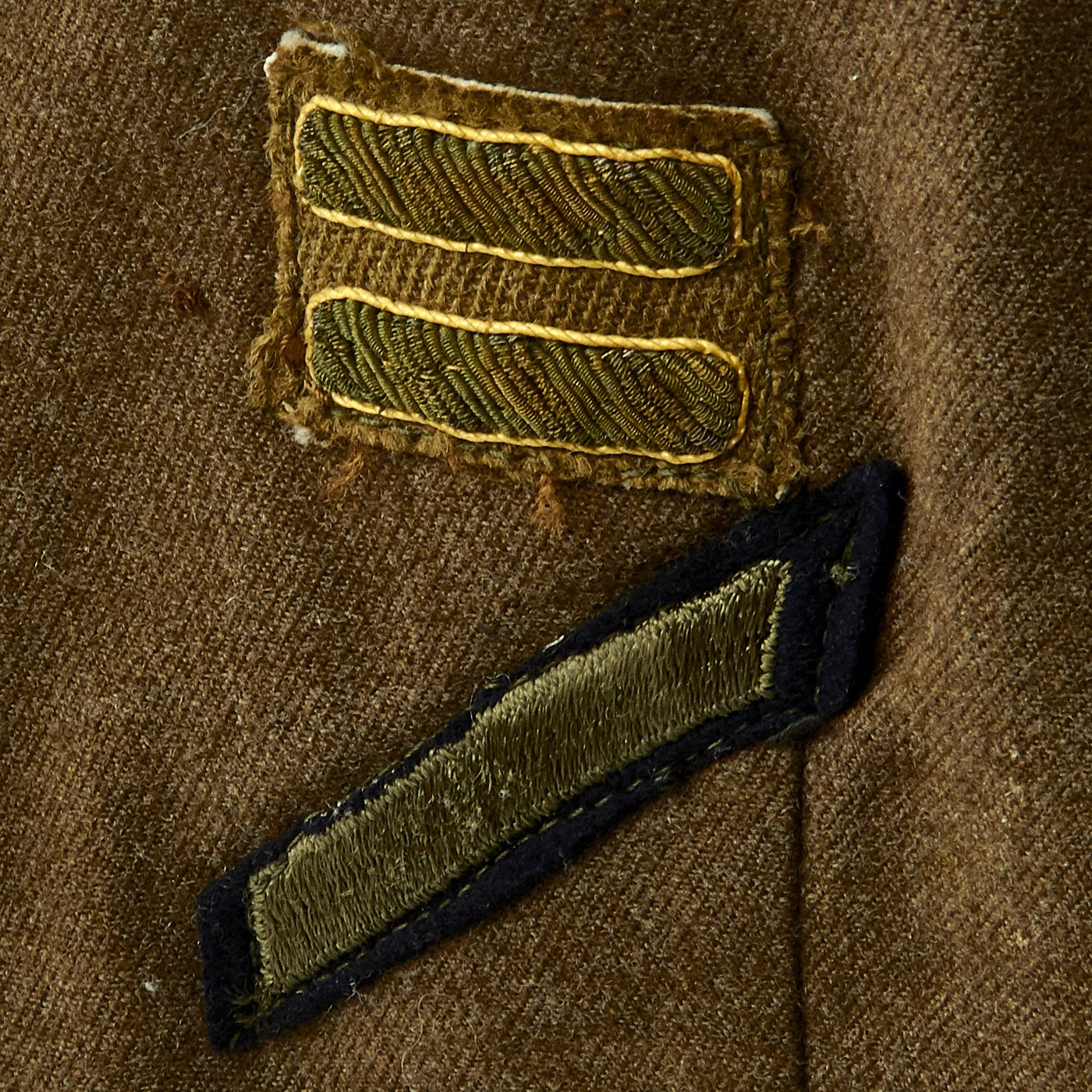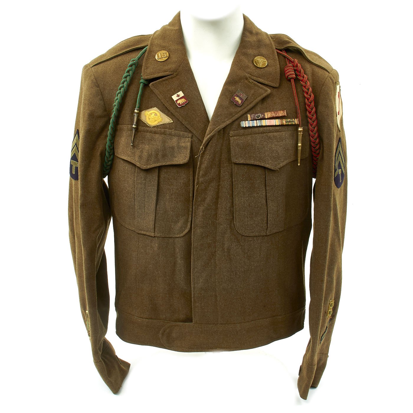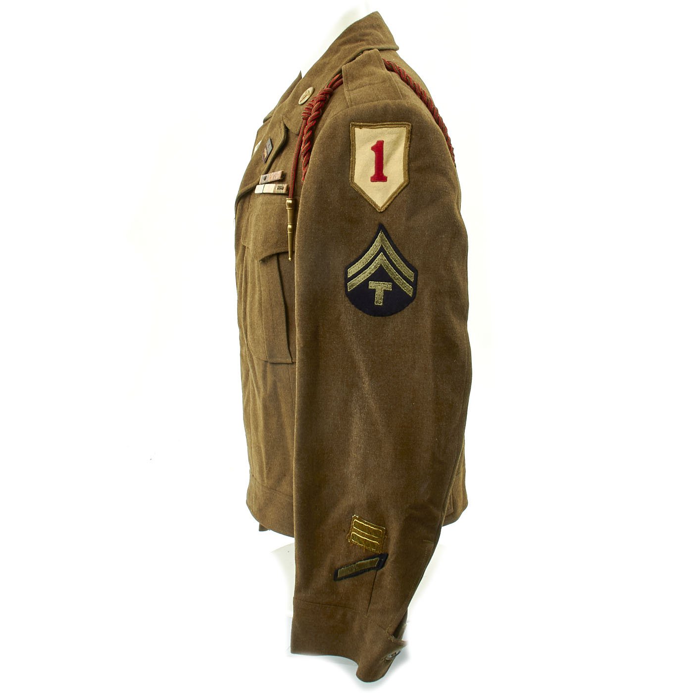 Original item: One-of-a-kind. This Ike Jacket belonged to a unknown soldier assigned to the 1st Infantry Division, 16th Infantry Regiment, 1st Medical Battalion during World War Two. According to the campaign stars on his medal ribbon bar he took part in 5 campaigns and received two Purple Hearts for being Wounded In Action.