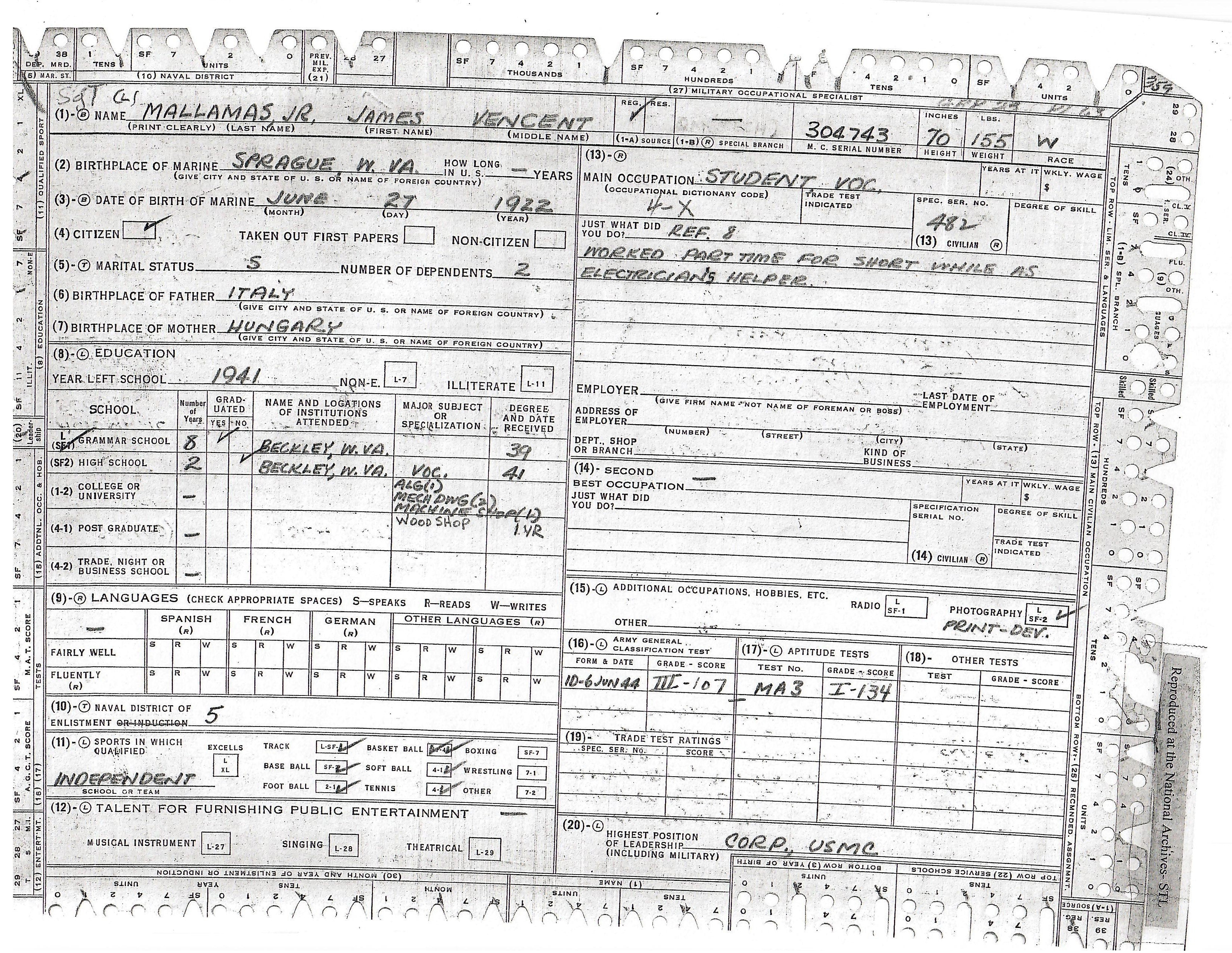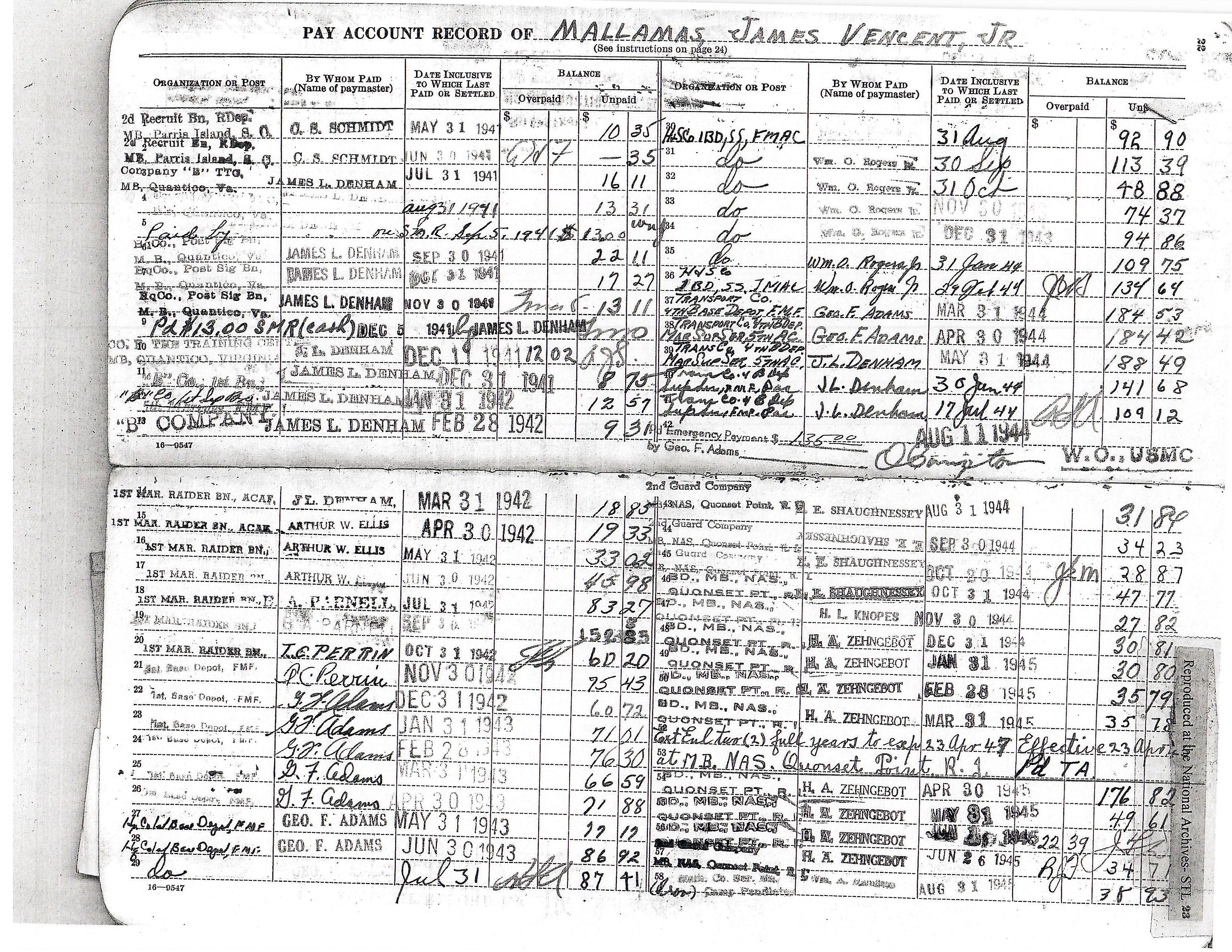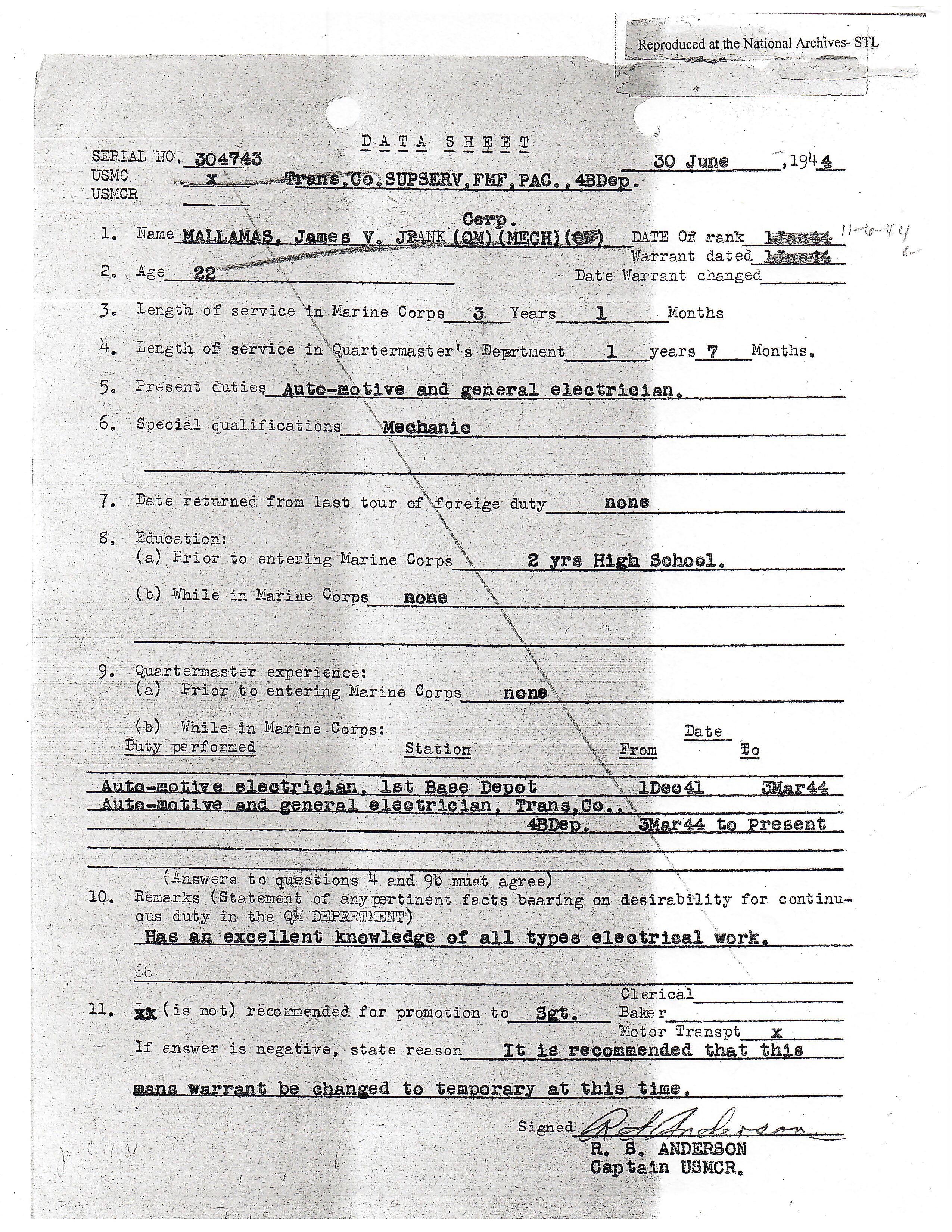 Original Item: One of a Kind: Incredible grouping of items attributed to one of Edson’s Raiders, Sergeant James V. Mallamas, who served with Company “B” 1st Marine Raider Battalion. Mallamas was a well known Raider, having served as former President of the Edson’s Raider Veteran’s Association. What makes this grouping outstanding is the overwhelming amount of research that is included. This grouping is accompanied with an impressive amount of research, consisting of a binder filled with copies and original documents from Mallamas’ service during WWII, veteran’s reunions, and so on.