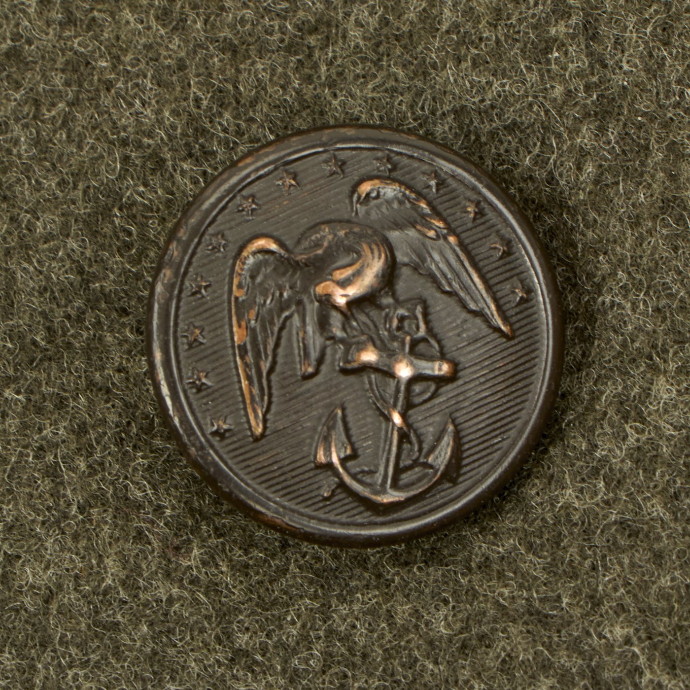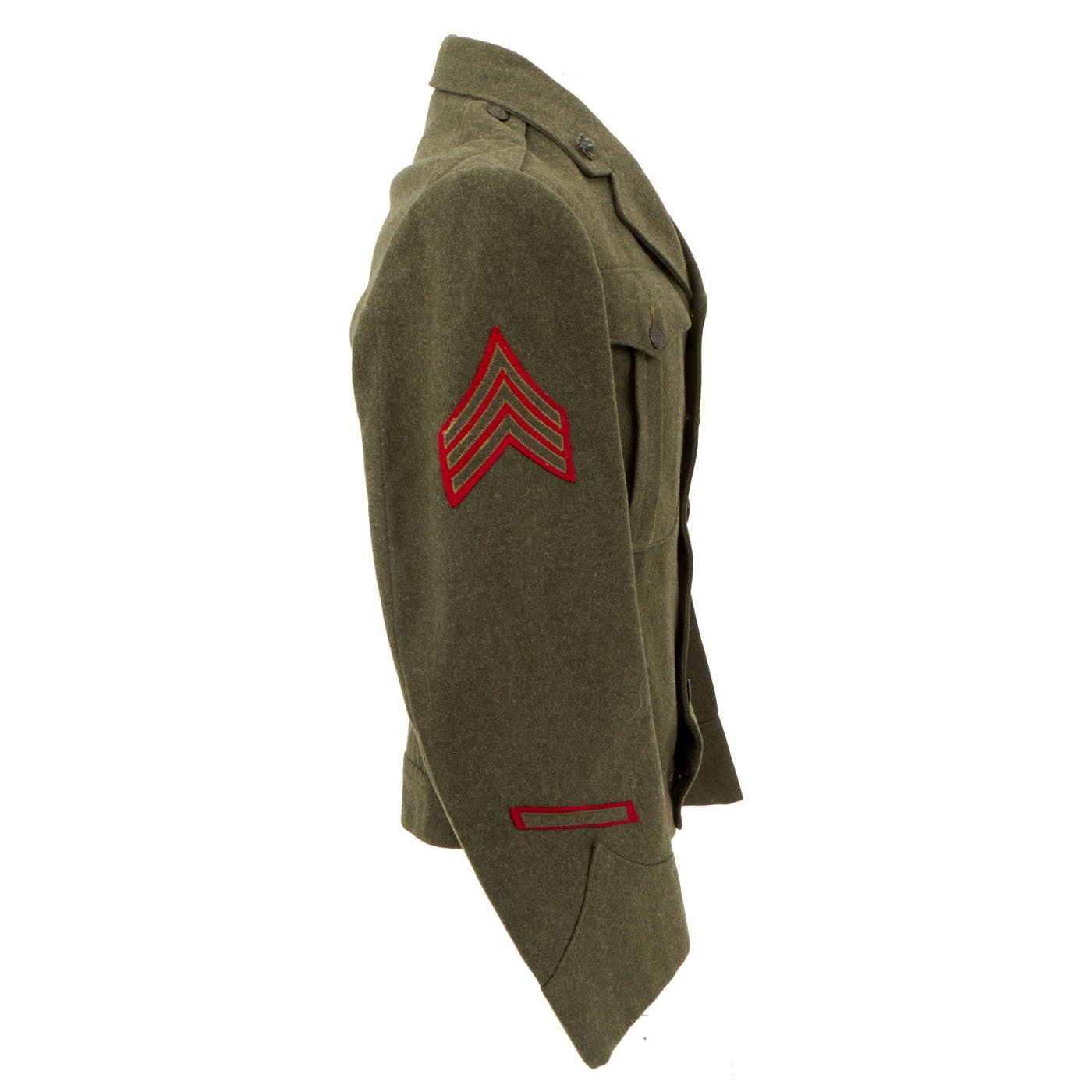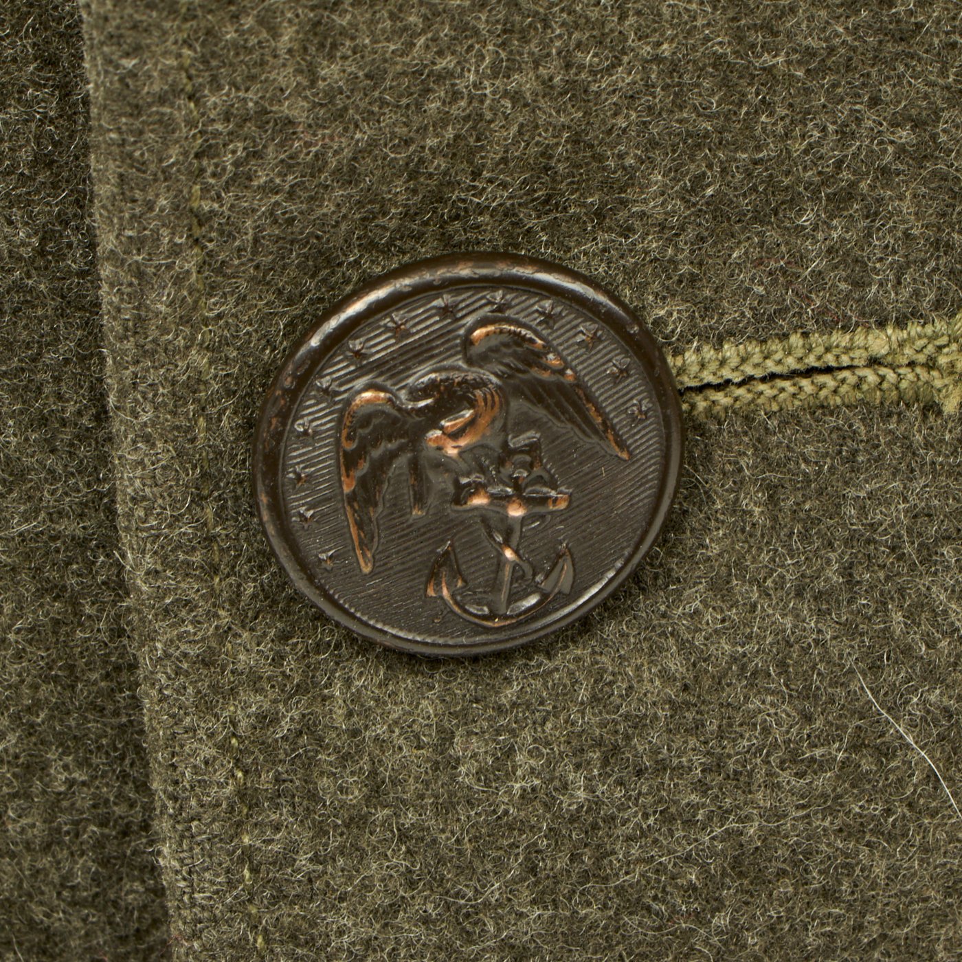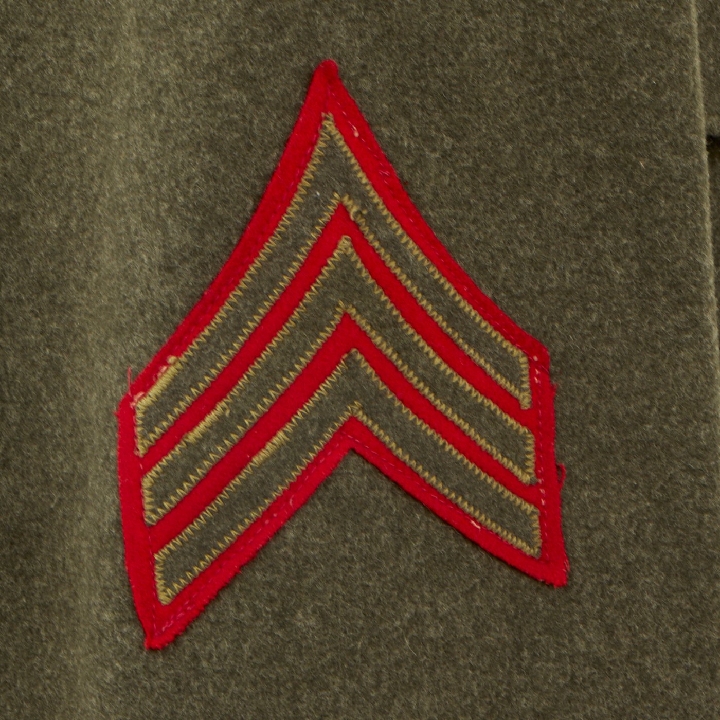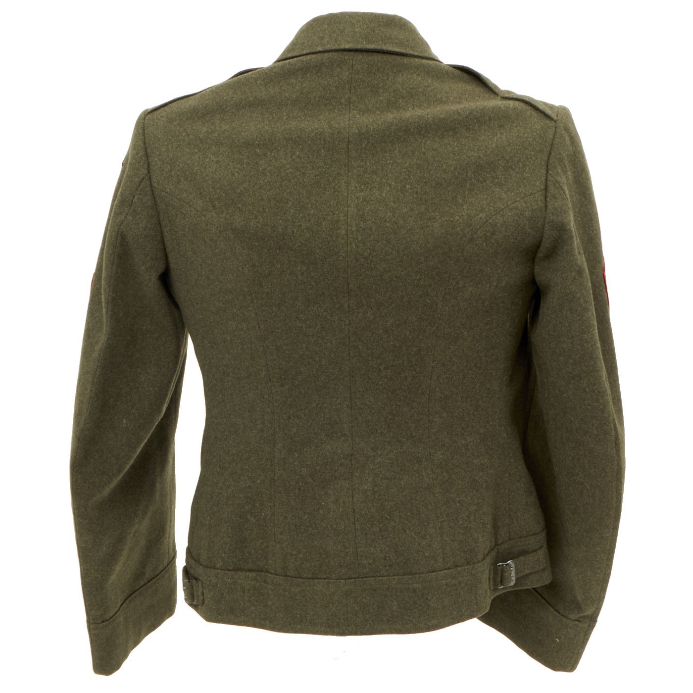 Mallamas’ Forest Green Dress Uniform Coat is contract dated April 25, 1944. It is an interesting unique tailor modified piece which appears to have been converted from a four-pocket coat into a short Vandegrift style jacket. It is named to Mallamas inside the armpit. All insignia is original to the garment.
