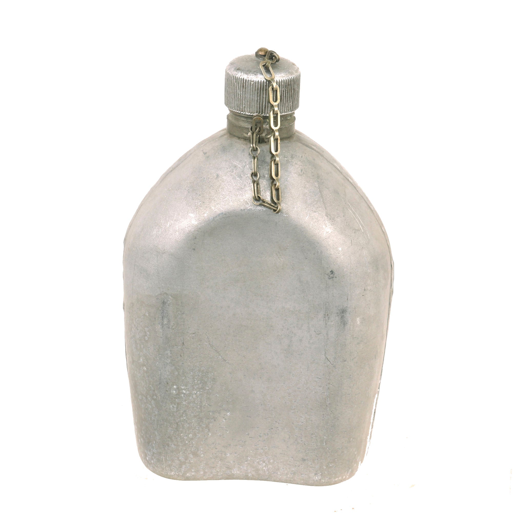The canteen is unmarked but has the early metal cap and chain which dates it to WWI. The cup is faintly marked at the bottom, dated 1918.