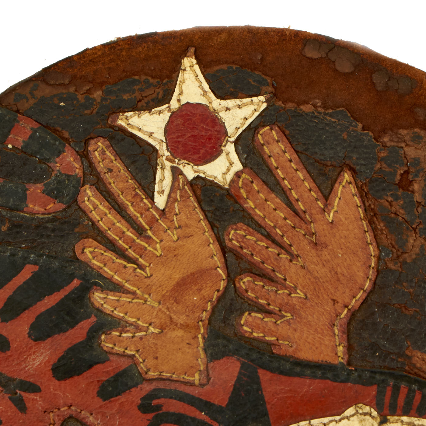 The patch is of multi-piece leather construction and appears to be Chinese made due to the style of it. The patch features an Asian style winged tiger below an Army Air Forces Star. Much of the original hand painted stripes, but the roundel itself has a lot of cracking in the finish.