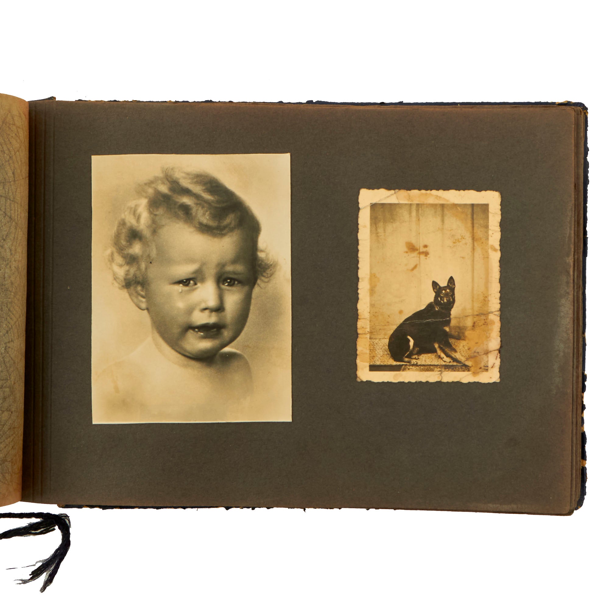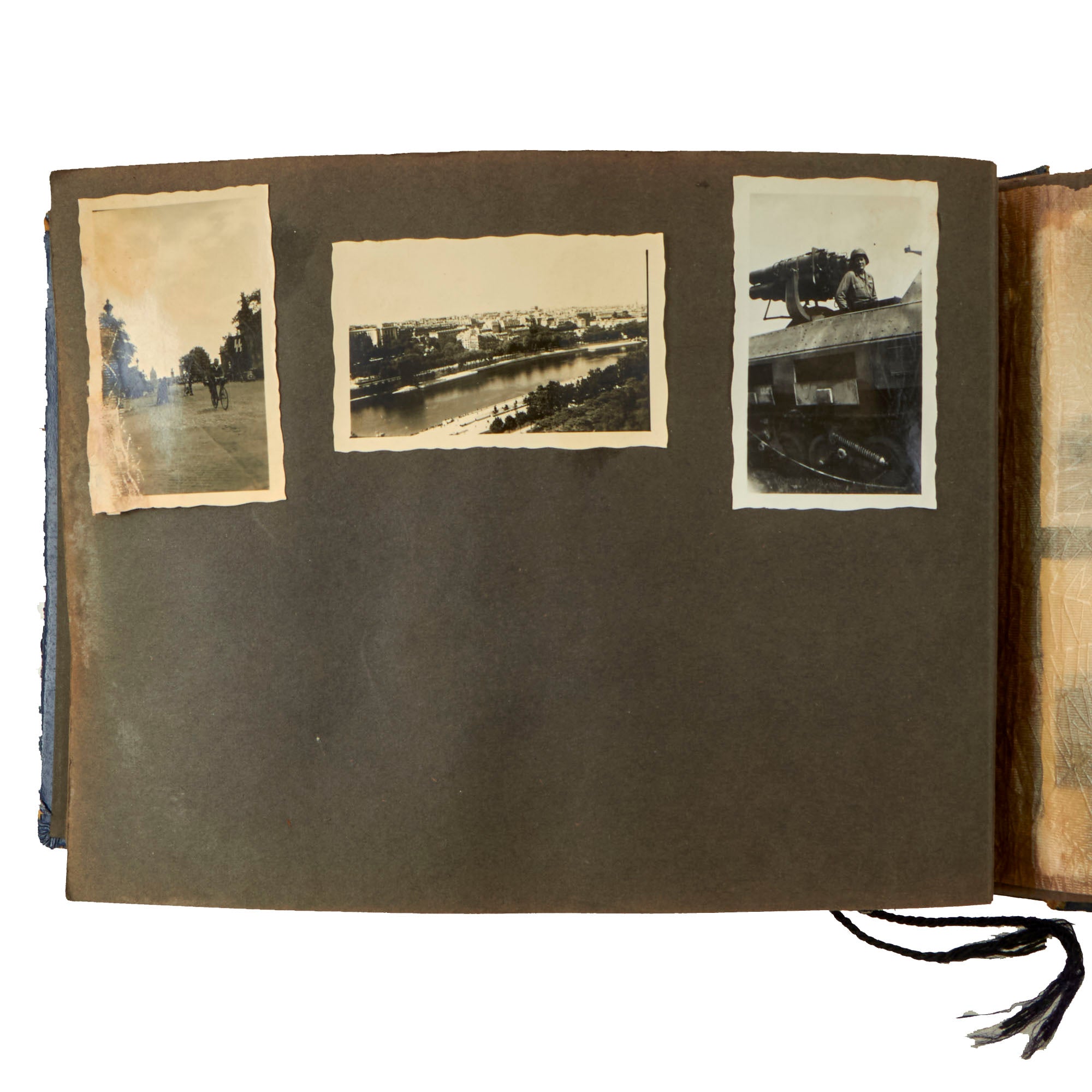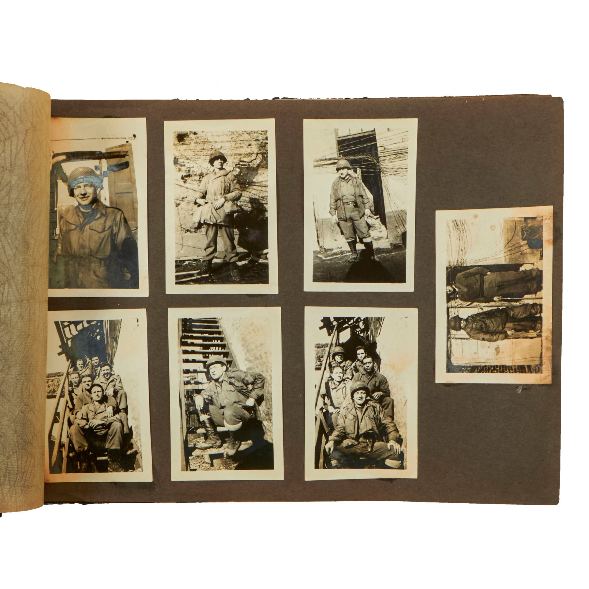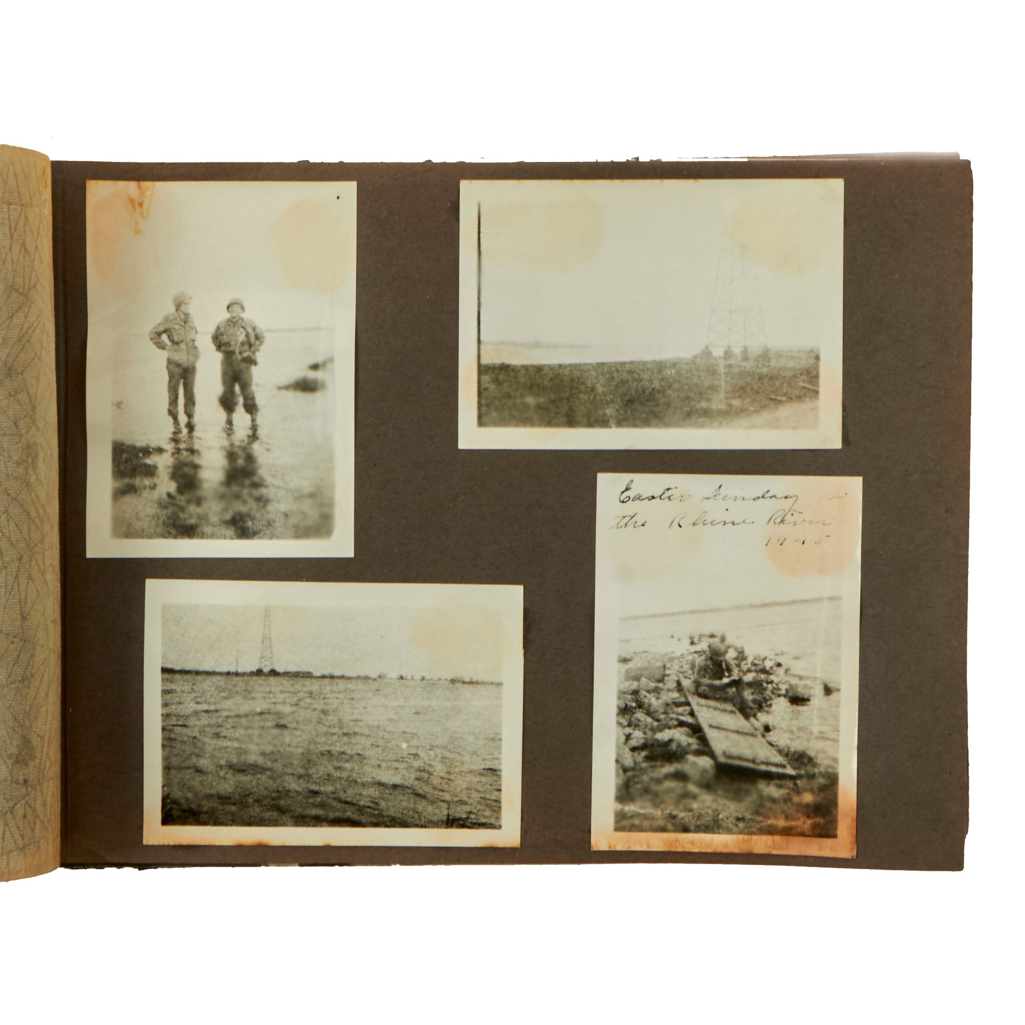 Original Item. One-of-a-Kind. This is a German Luftwaffe photo album that was captured by Technical Sergeant Milton A. Wyatt, 332nd Engineer General Service Regiment, 9th Army. While with the 9th Army, Wyatt served alongside many soldiers of the 29th Infantry Division, and a great many of his photographs are of men from the 29th, with a gorgeous patch of the 29th affixed to the interior cover. The album measures roughly 7 x 10” and the back cover is close to coming off from heavy wear.