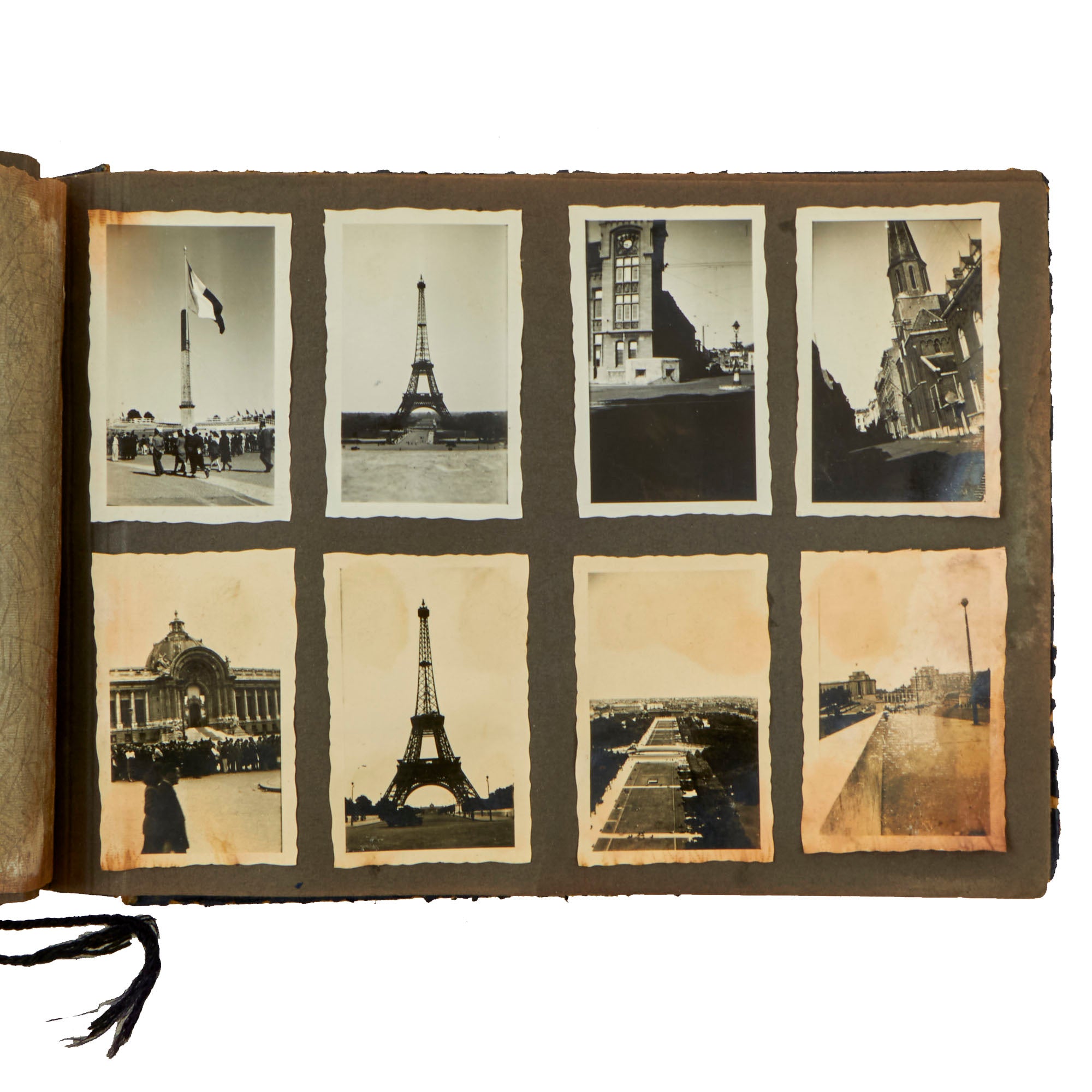 The album contains roughly 123 photographs, with some being period reproductions from newspapers, but many being original photos taken by Wyatt. There are also some newspaper clippings at the end of the scrapbook, with another on the interior cover which mentions Wyatt having been injured in France on September 4th. There are many photographs of Paris, a great deal of photos of crashed and non-crashed German and American aircraft, with one great shot of a U.S. Bomber’s nose-art, “Little Audrey”. In some shots, you can even spot the 29th Infantry Division insignia painted on some soldiers’ M1 Helmets, boy would those be worth a pretty penny today!