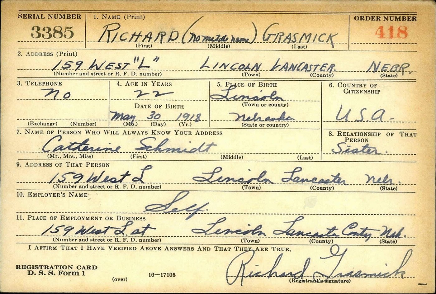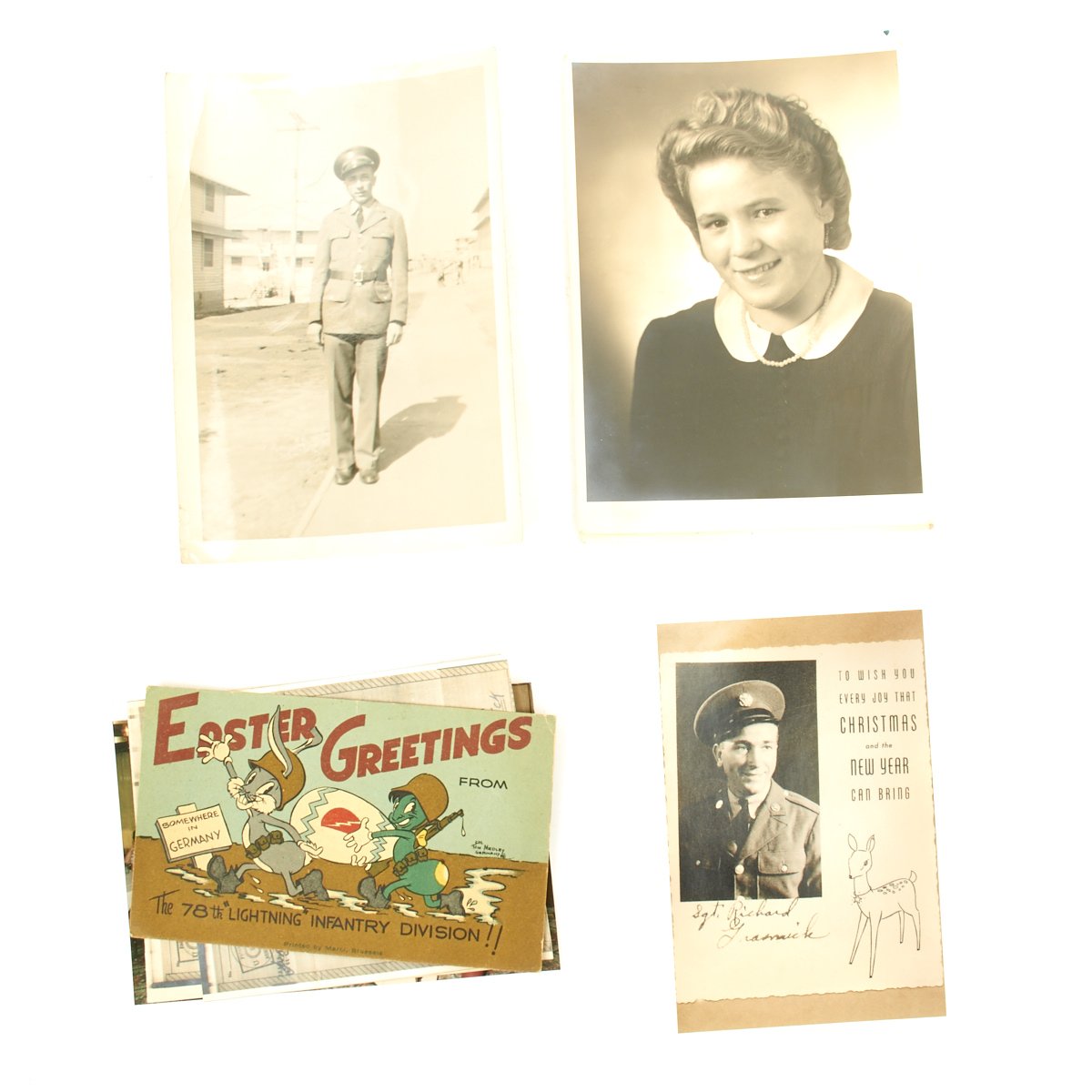 Original Items: One-of-a-kind set. Richard Grasmick was born in Lincoln, Nebraska in May 1918. He was a Technician 4th Grade in the 311th Infantry Regiment, 78th Infantry Division of the U.S. Army and fought in the following campaigns during WW2: Rhineland, Ardennes-Alsace and Central Europe. Grasmick was shipped home with the 70th Division. Richard Grasmick's obituary can be found at this link.