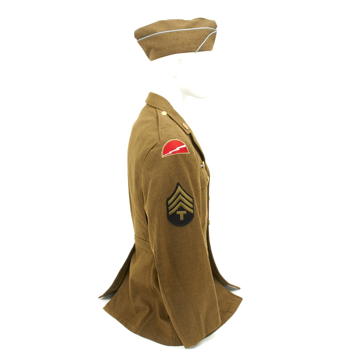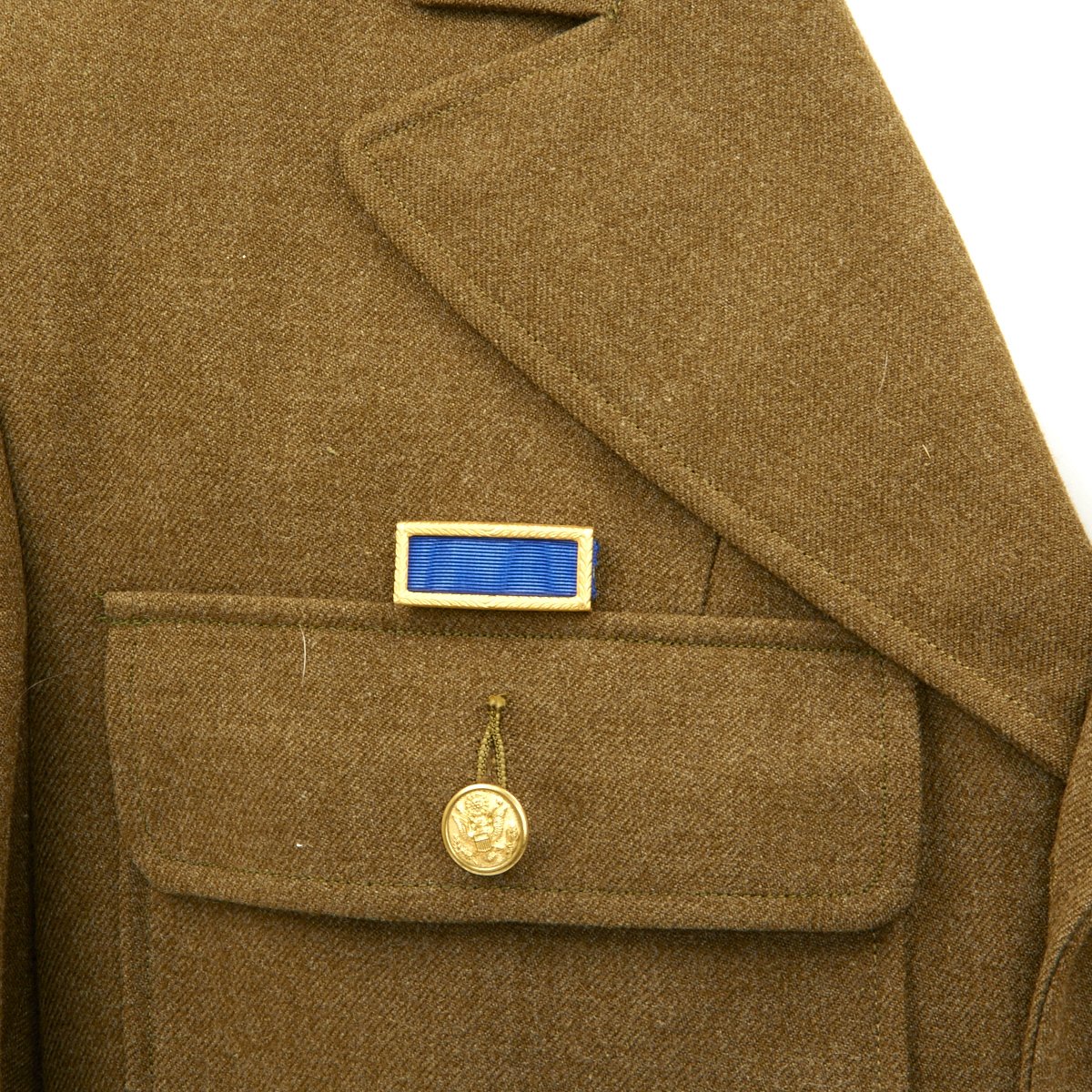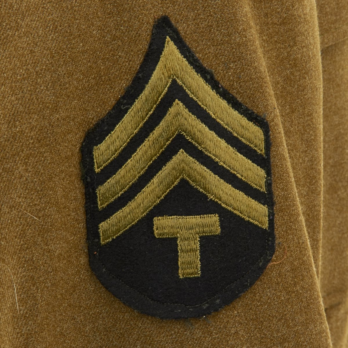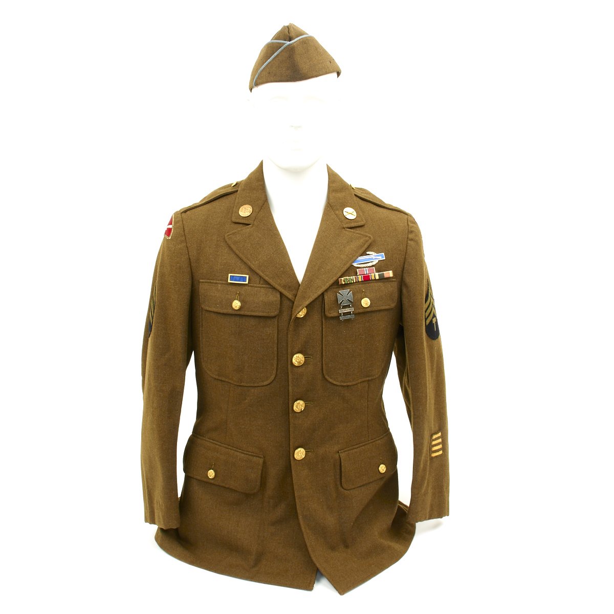 - Class A Uniform four pocket tunic with 78th Infantry Division patch on right shoulder, 70th Infantry Division patch on left shoulder, sterling silver Combat Infantryman's Badge, Medal ribbons (Bronze Star, European-African-Middle Eastern with three battle stars, WWII Victory Medal, Army of Occupation), Presidential Unit Citation, Rifle Expert, Technician 4th Grade Chevrons, infantry lapel pins and 4 overseas service bars on left sleeve indicating 24+ months of overseas service.