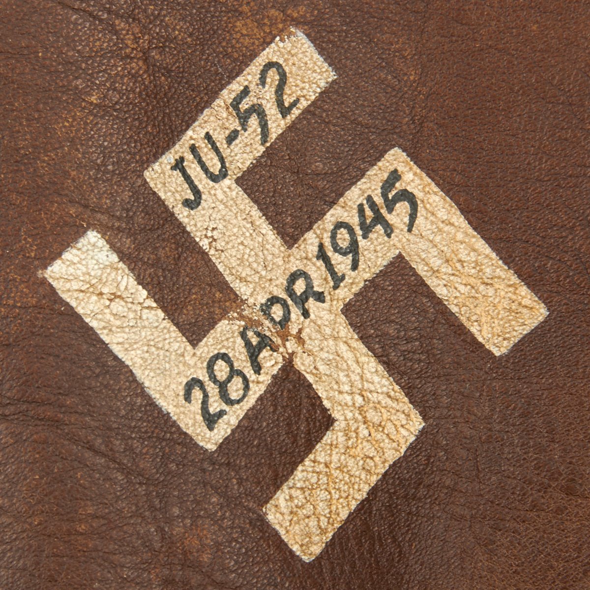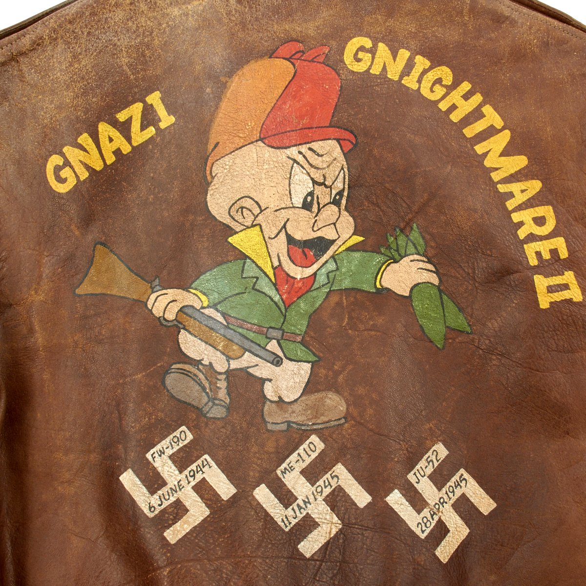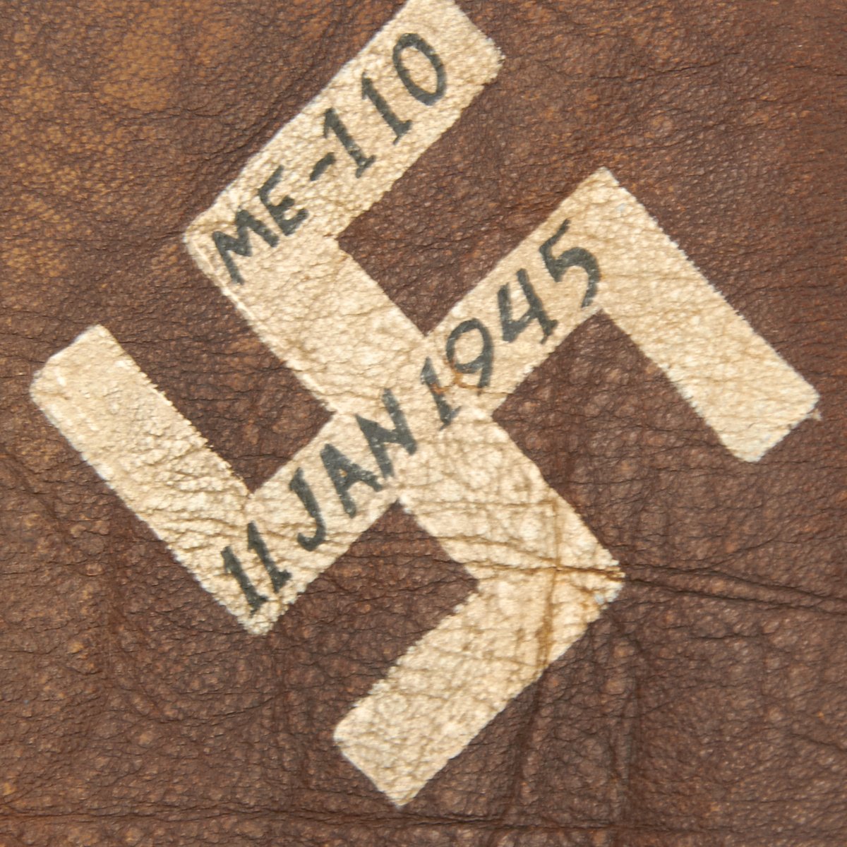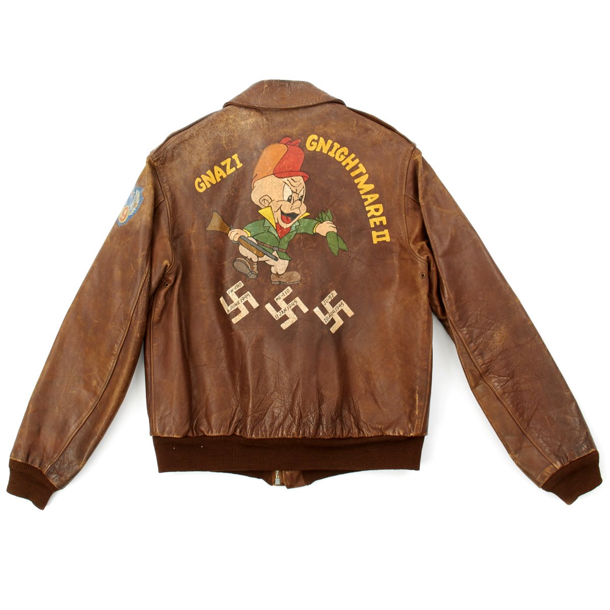 Original Item: One-of-a-kind. This is an exceptional A2 leather flight jacket issued to a Lieutenant A.S. COAKUM who was a pilot in the 9th Air Force, 50th Fighter Group, 313th Fighter Squadron. We have not been able to find research on Coakum, but this fighter group did participate in the D-Day invasion and the jacket credits the owner with a downed Focke-Wulf Fw 190 on June 6th, 1944.