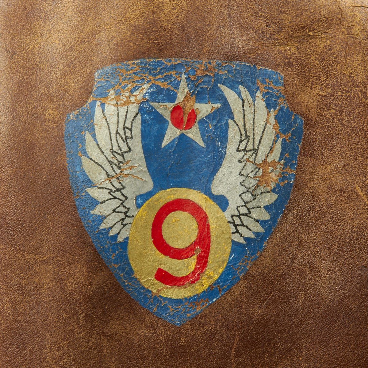 The left shoulder bears a hand painted 9th Air Force insignia. The reverse of the jacket features incredible hand painted art work that reads:
