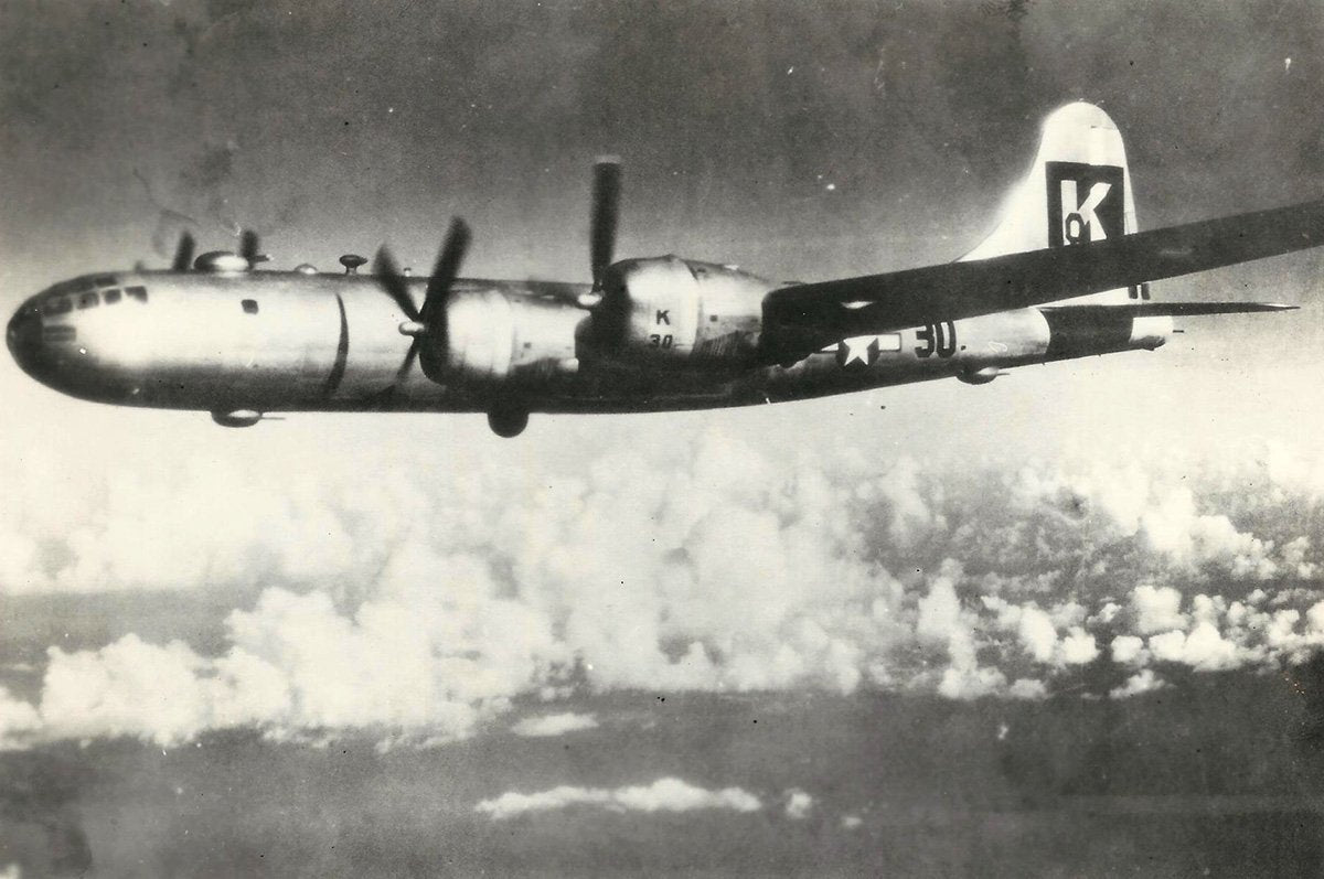 When training was completed moved to Guam in the Mariana Islands of the Central Pacific Area in late March 1945 The 315th was the fifth and last B-29 Wing assigned to XXI Bomber Command. The Groups and Squadrons of the 315th Bomb Wing for the most part, flew the B-29B aircraft. The limited-production B-29B was designed to was to save weight by removing all of the guns and sighting equipment used on other B-29s, except the tail gun. The weight savings allowed the B-29B to fly a little higher and a little further. The B-29B aircraft also had two new radar units installed. One was the AN/APQ-7 Eagle Radar for bombing and navigation and the other was the AN/APG-15 used for aiming the tail gun. These two radar units gave the B-29B a distinctive shape as the APQ-7 antenna appeared as a small wing under the fuselage, between the two bomb bay doors and the APG-15 added a ball shaped antenna to the tail of the aircraft below the tail guns.