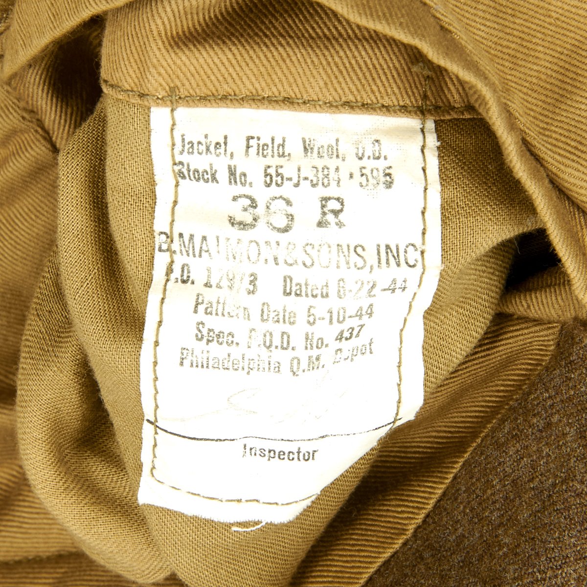 This is his Ike jacket which is named to him along with his ASN and laundry number.