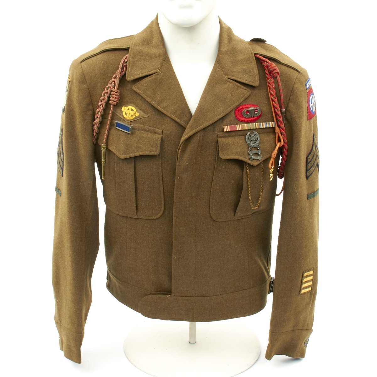 Excellent condition Ike jacket with wonderful condition patches, ribbons and material. Features as follows: