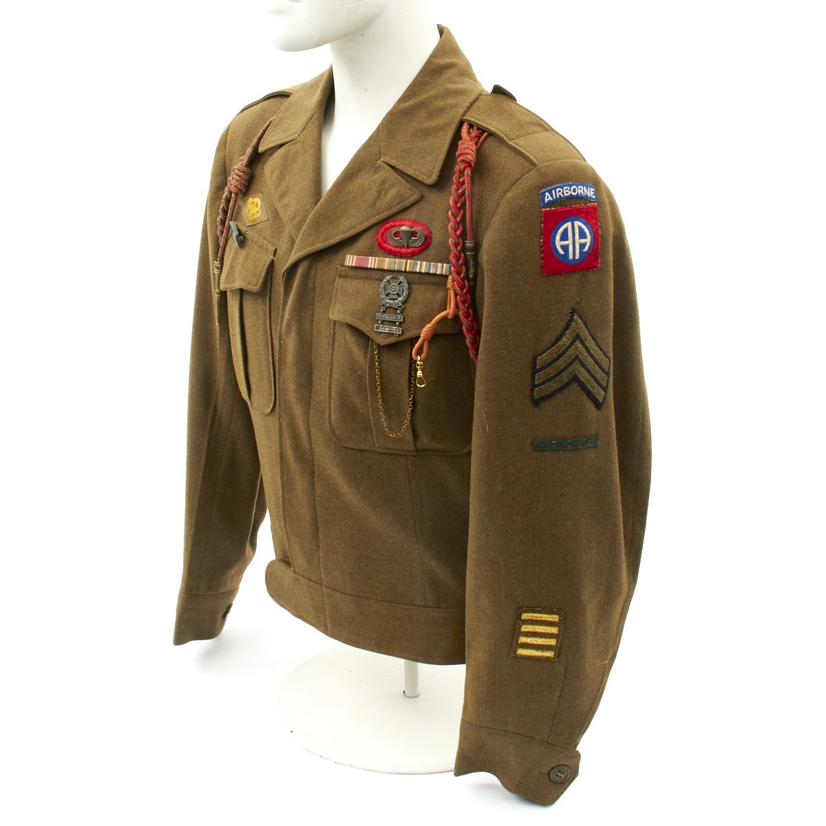 - 82nd Airborne patch on left shoulder.