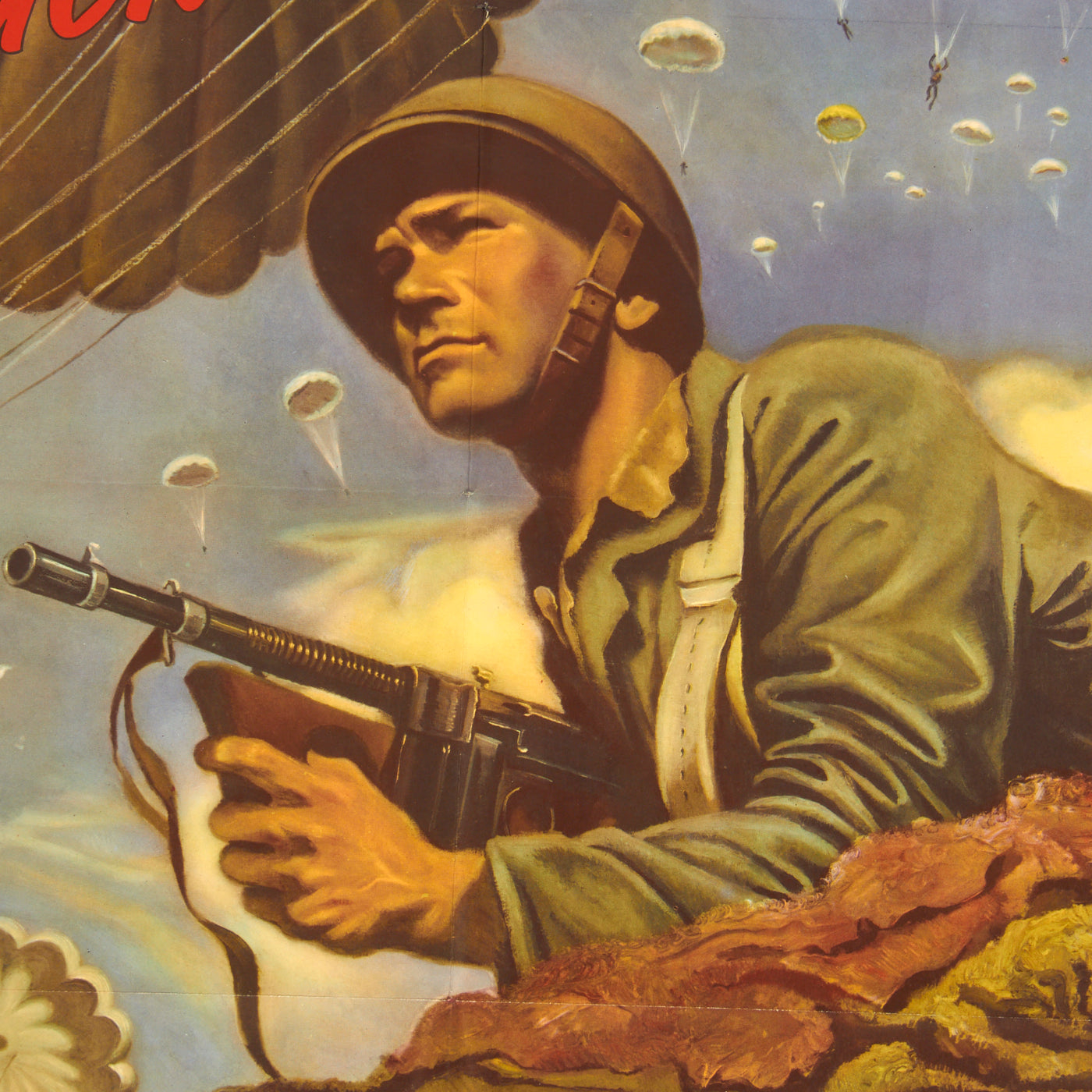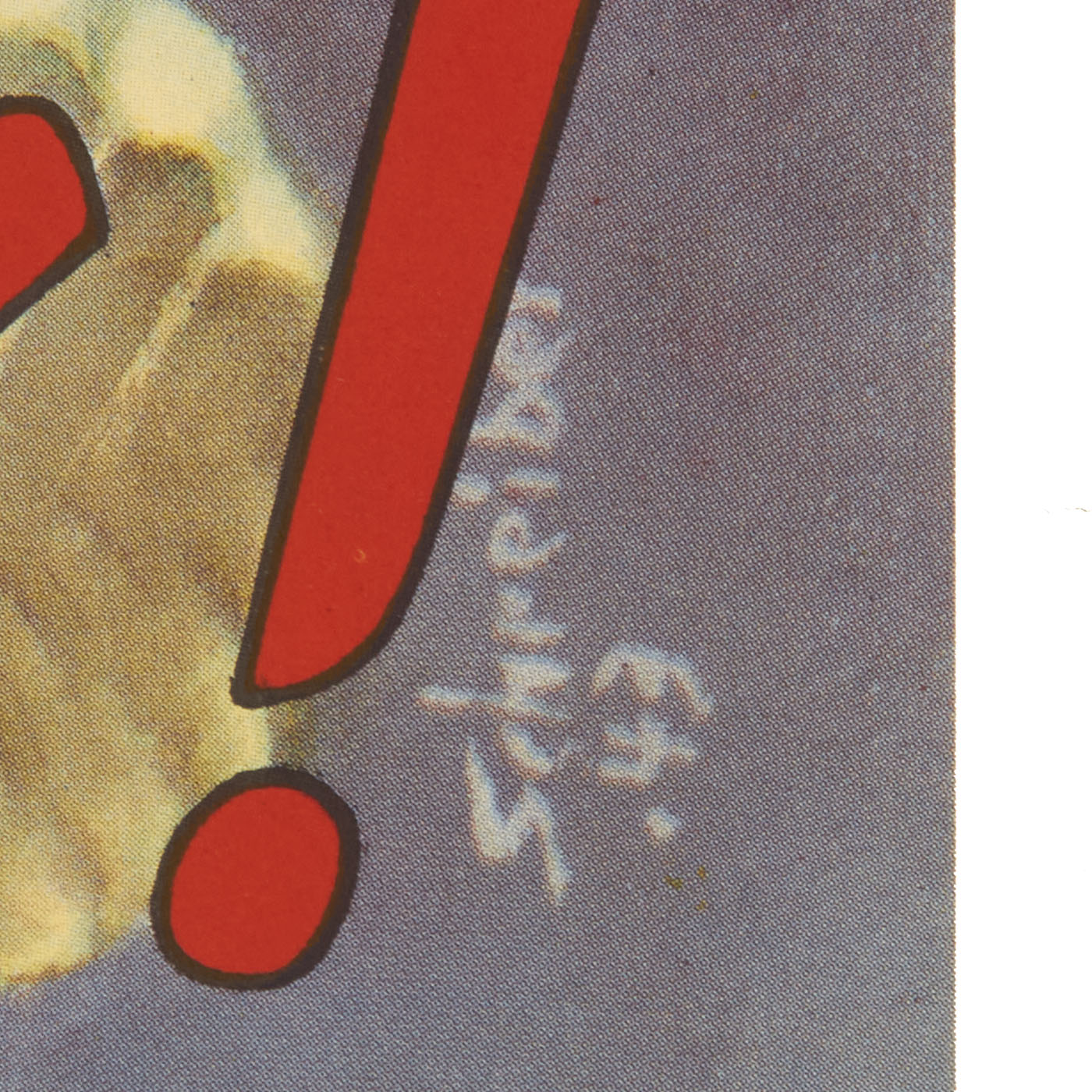 This 20" x 28" World War Two War Bonds poster was designed in the early 1940s by the Artist George Schreiber (1904-1977) and printed by the U. S. Government Printing Office with designation number 1943-O-537864. It reads: