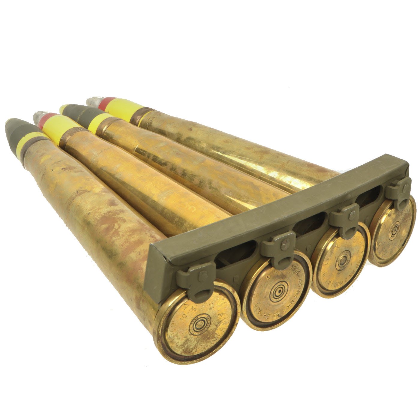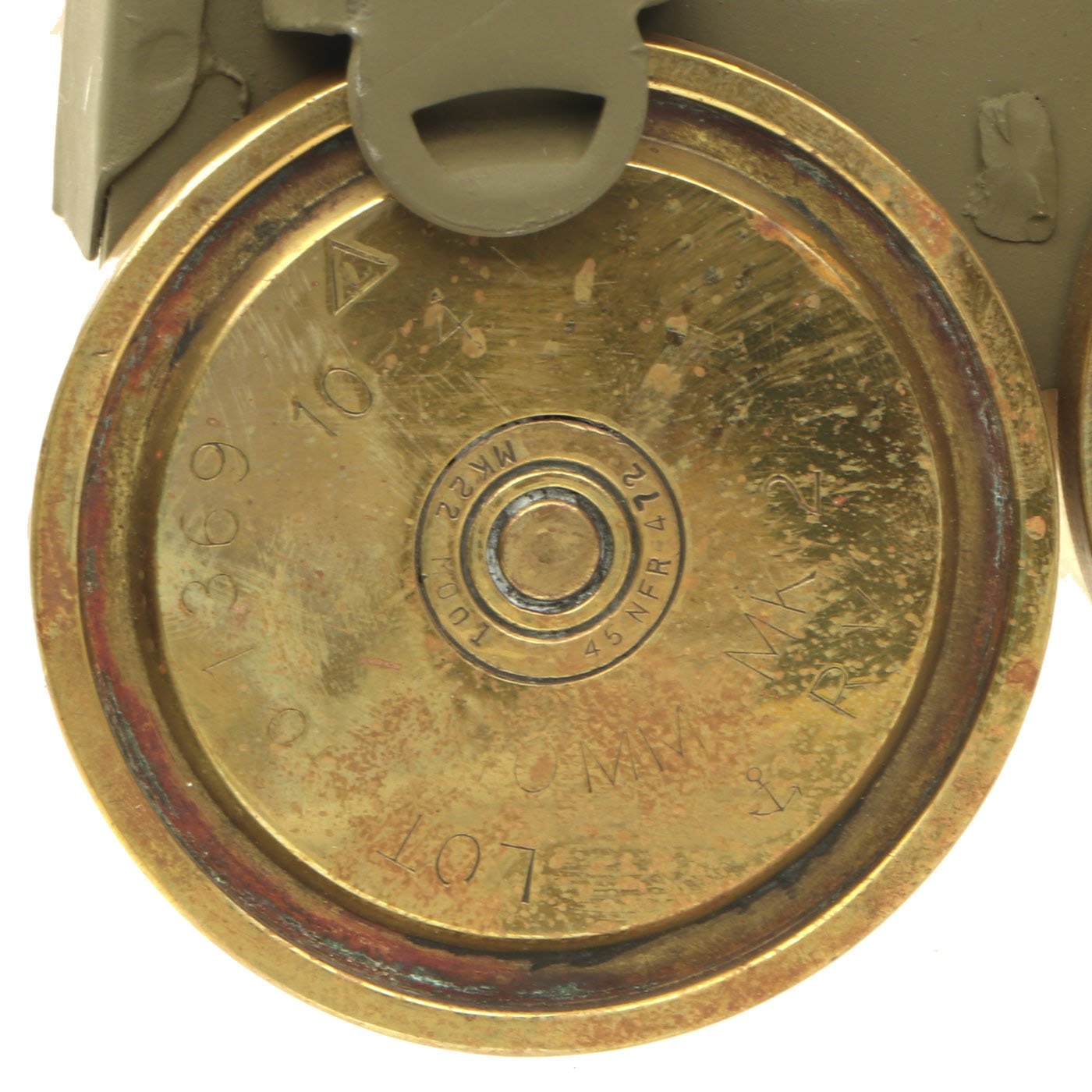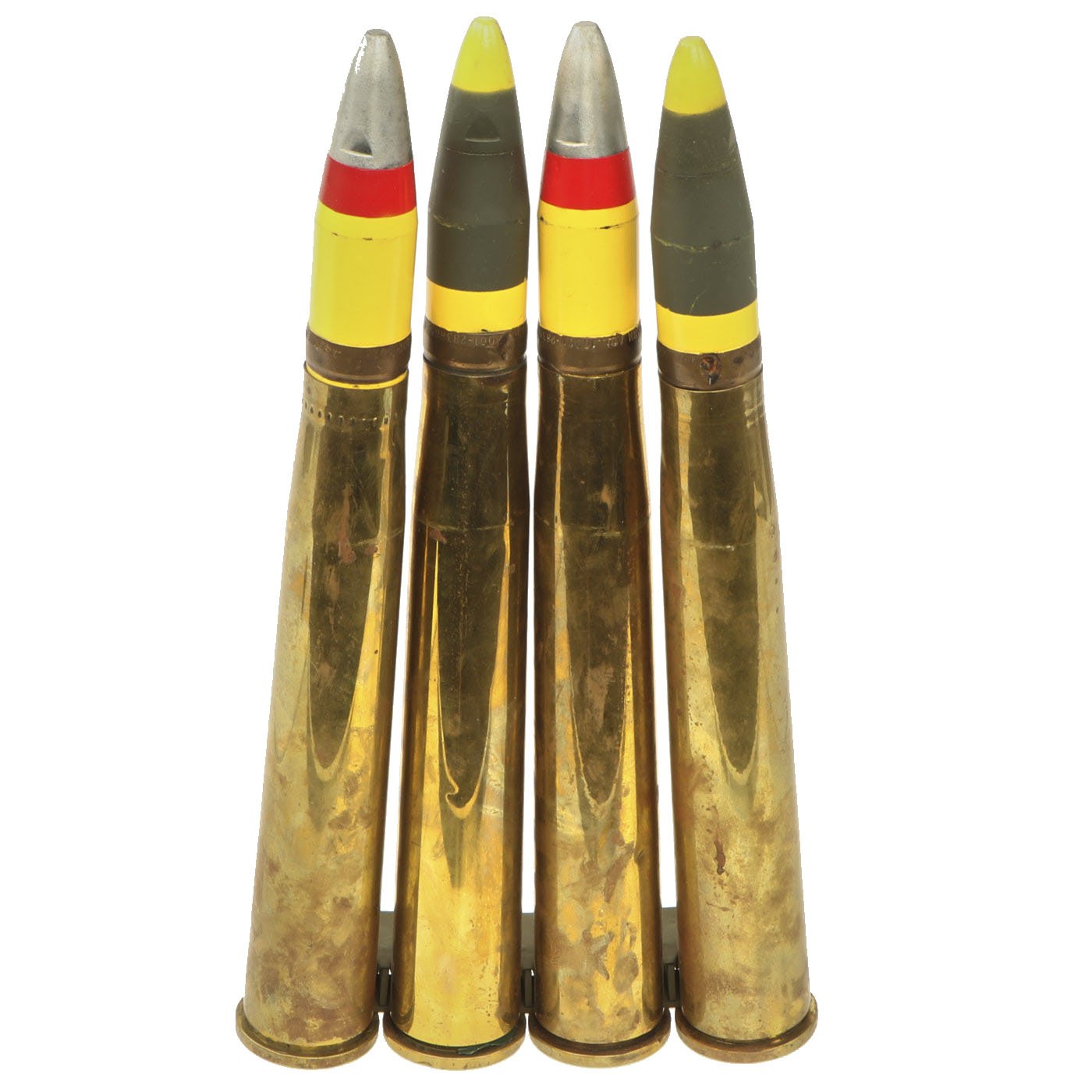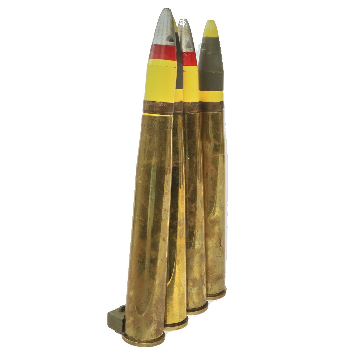 These are genuine World War Two dated 40mm Bofors gun rounds in a clip. Each round bears a 1944 or 1945 date and are offered in very good condition.
