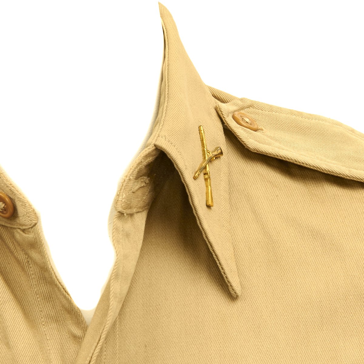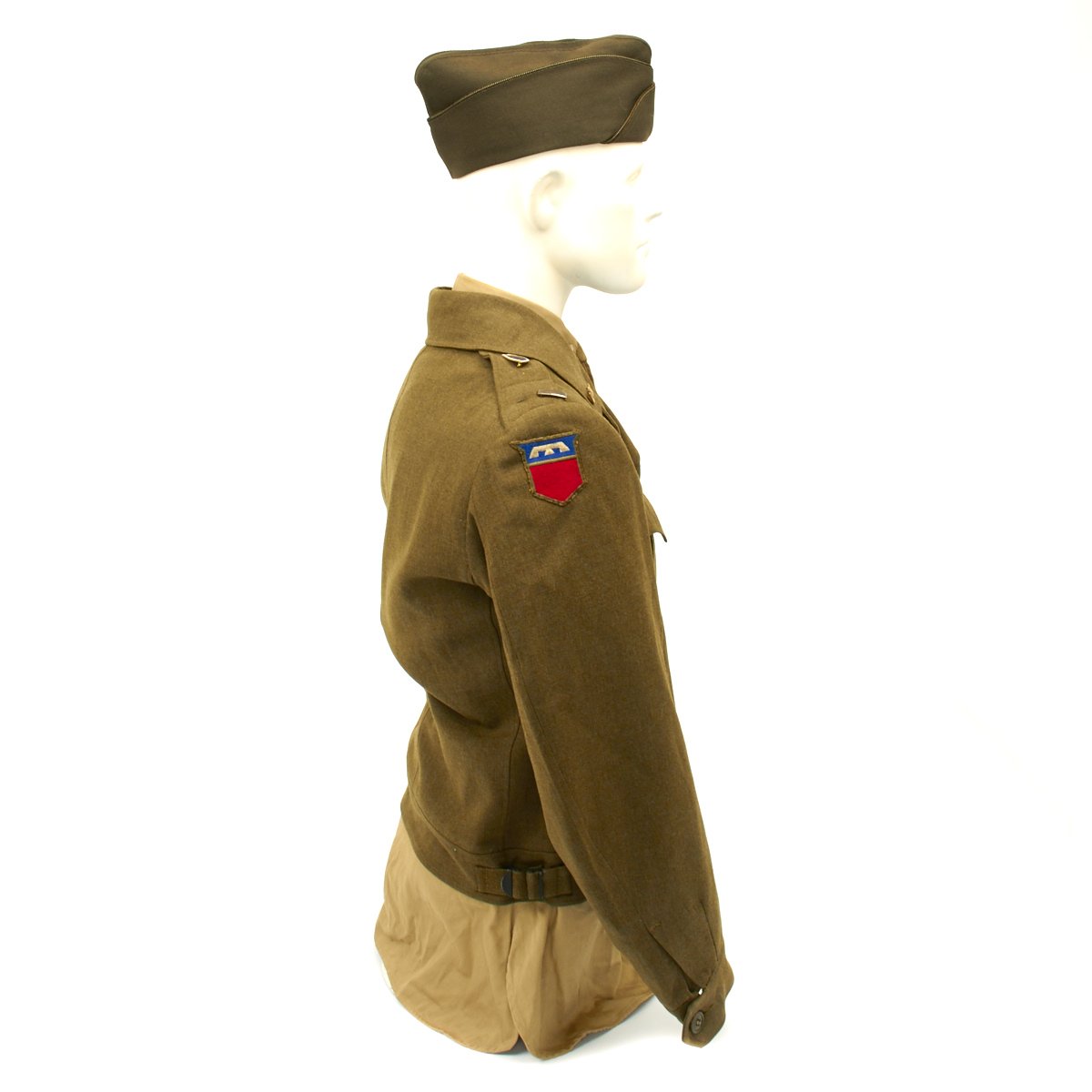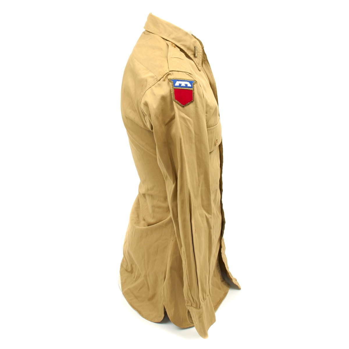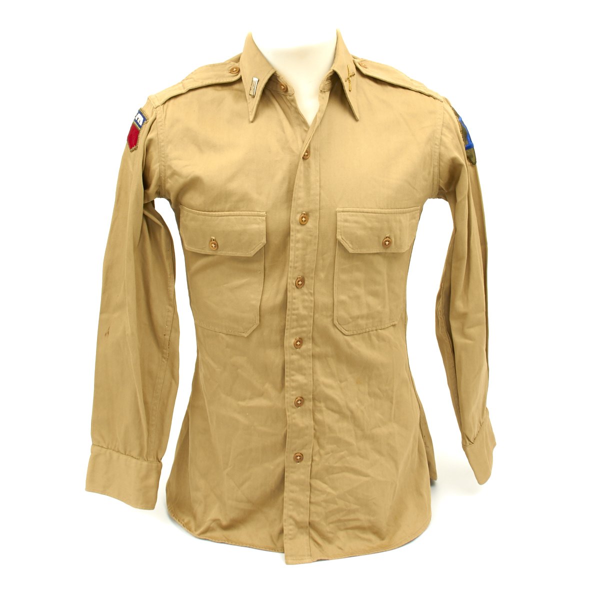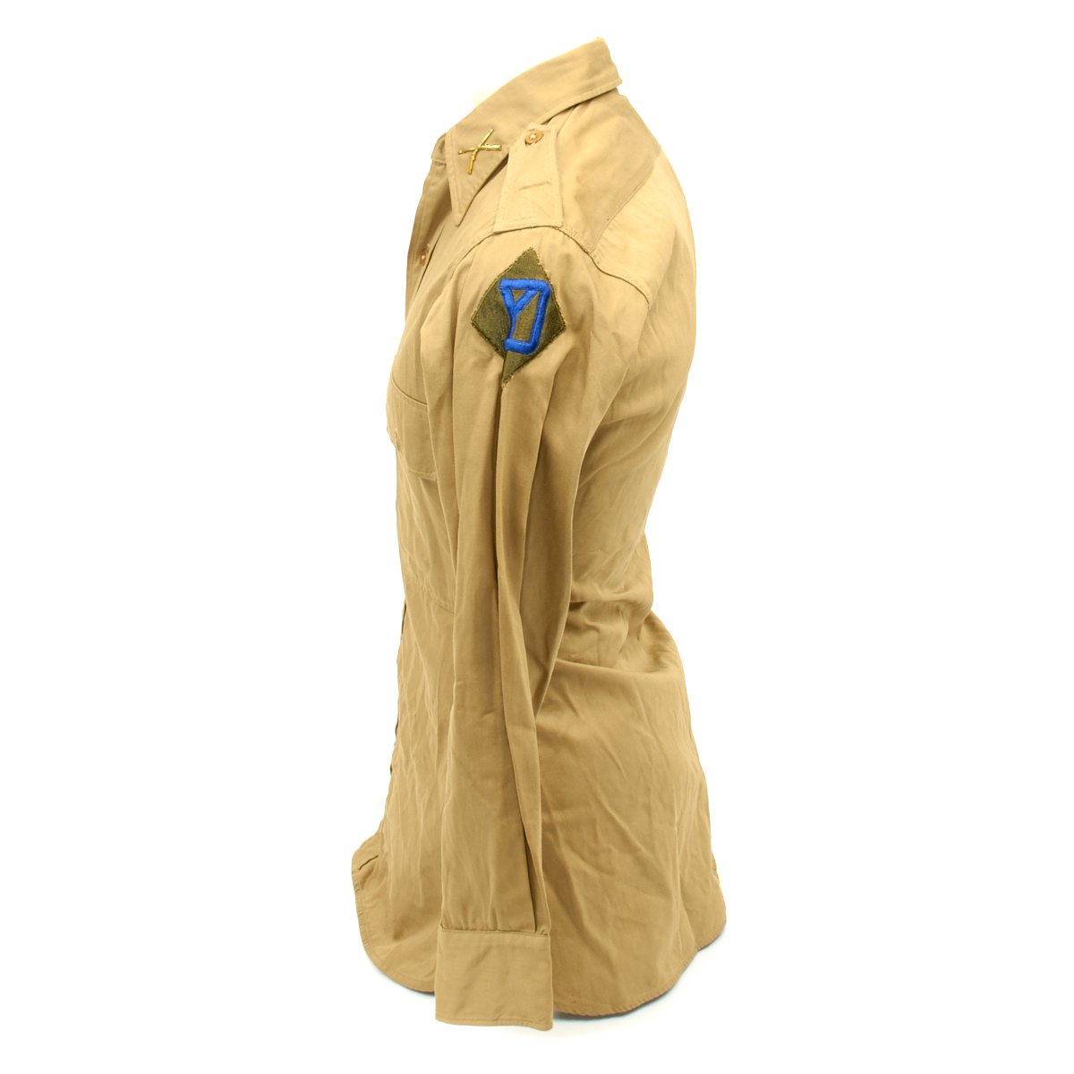 - Regulation Army Officer shirt with 76th Infantry Division patch on right shoulder and 26th Infantry Division patch on left shoulder.