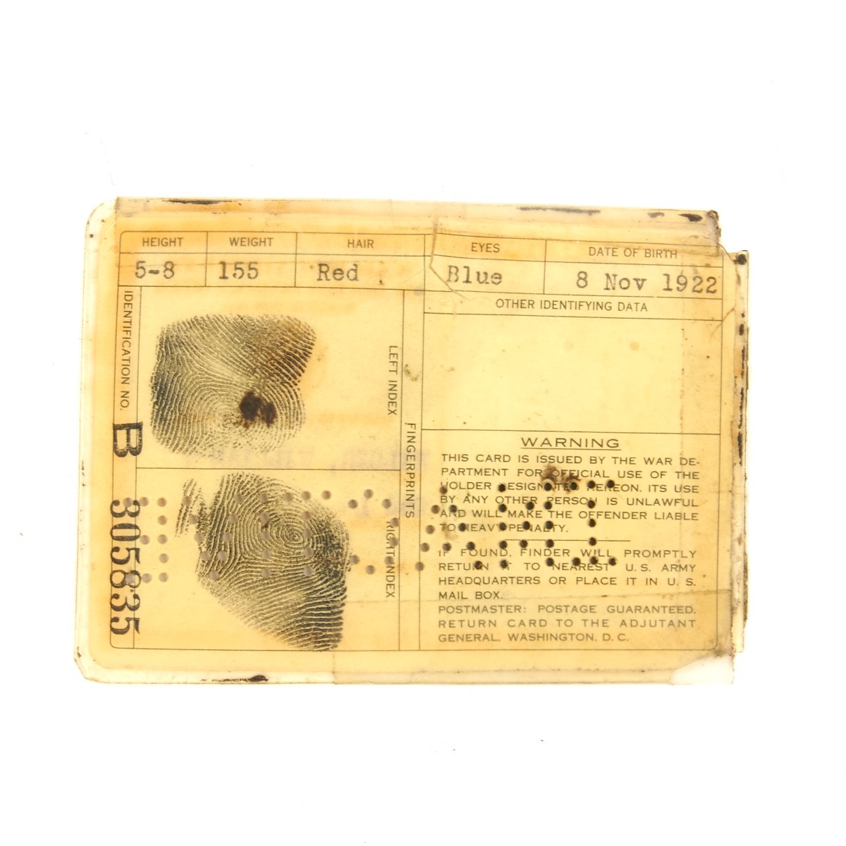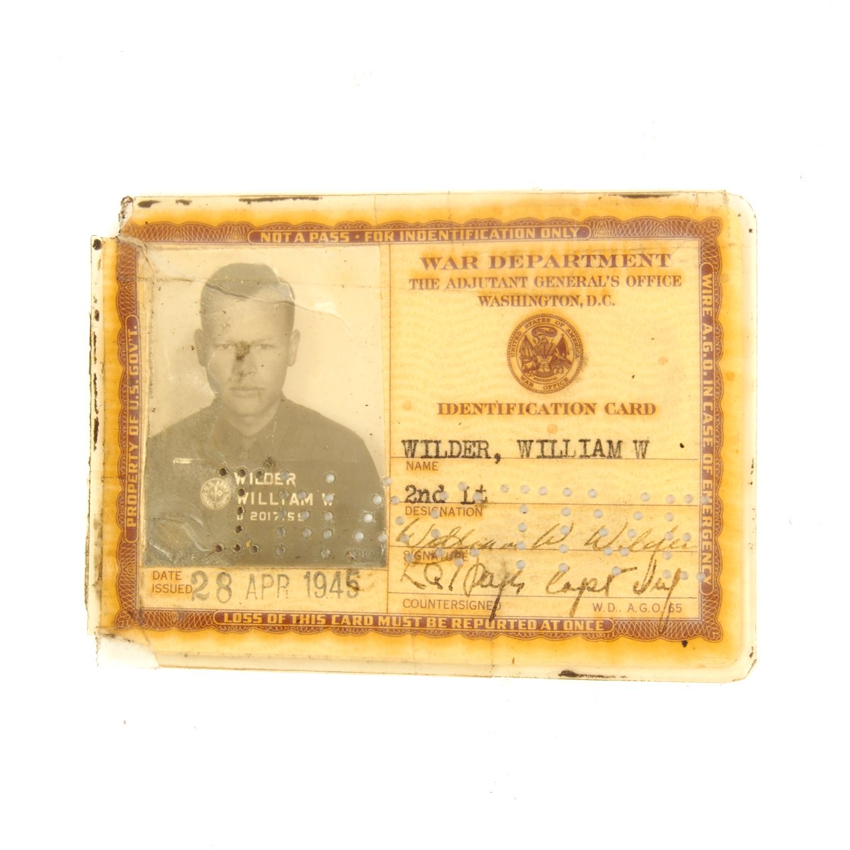 - War Depart Identification Card dated 28 April 1945.
