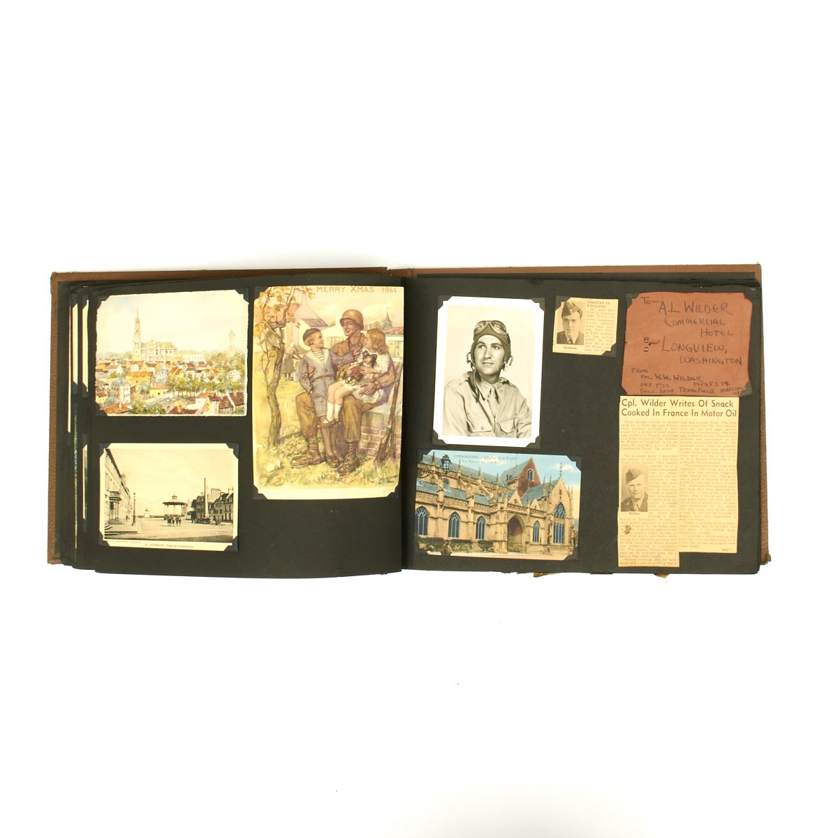 - Fantastic wartime made scrapbook with dozens of wartime photos, postcards, newspaper articles, postcards, letters and more.