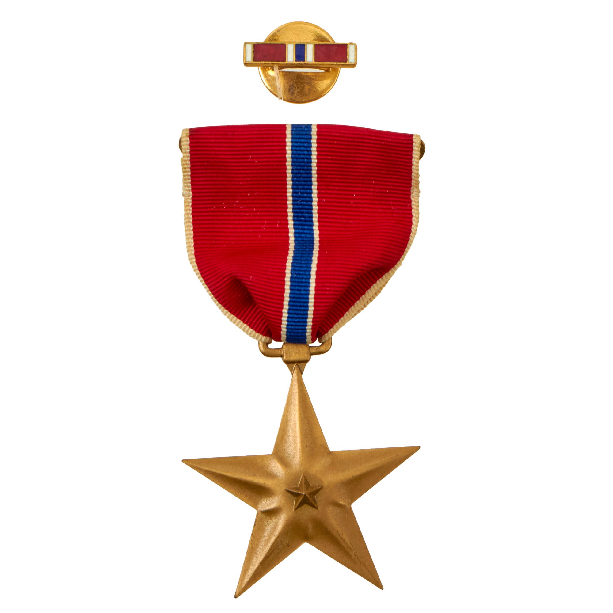- Two-place ribbon bar with Bronze Star and Purple Heart.