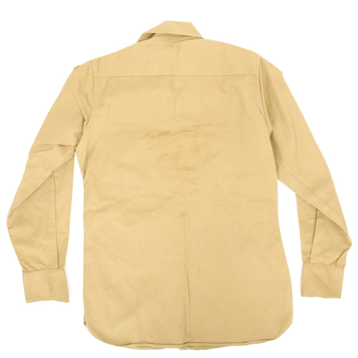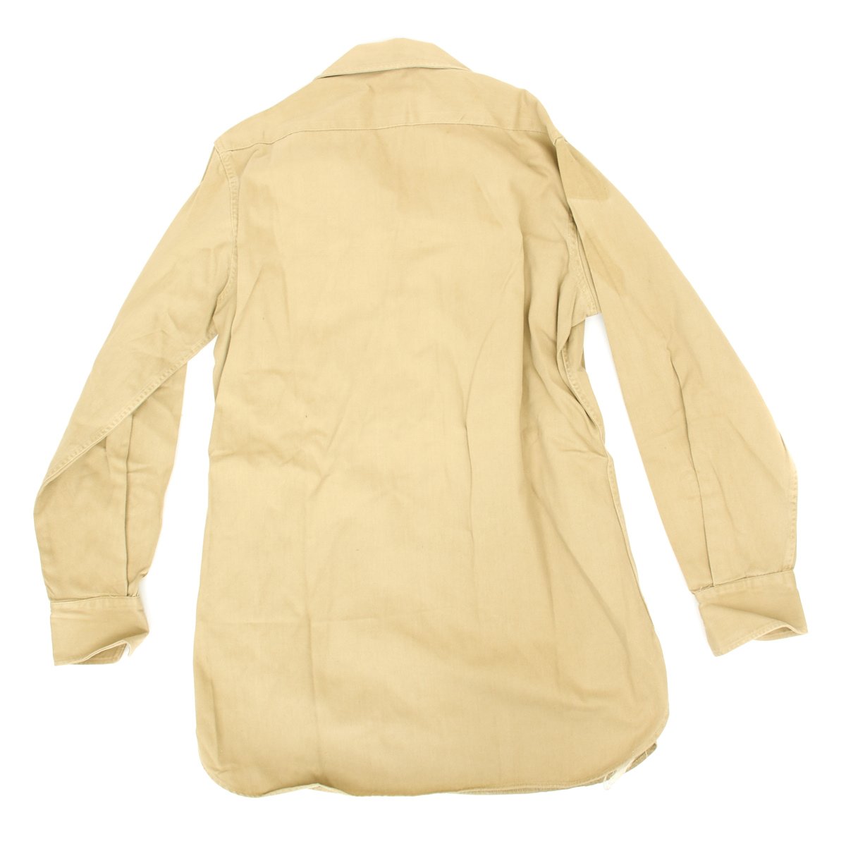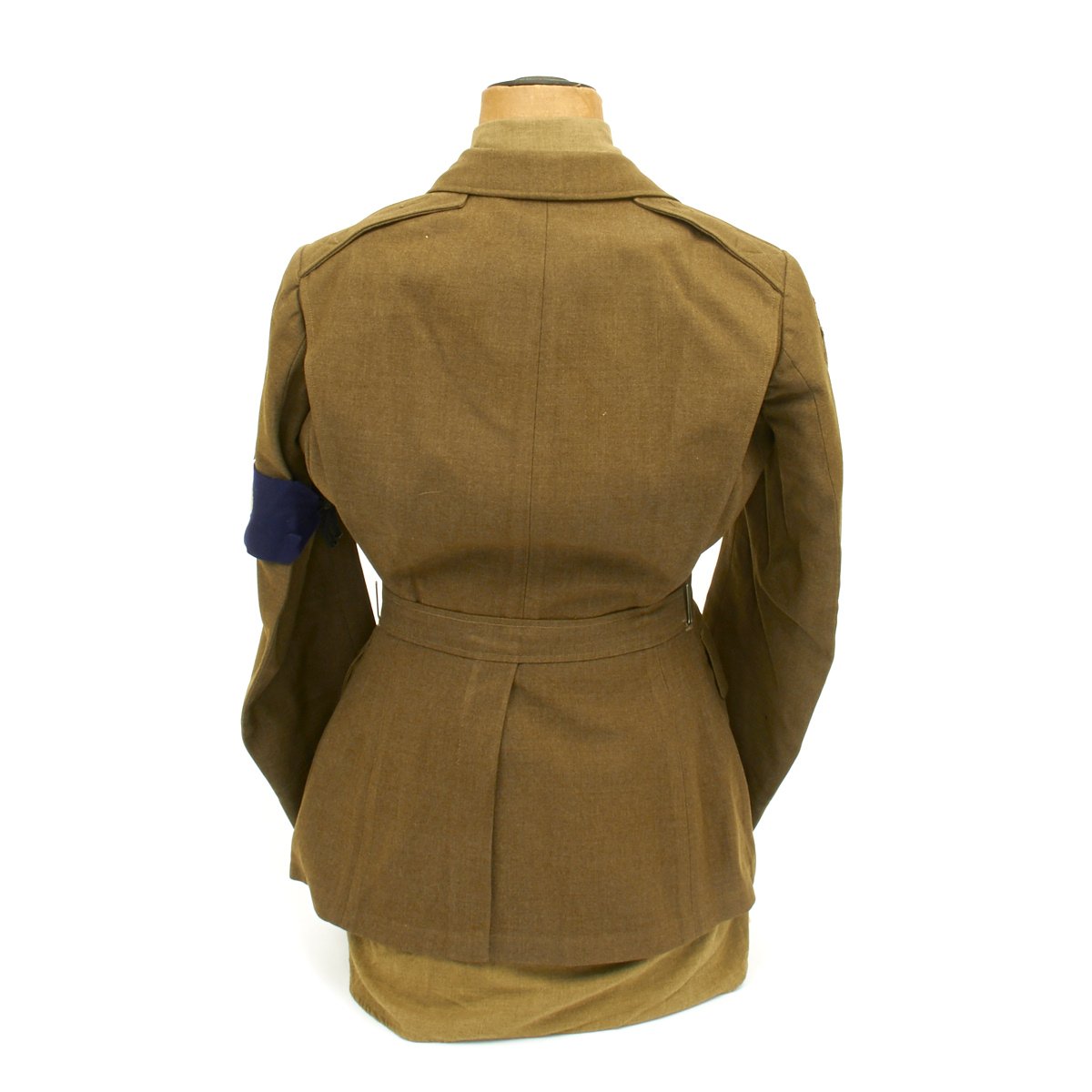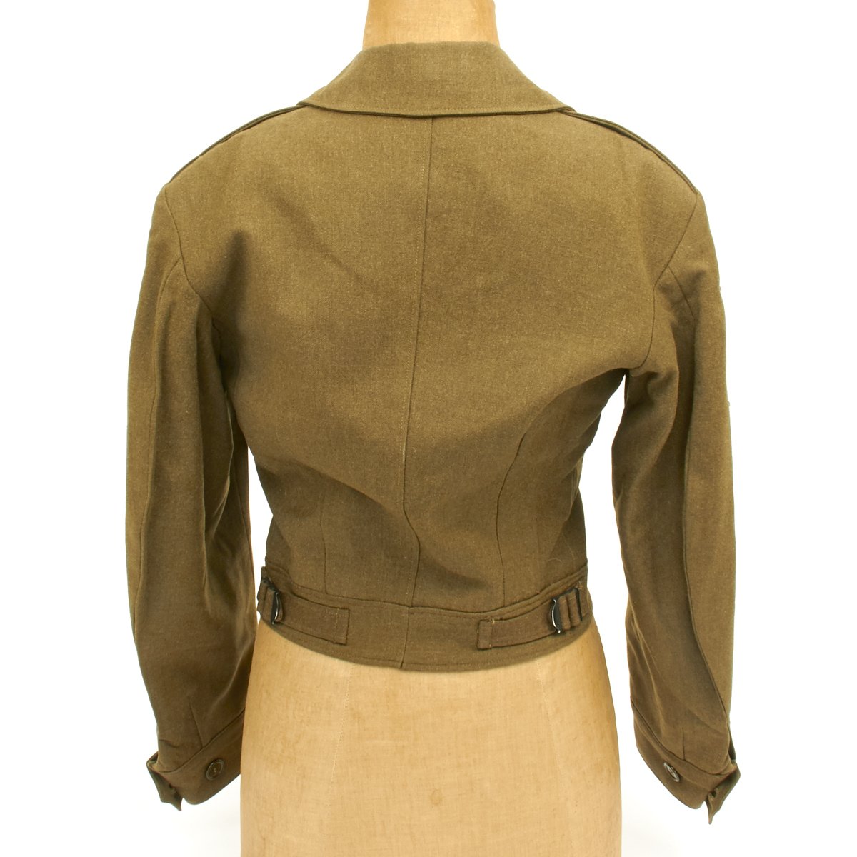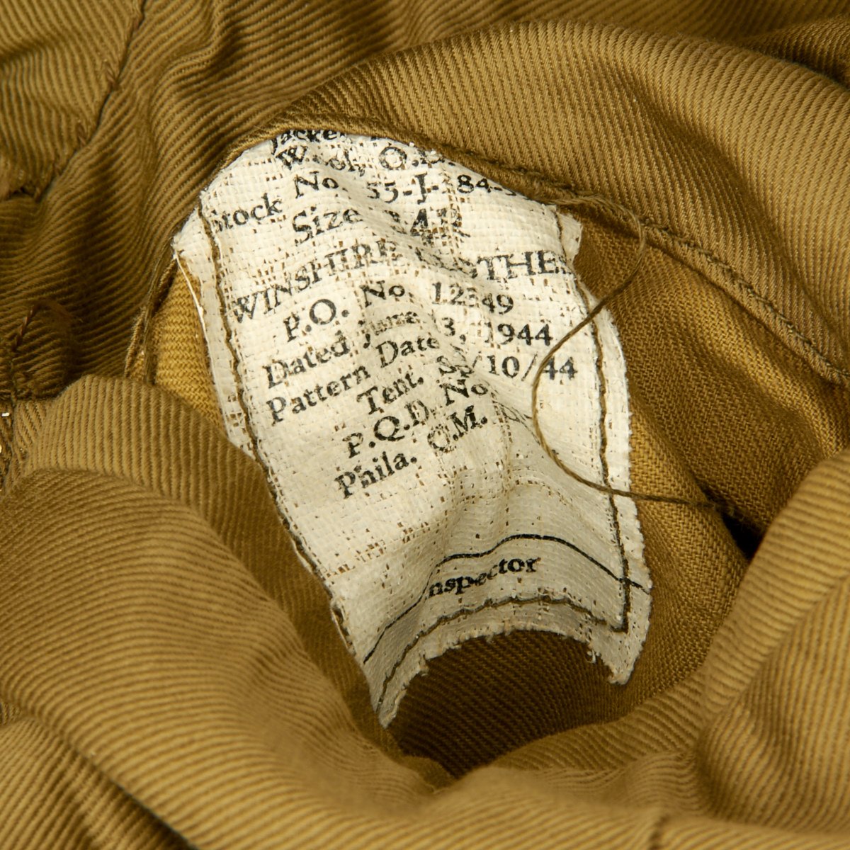 - OD wool 4-pocket coat with all original insignia including 1st Service Command, 45th Division, sterling CIB, 3 ribbon bars including ETO with 1 campaign star, US/MP collar discs, and PFC chevrons. This uniform appears in several photos in his scrapbook.