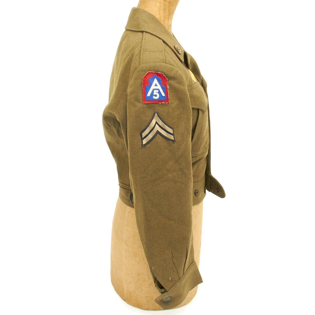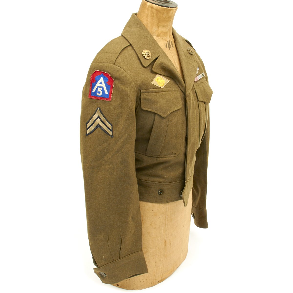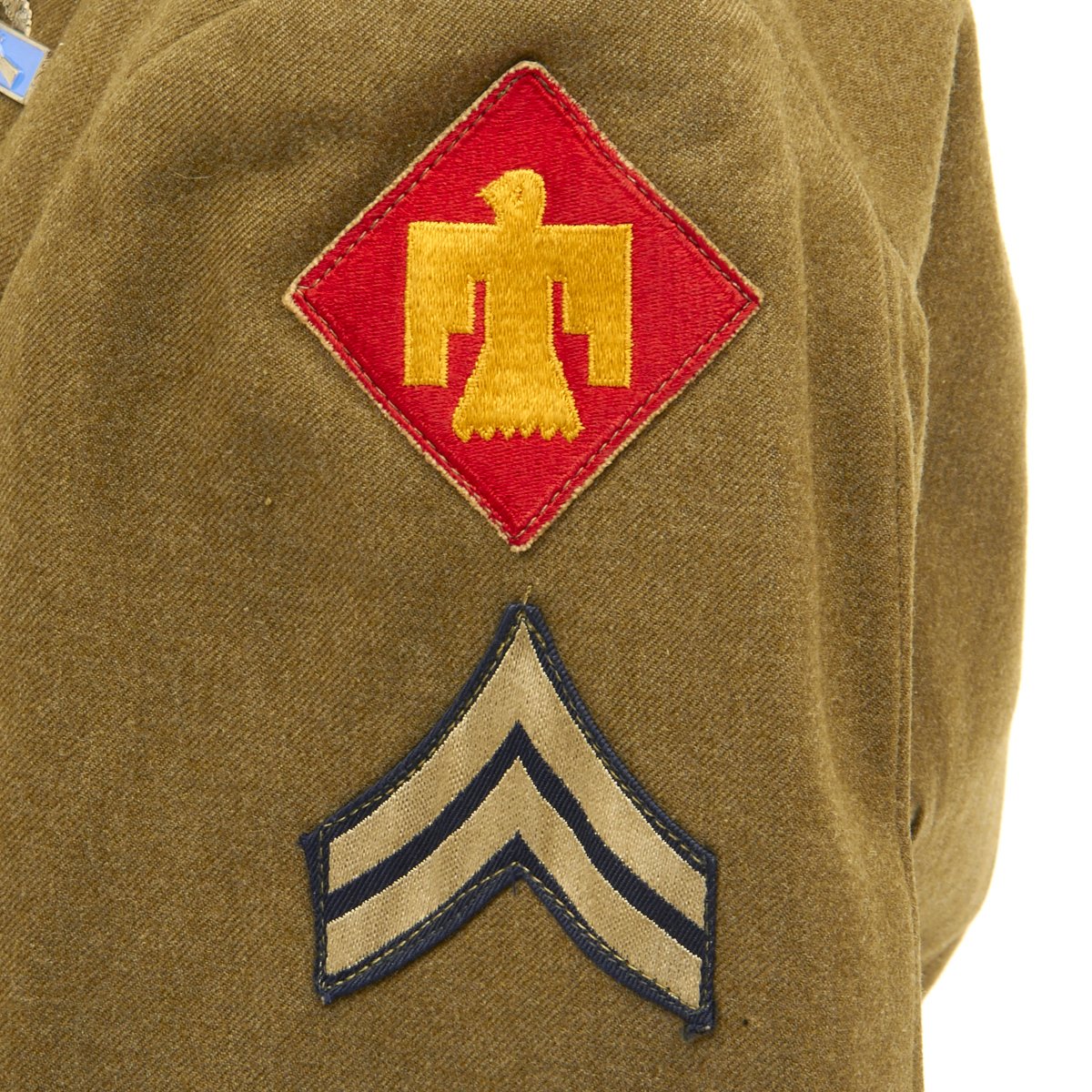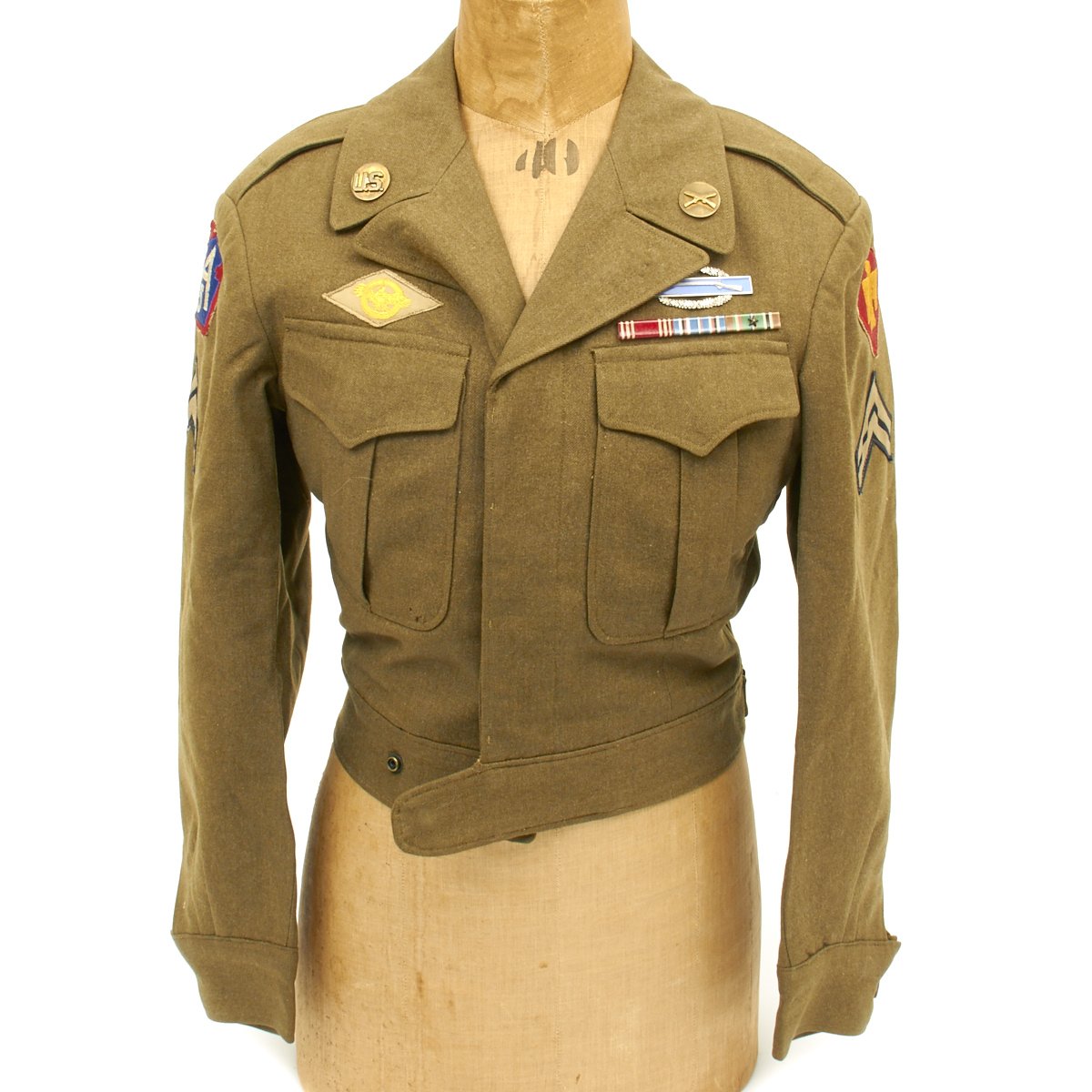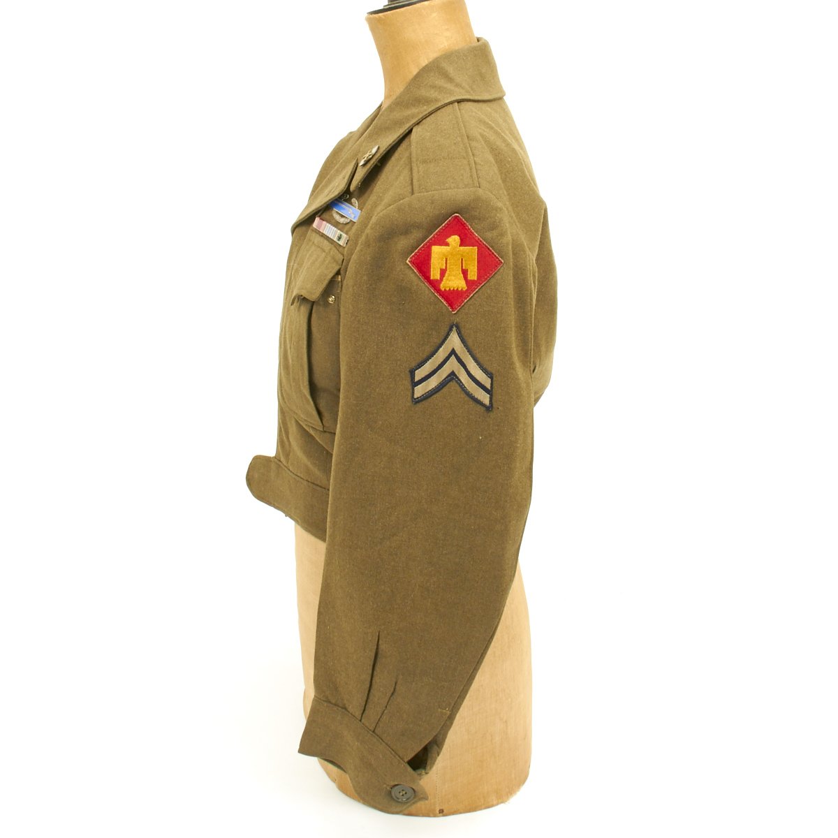 - OD wool Ike jacket with all original insignia including 45th Infantry Division, sterling CIB, 3 ribbon bars including ETO with 1 campaign star.