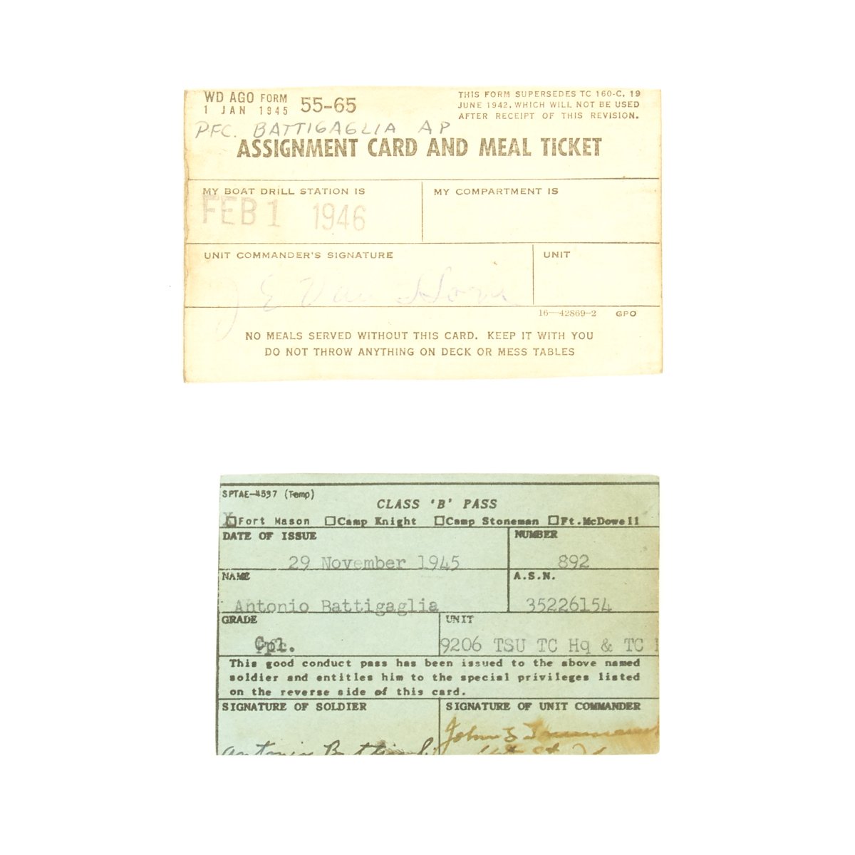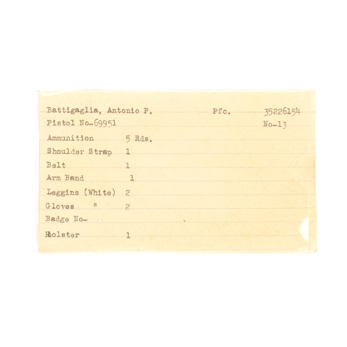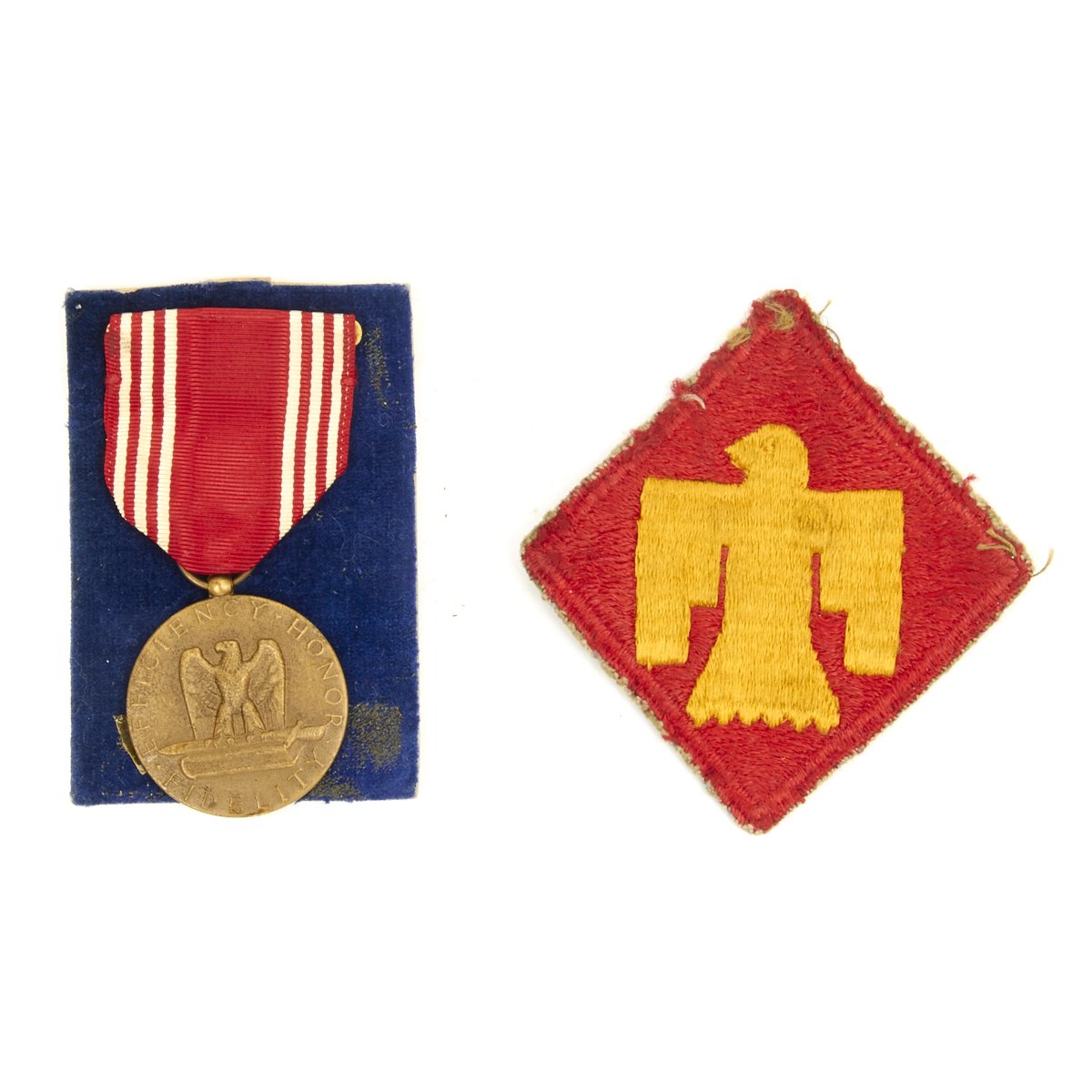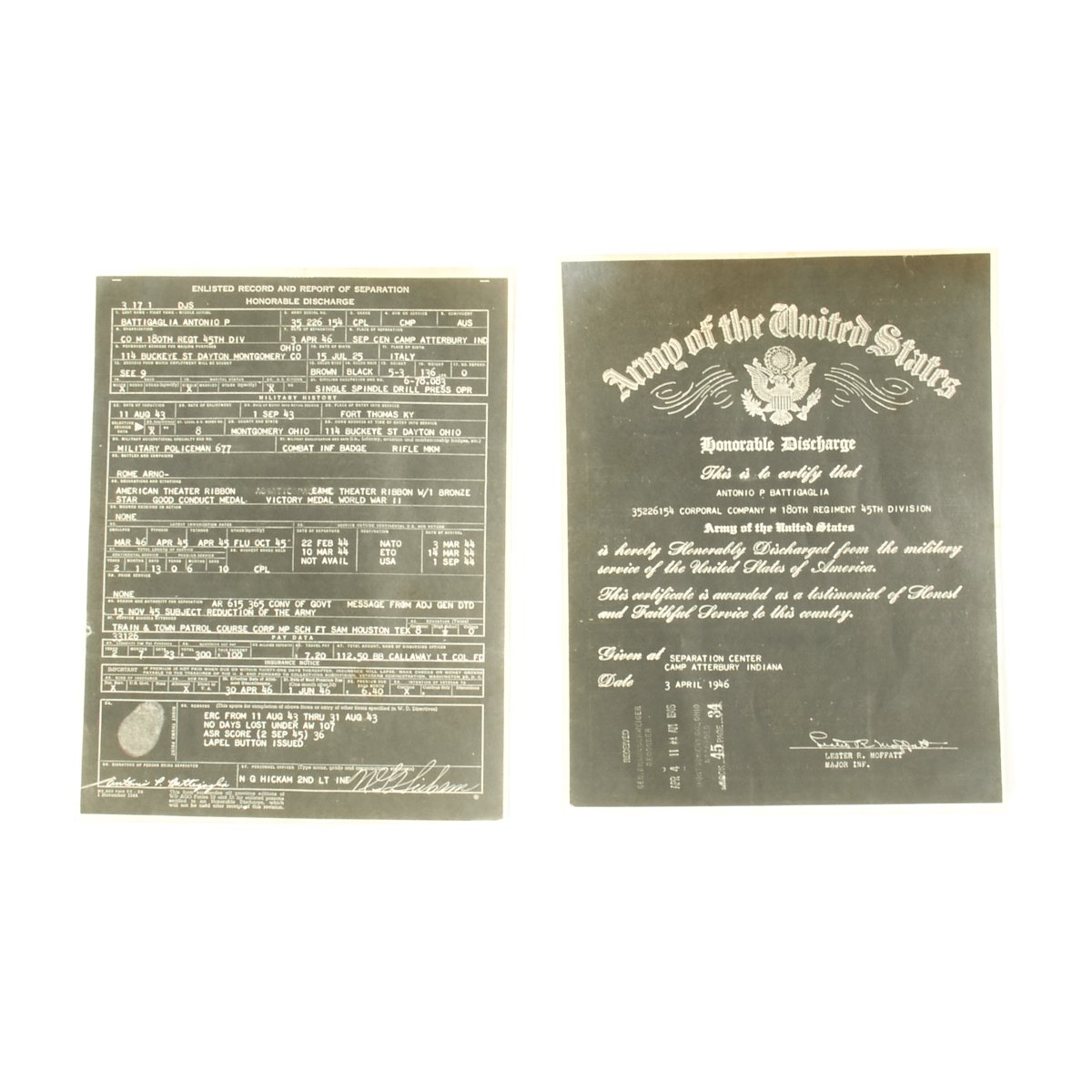 Original Items: One-of-a-kind set. This group belonged to Corporal Antonio Battigaglia who served with Company M, 180th Infantry Regiment, 45th Infantry Division during WWII. Corporal Battigaglia was injured in theater and it was severe enough to ship him home. He continued to serve as an MP in the states under 1st Service Command. He was born on 15th July 1925, enlisted in the Army on 1st September 1943 and was discharged on 3rd April 1946. We was sent to Europe in February 1944.