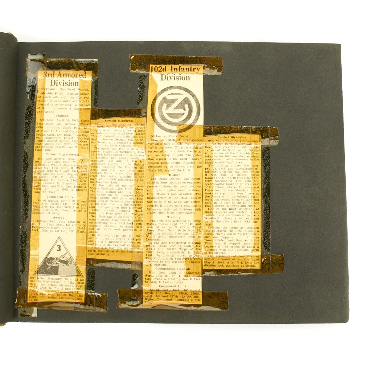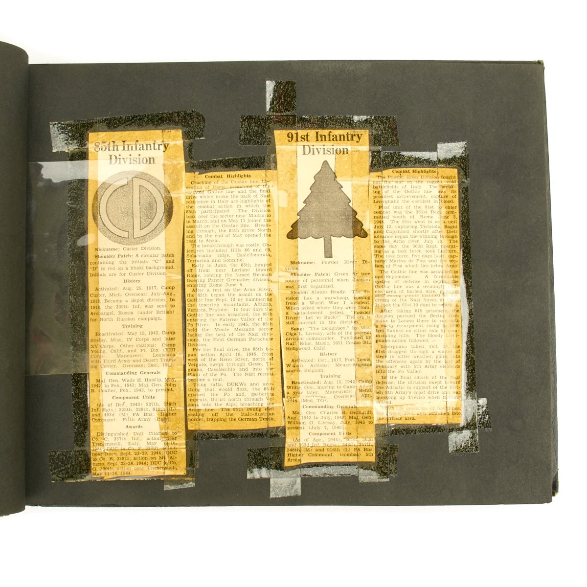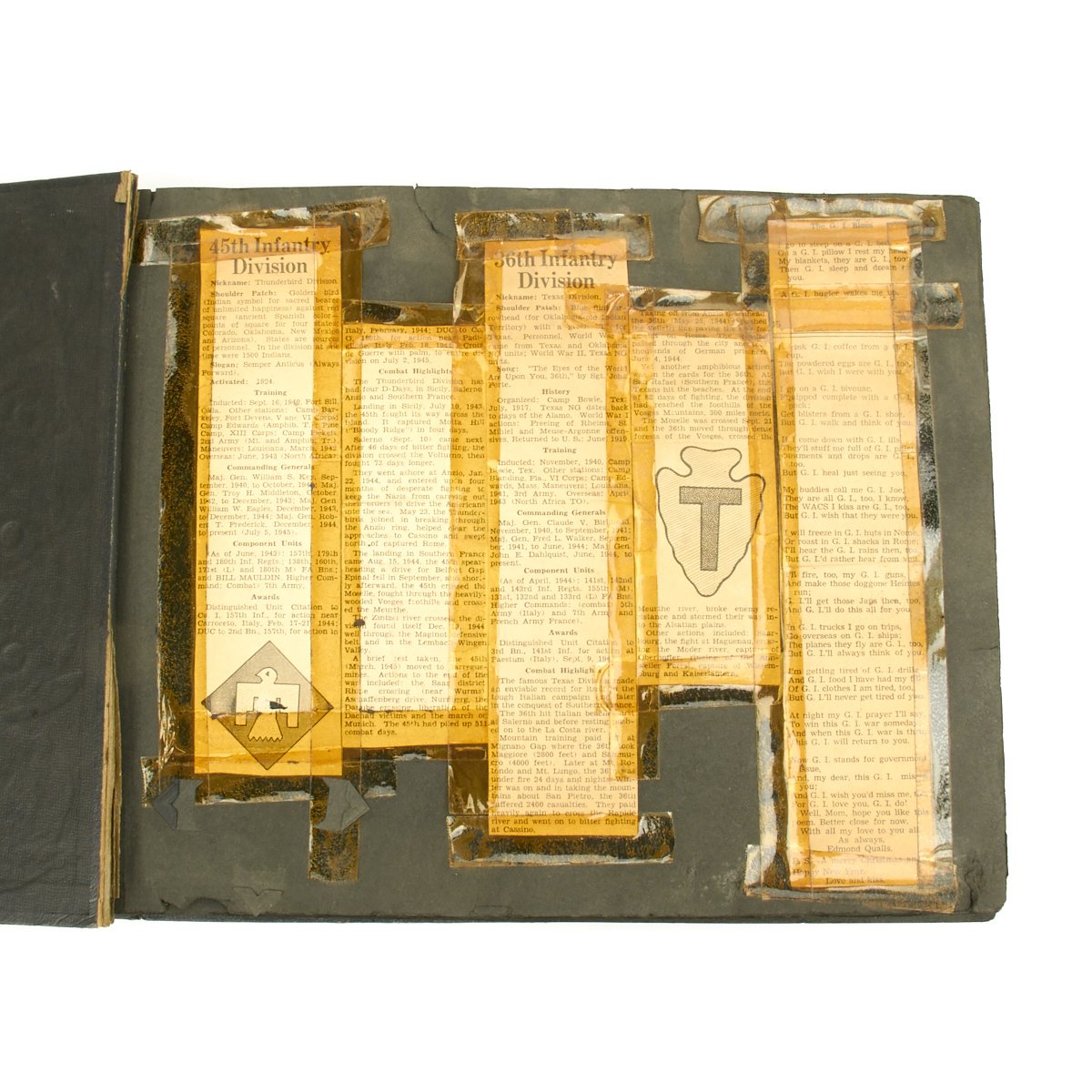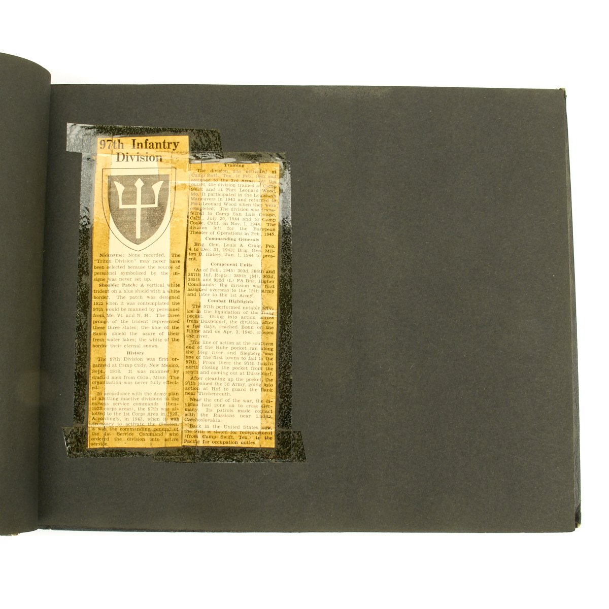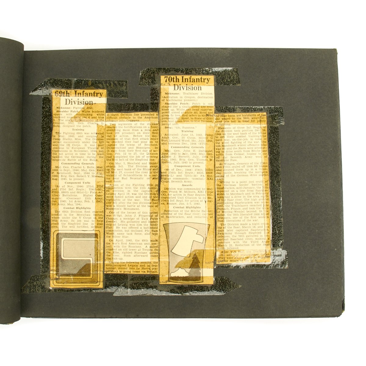 - Scrapbook with 21 original photos several showing him in these very uniforms, Scrapbook also contains numerous wartime newspaper clippings