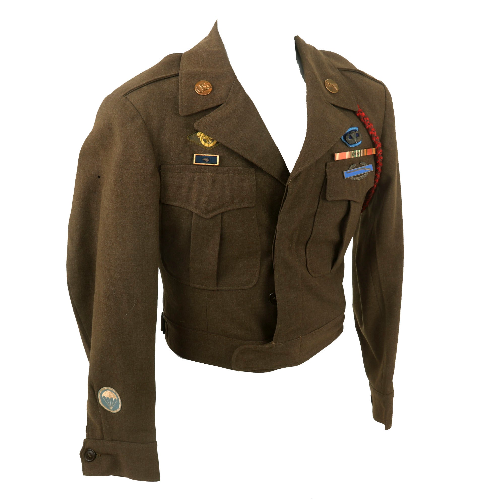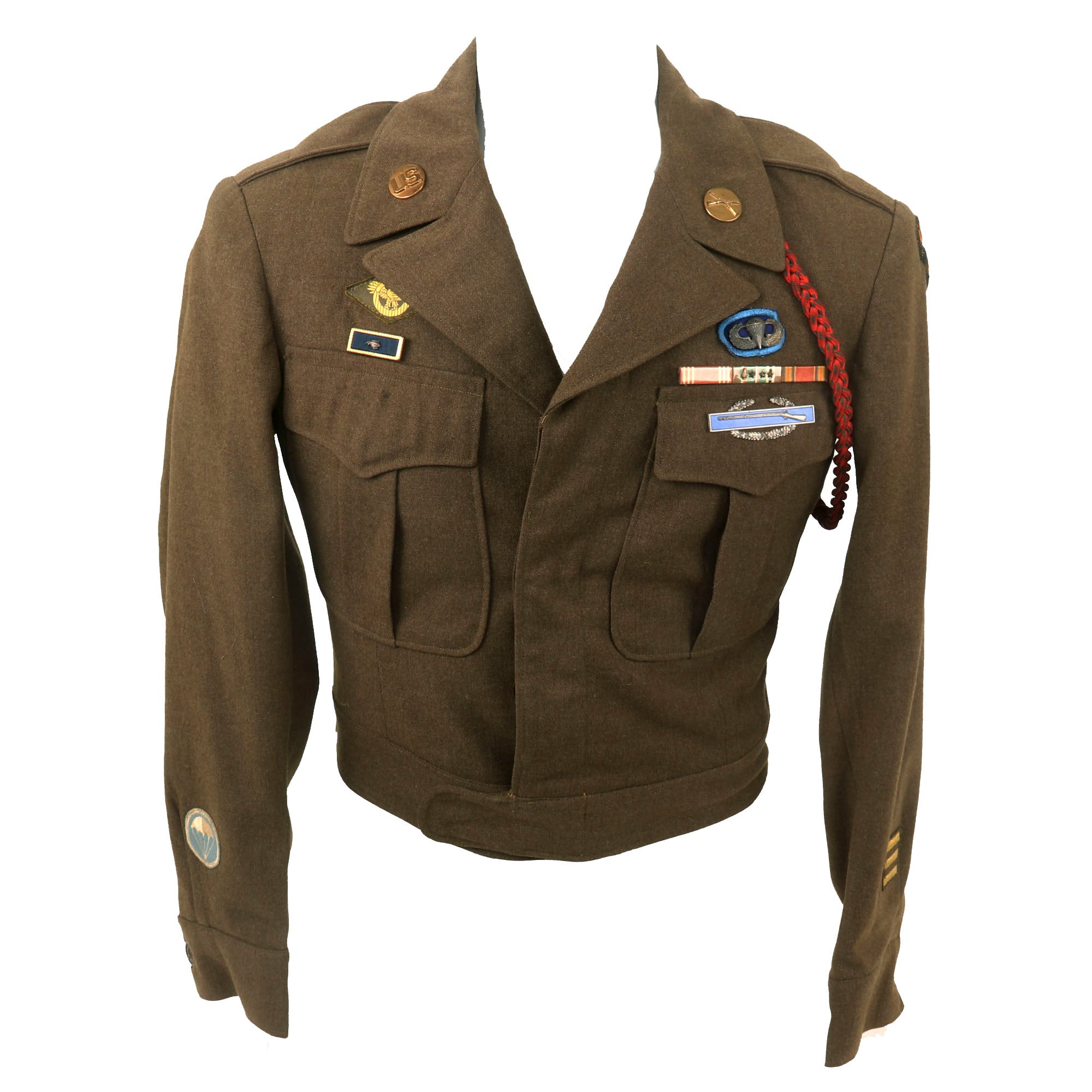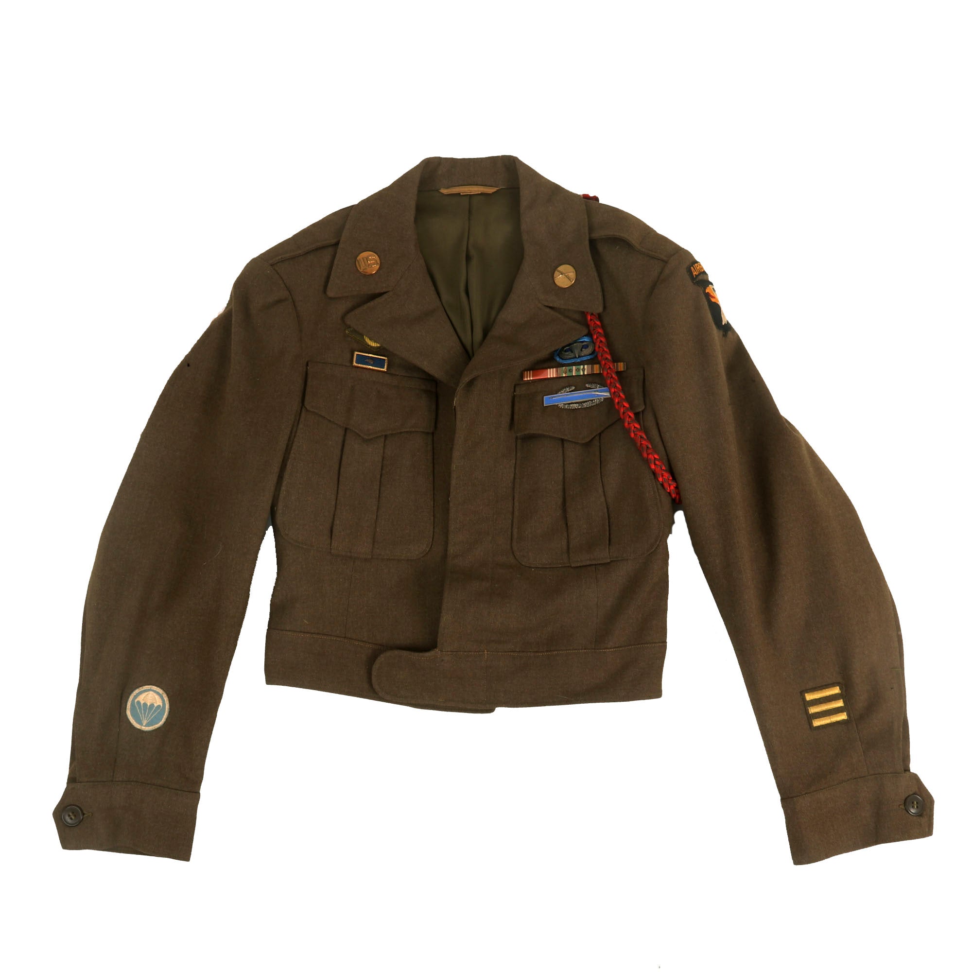 Original Item: Only One Available. A fantastic 502nd Parachute Infantry Regiment 101st Airborne Division Ike jacket is in very good well cared for condition. The size is a 36 and features a lovely “Screaming Eagle” Old Abe patch with Airborne rocker on the left shoulder and a Parachute Regiment overseas cap badge on the right cuff.