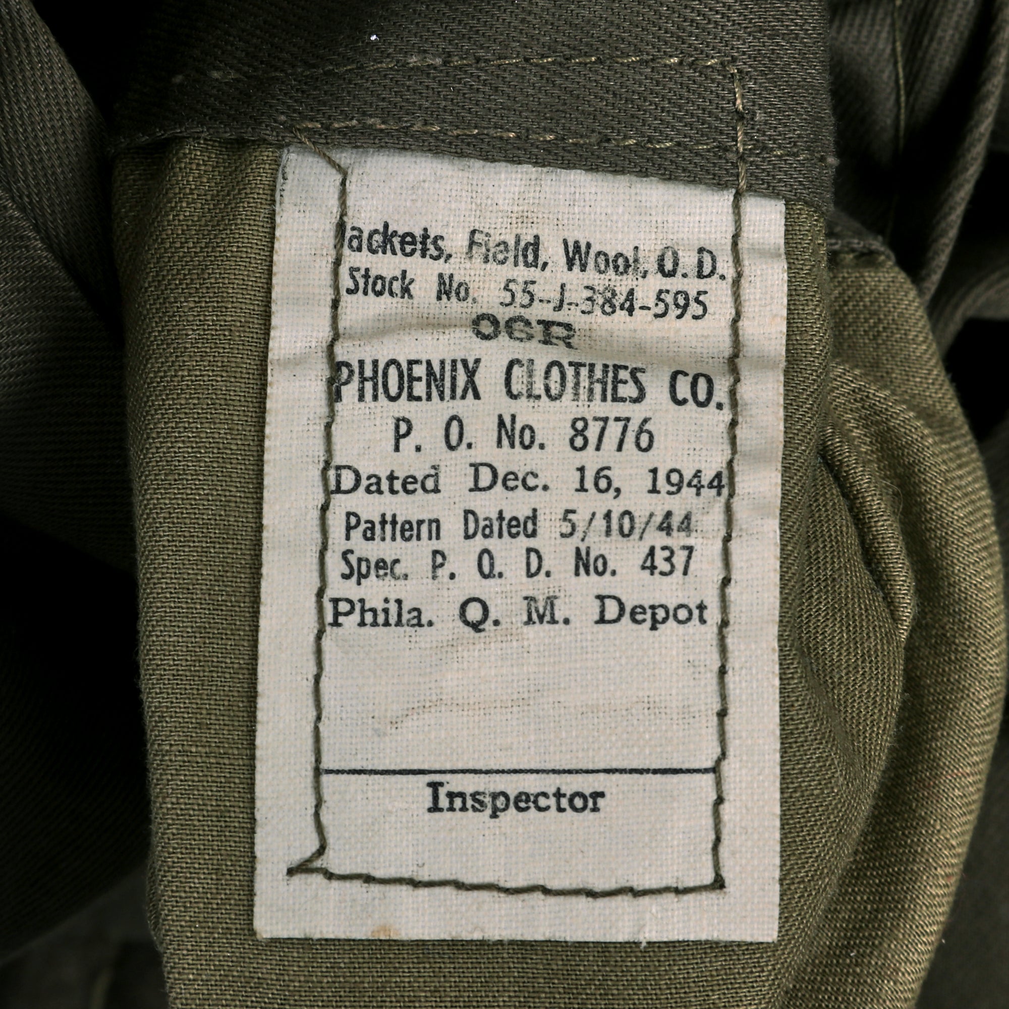 - The jacket has an original data label from Phoenix Clothes, Co. and is dated December 16th, 1944.