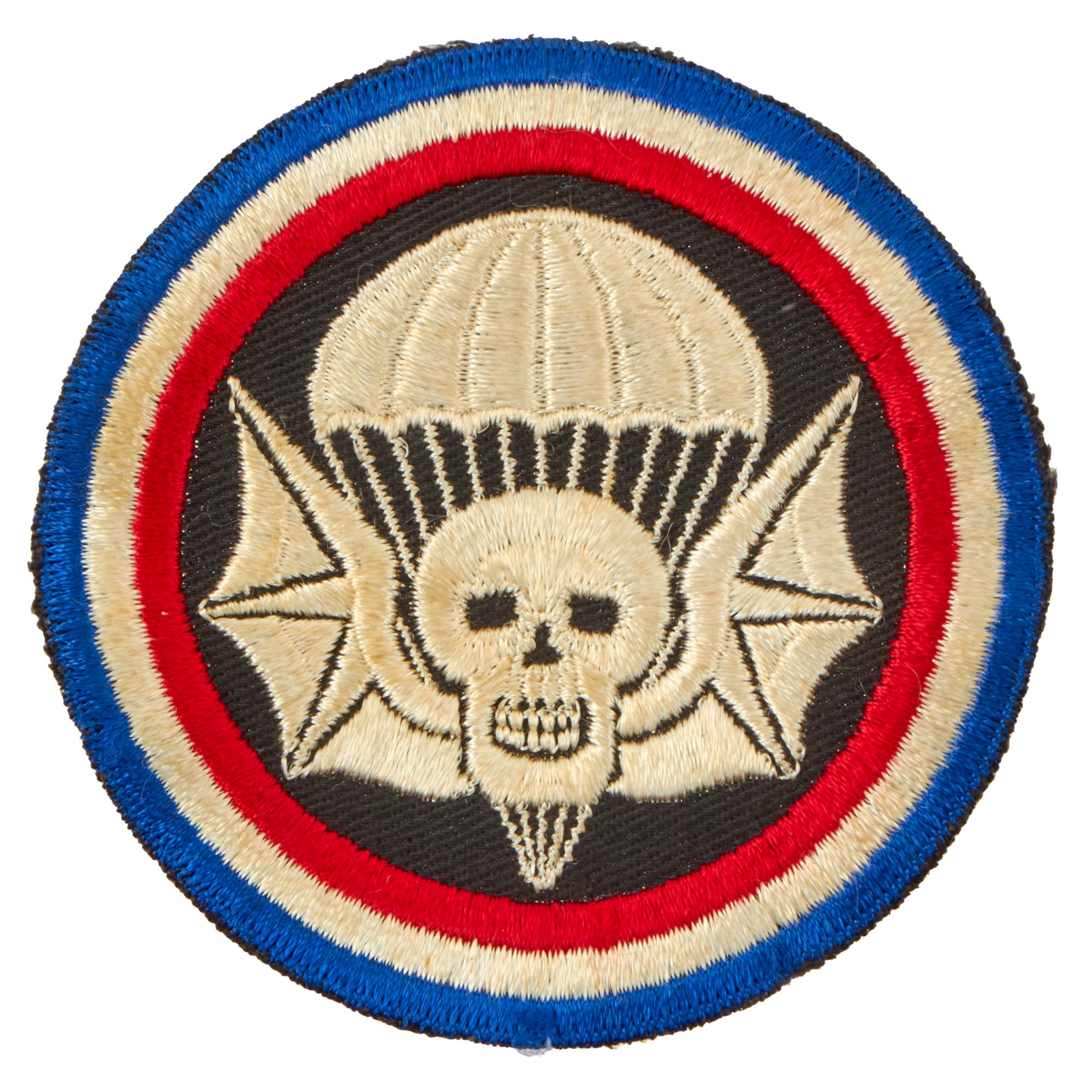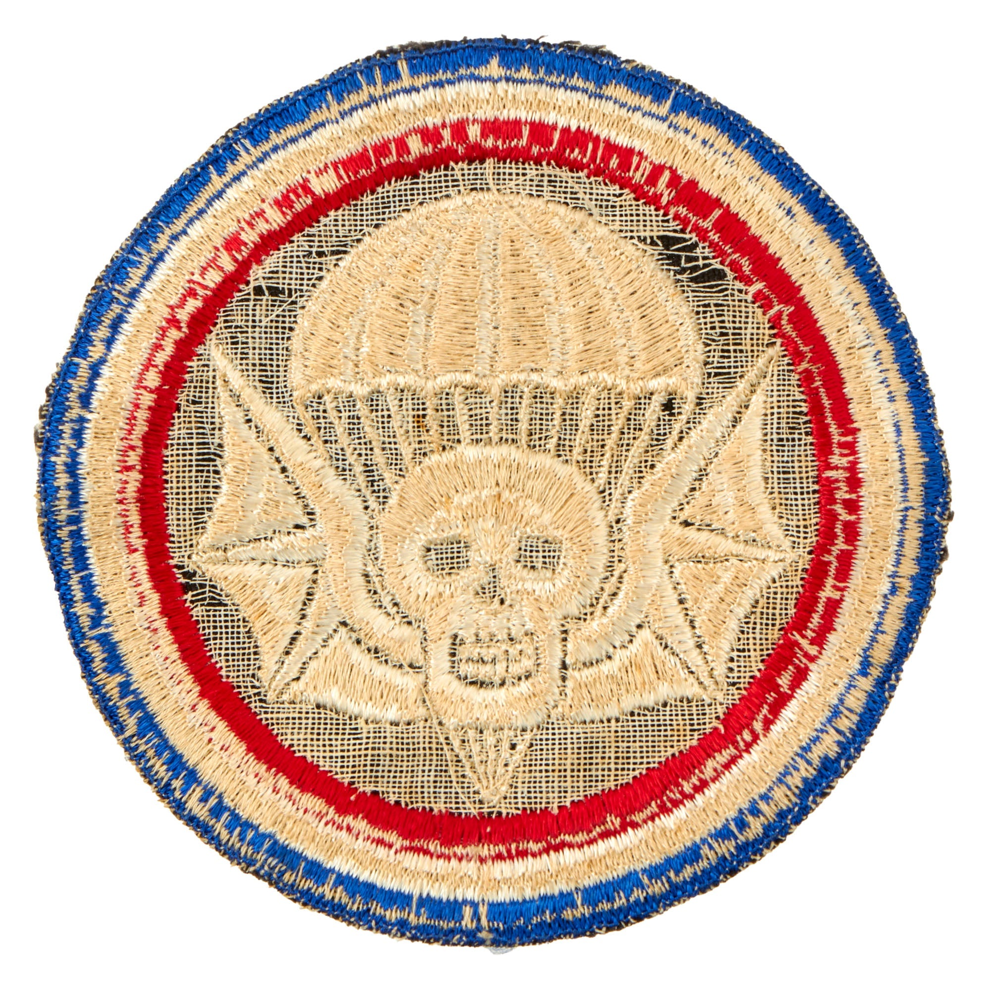 This is a very scarce example of a pocket patch for the 502nd PIR, which was worn on the chest of jump jackets and field jackets (and occasionally as a shoulder patch), but it was never worn on the dress uniform. It measures approximately 3⅞” in diamater and is in fantastic condition, with some light staining from age, and waves in the edge, but otherwise it is in stellar shape. The construction of the back is entirely period correct, and this is the first original example we have ever offered.