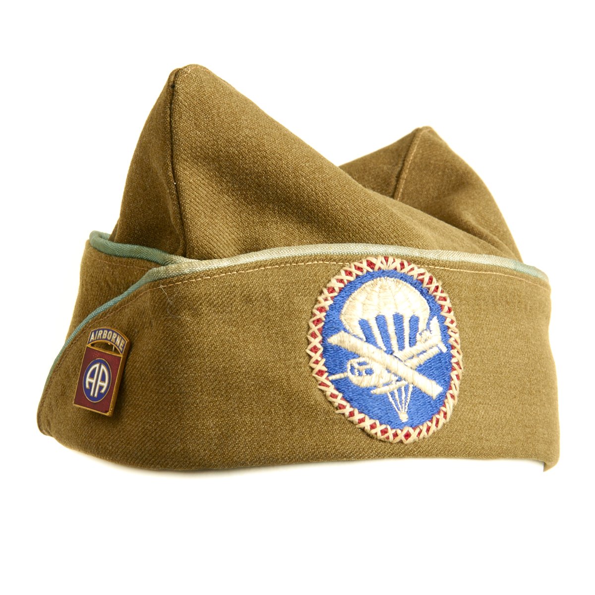 - Overseas Garrison cap with Parachute Glider Patch with excellent white cross stitching. Inside of the cap is named to Kaufman in ink. Cap also has an 82nd Airborne Enamel Pin.