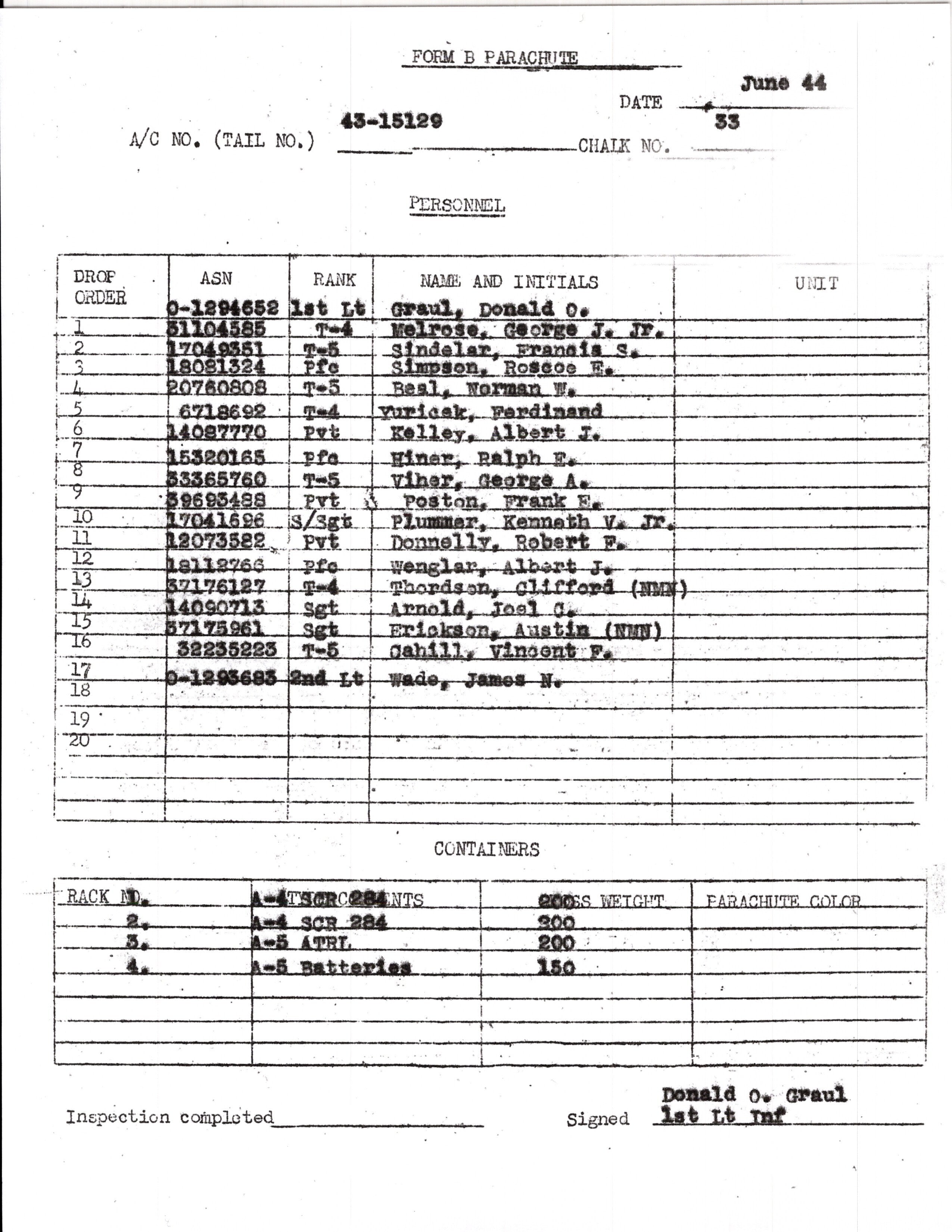 - Copy of jump roster for June 6th, 1944.