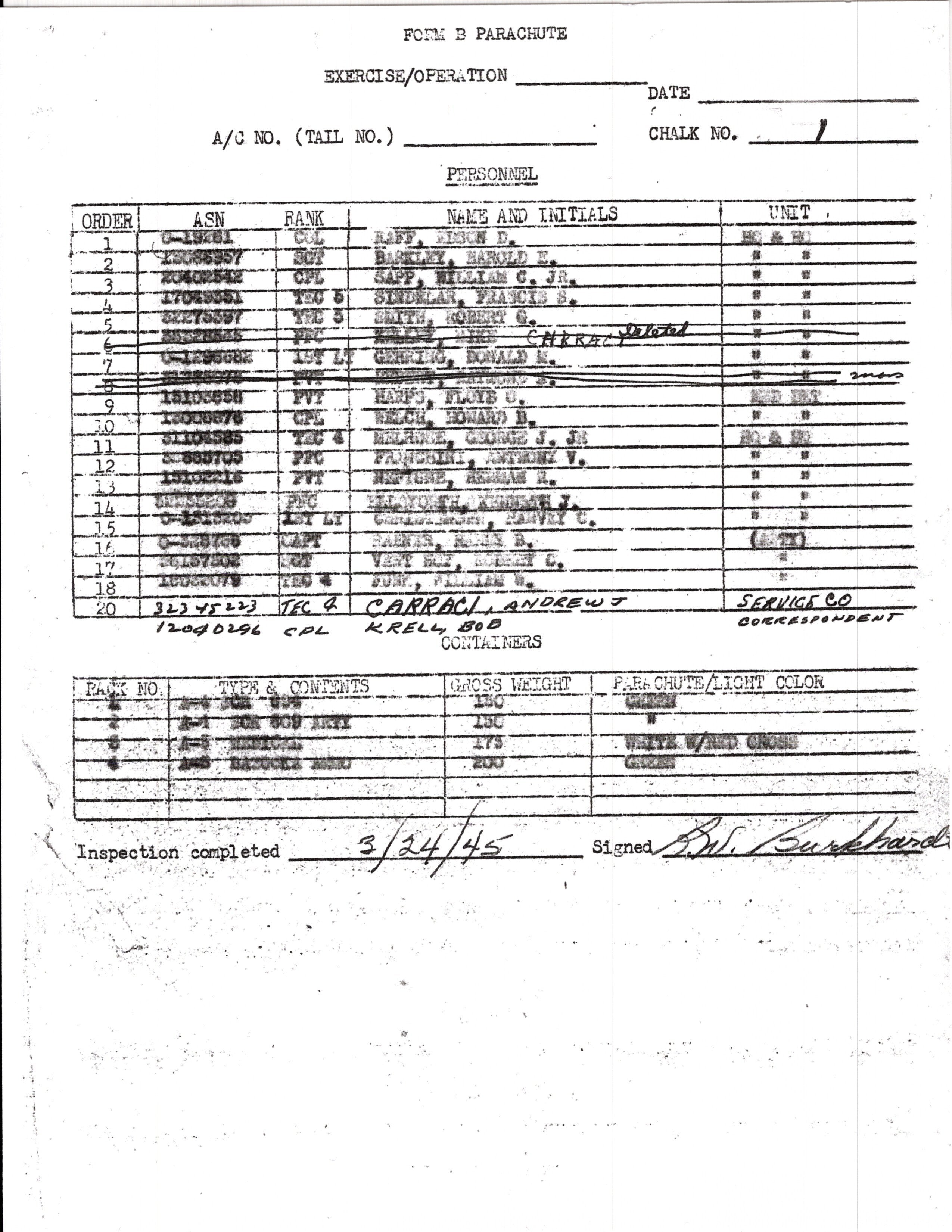 He is named on two Jump rosters, one from June 6th 1944 and the second from Market Garden.