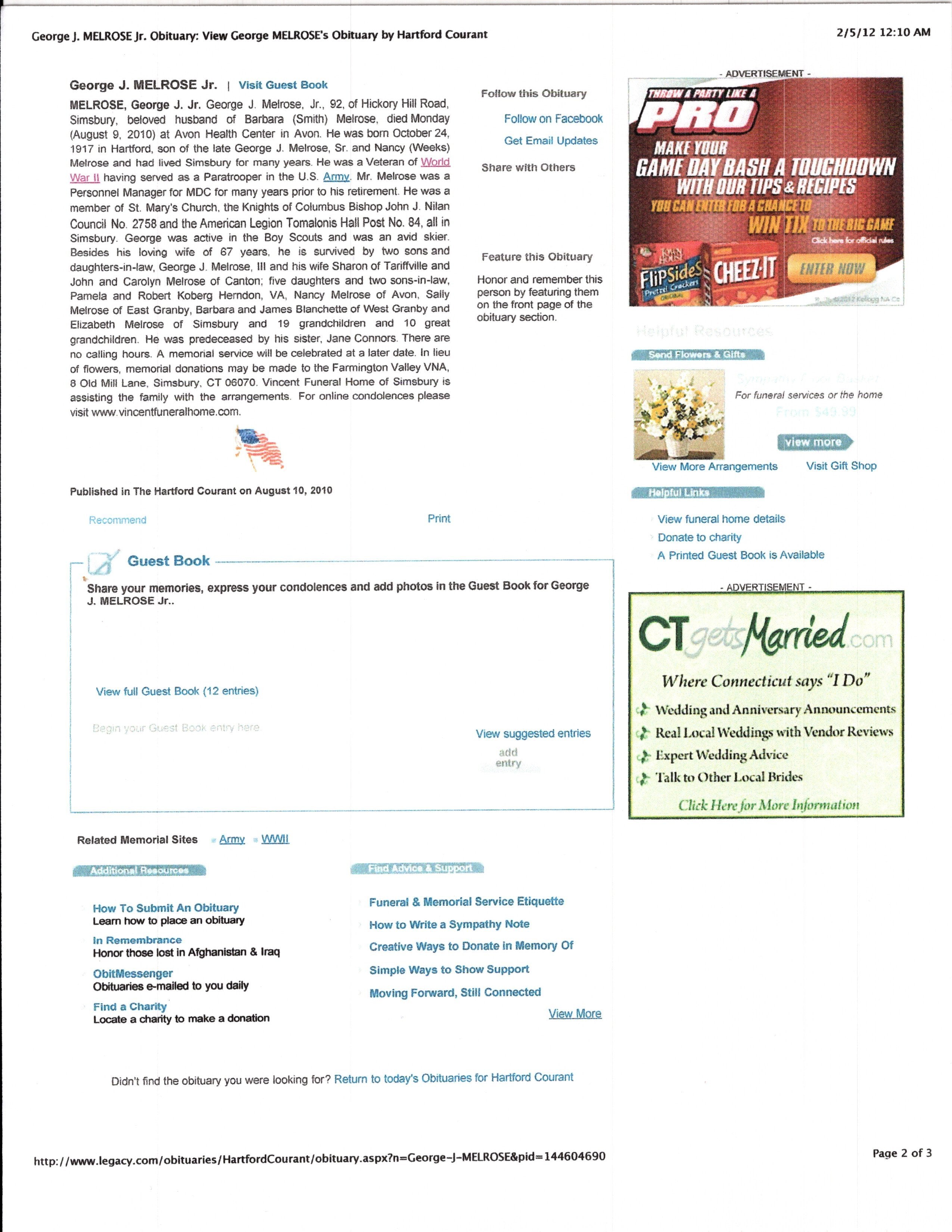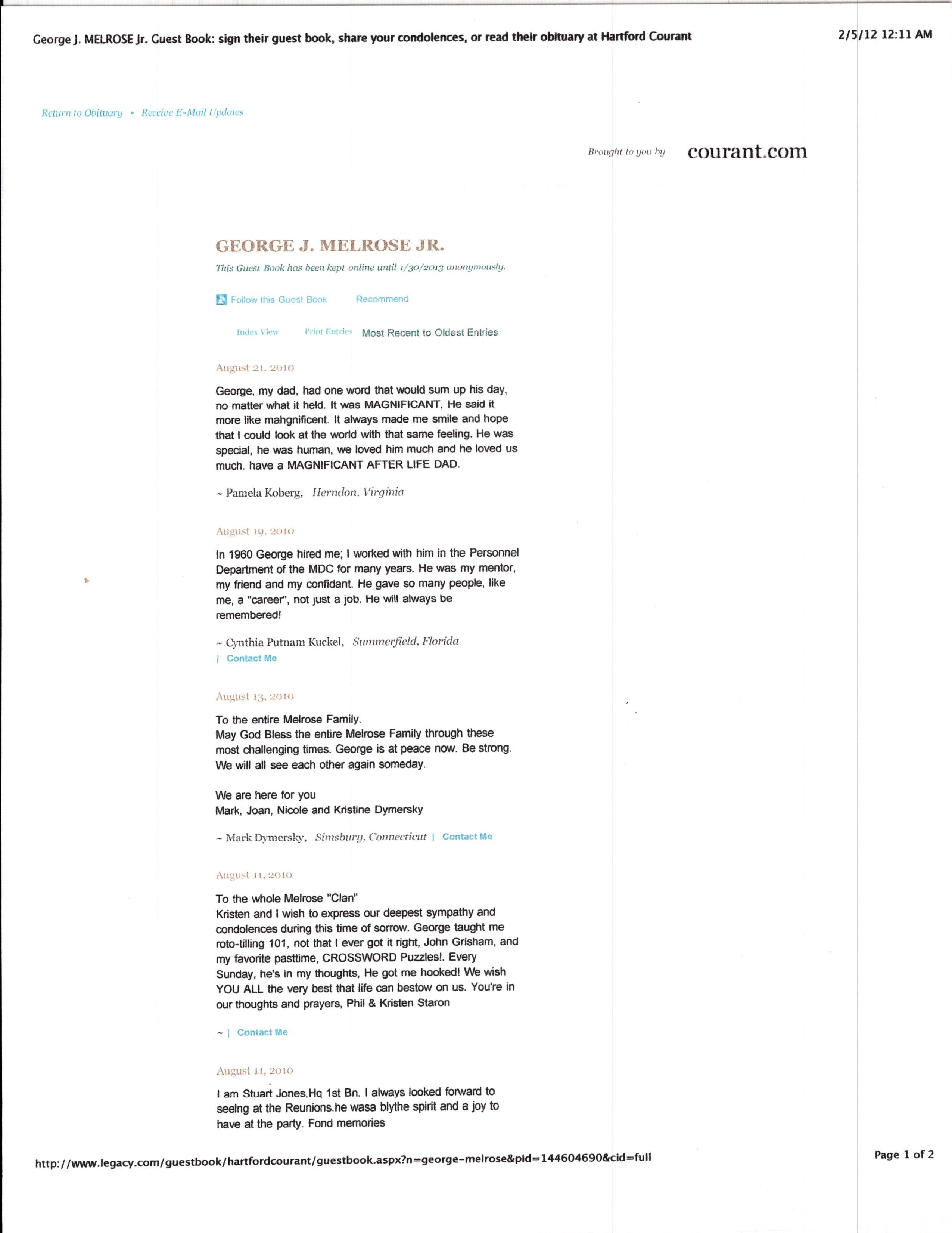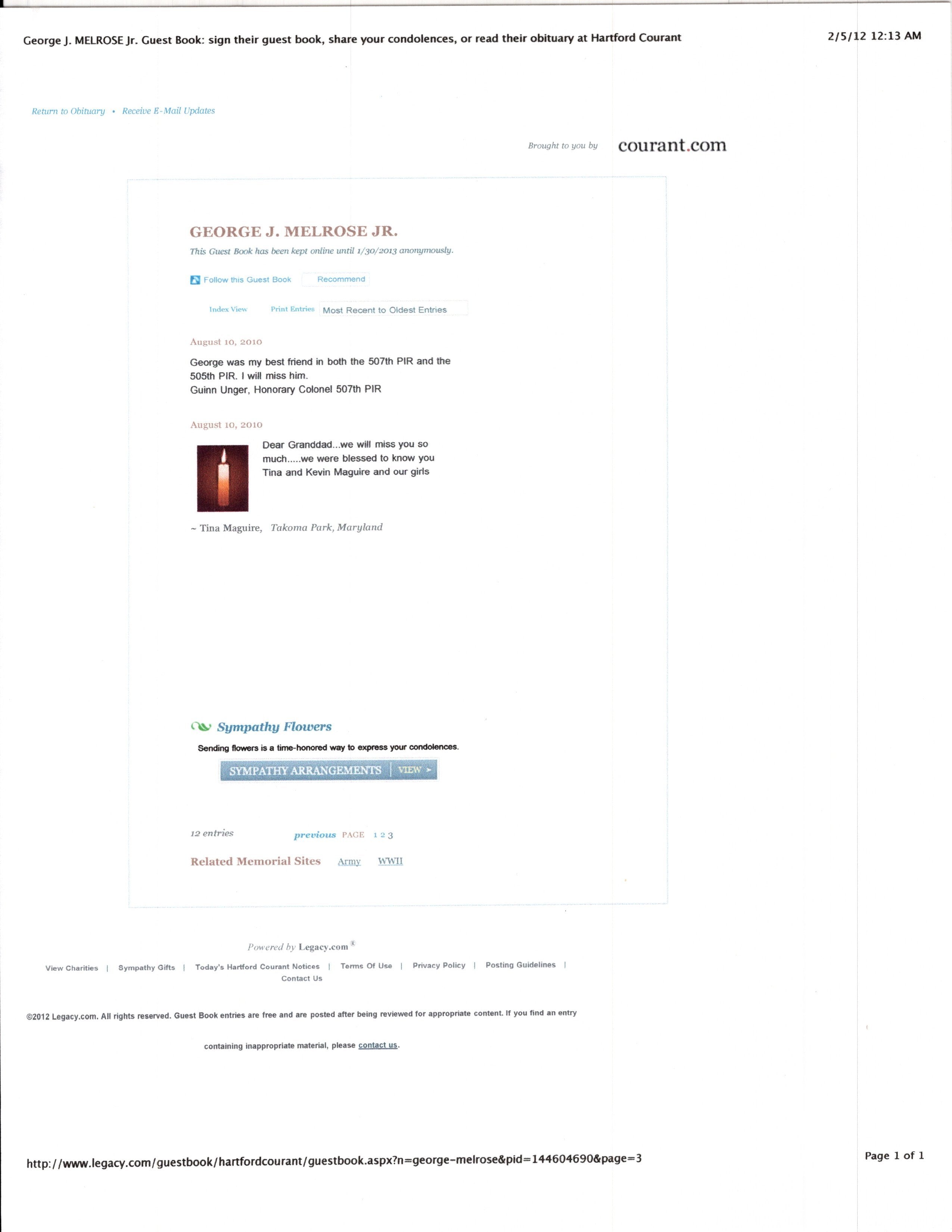 - Research binder with historical information about George J. Melrose Jr.