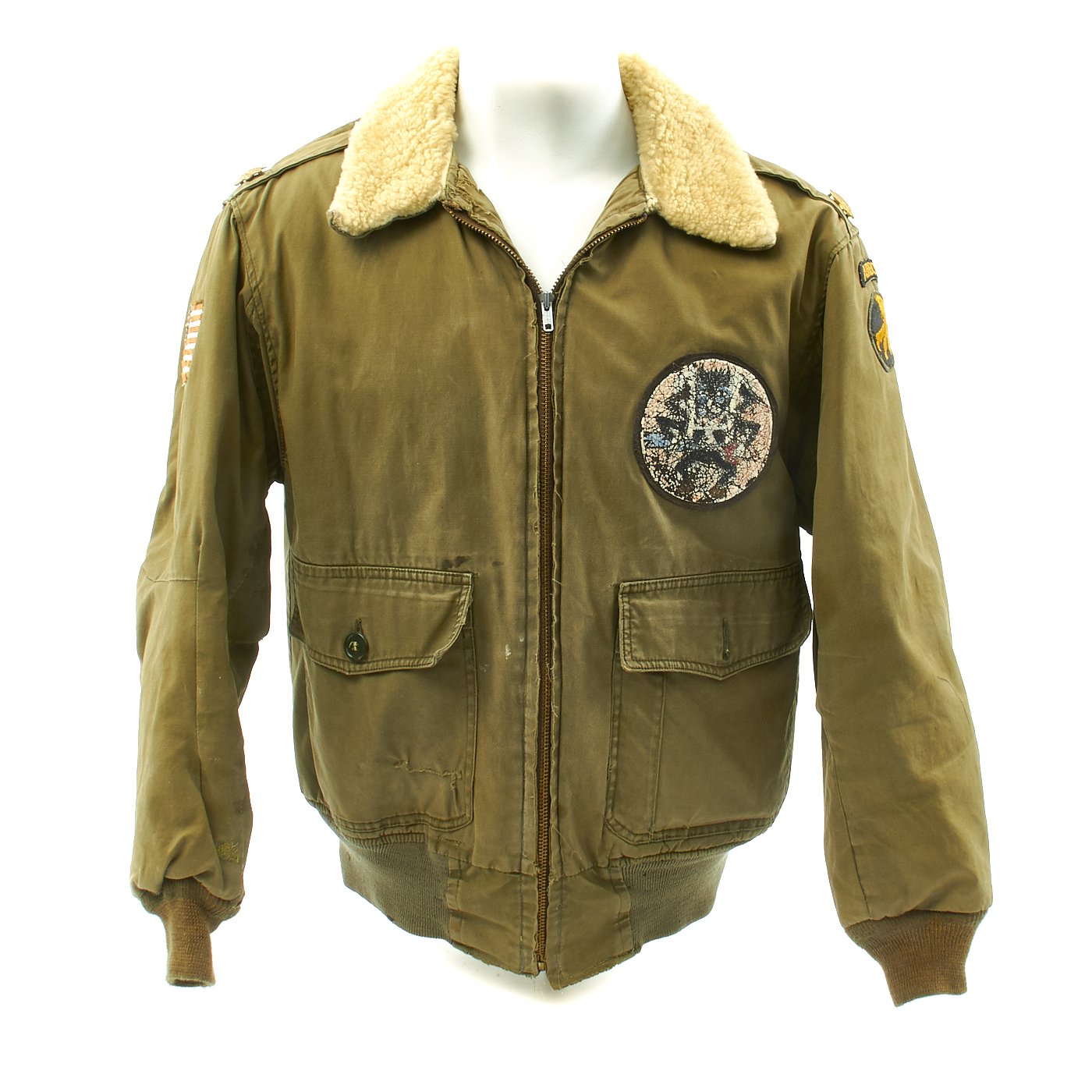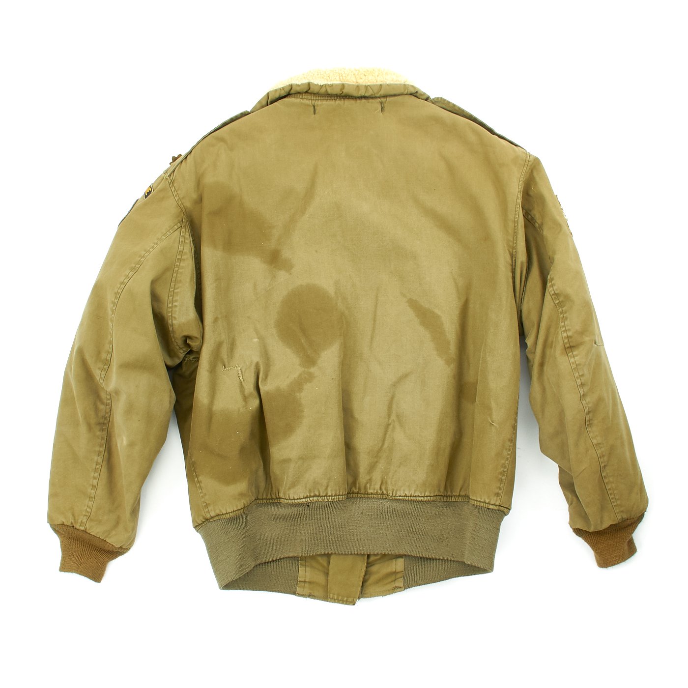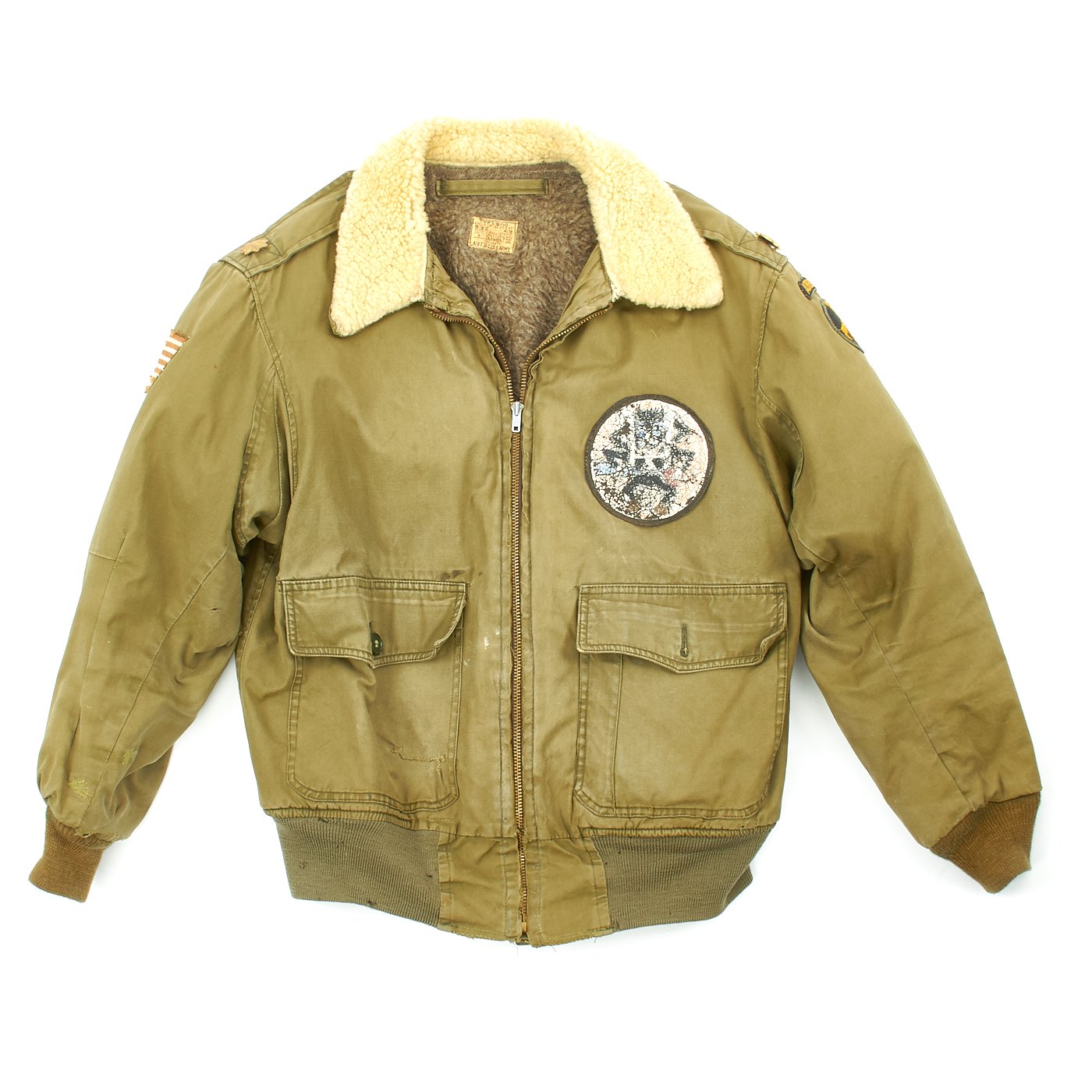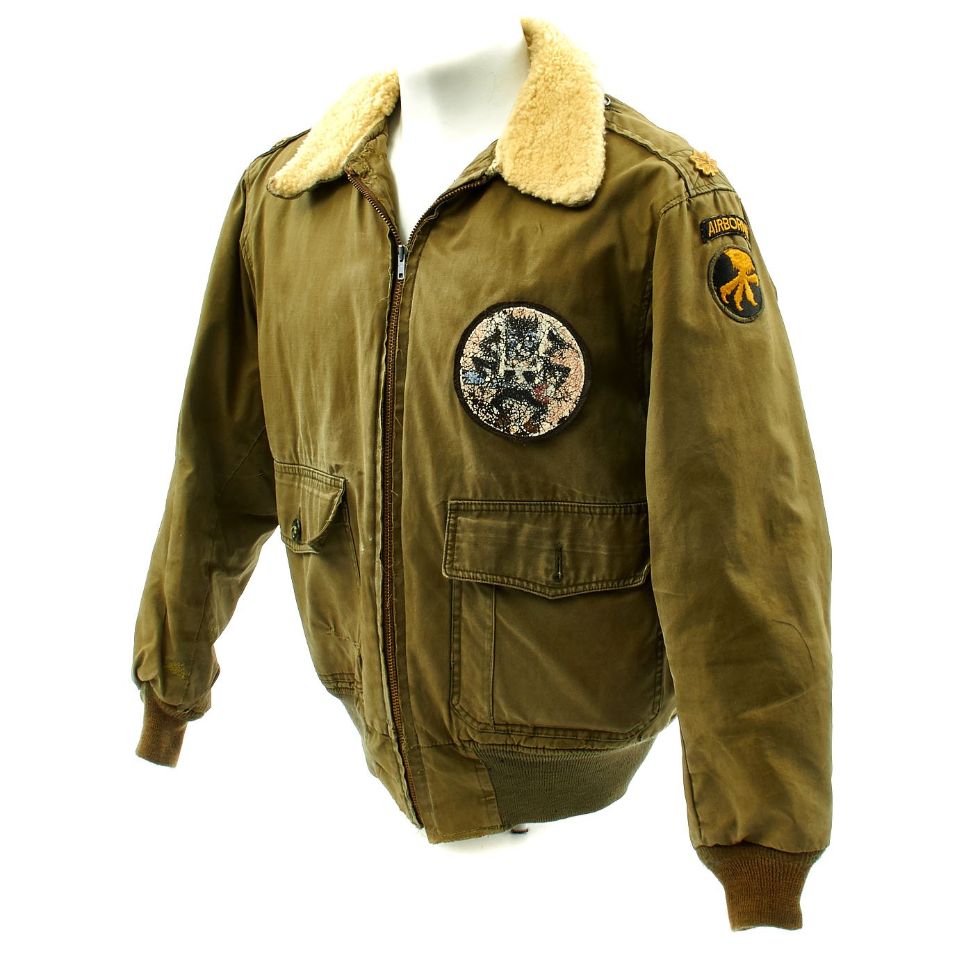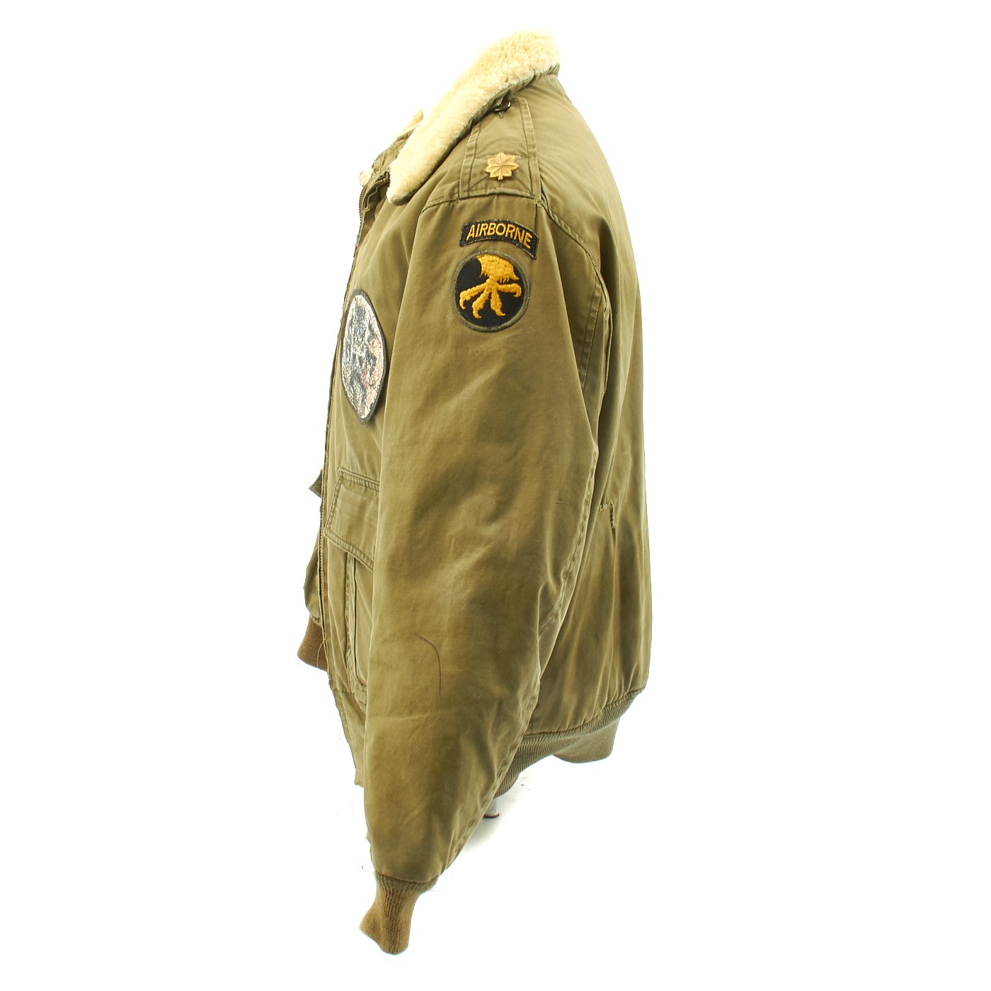 Original Item: One-of-a-kind. During World War Two American Army officer's were authorized to wear B-10 jackets. Of all B-10 jacket only between 5%-8% of wartime produced B-10's were made with a white shearling collars due to material shortages. This is an incredible example in size 42 with original data label and functional zipper. The most notable feature is a hand painted leather circular 507th PIR insignia patch which is stitched to the left chest. The left shoulder bears a 13th Airborne patch, the right upper sleeve has a heavily embroidered American Flag "invasion" patch and each epaulet has pin back Major oak leaf rank insignia pins. Unfortunately the jacket is not named. It is offered in wonderful condition and is an extremely rare Airborne officer jacket. Also included is a period printed 507th Parachute Infantry Regiment insignia card. This jacket was acquired from the Texas Museum of Military History Auction/The Sam Nesmith Collection. Museum documentation is included.