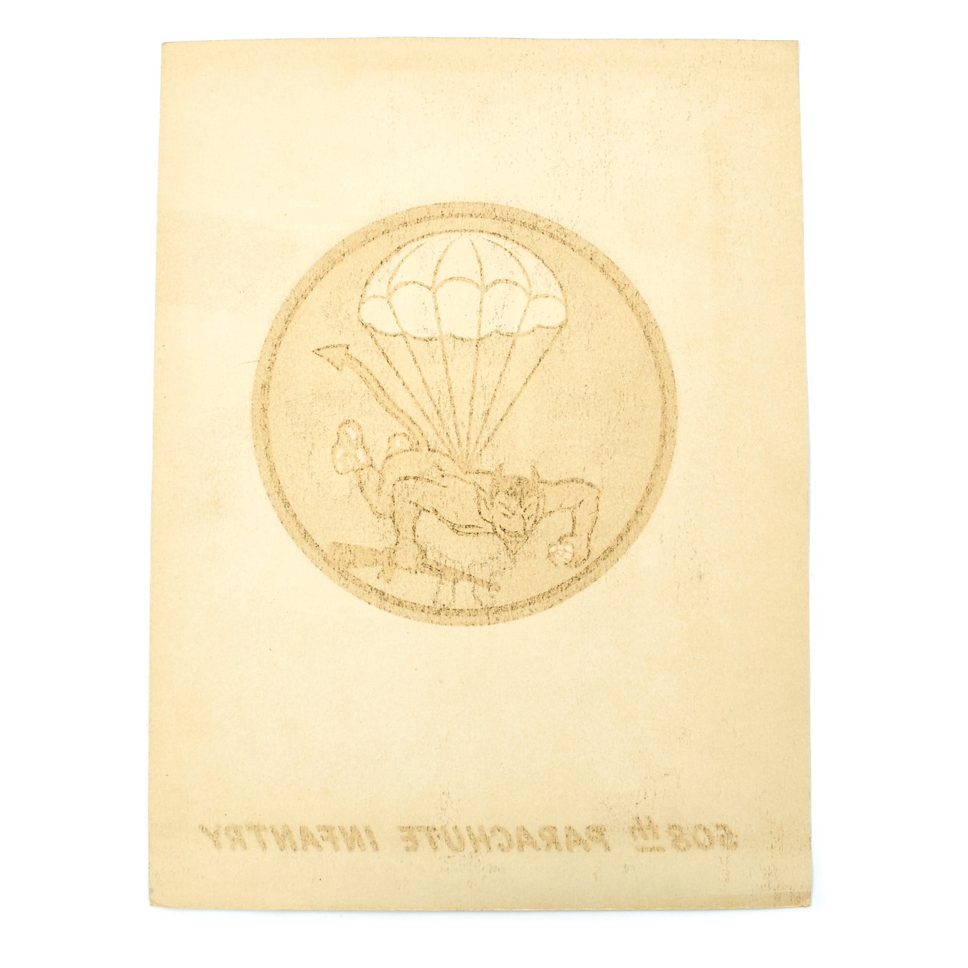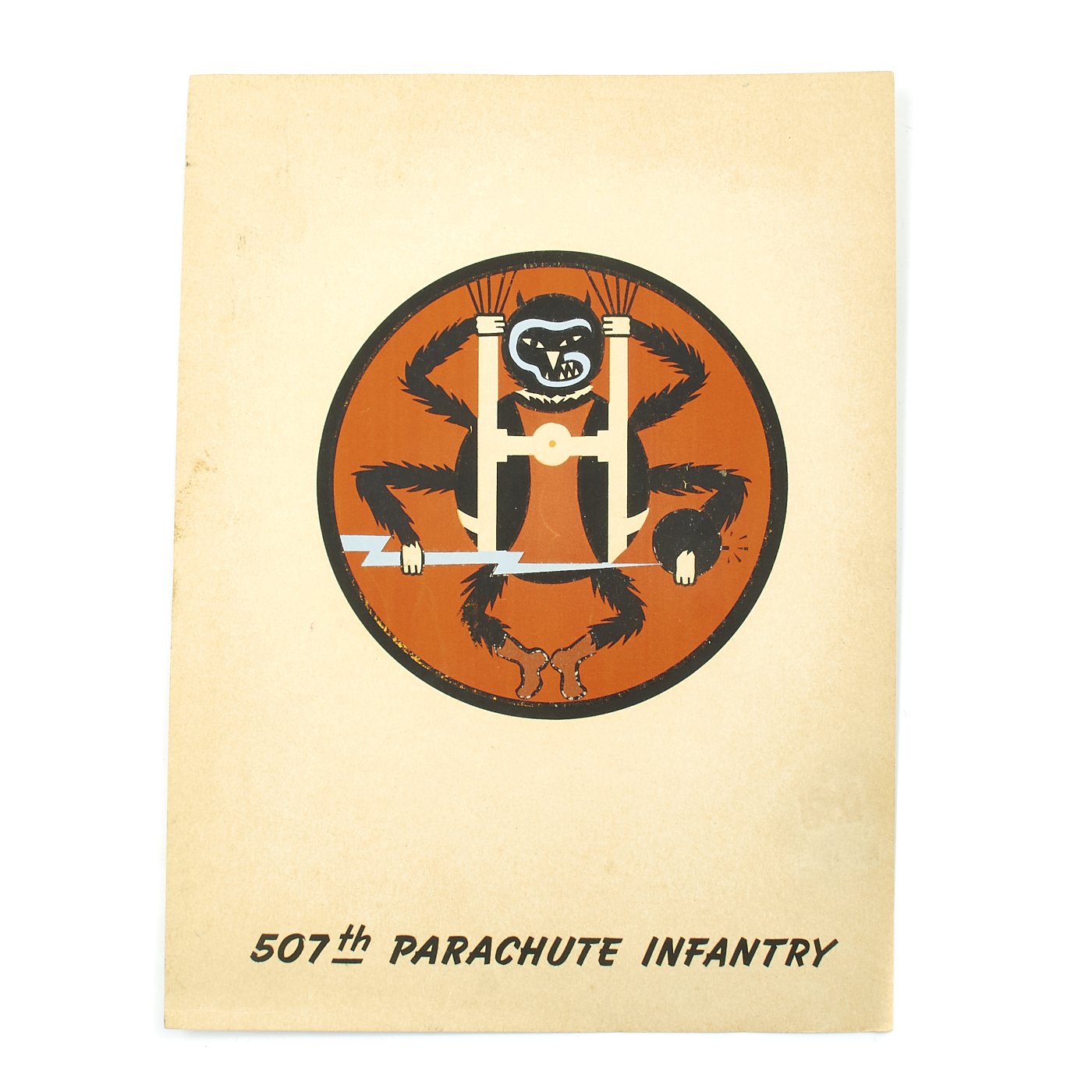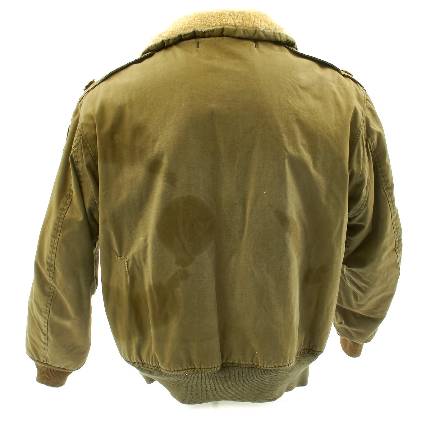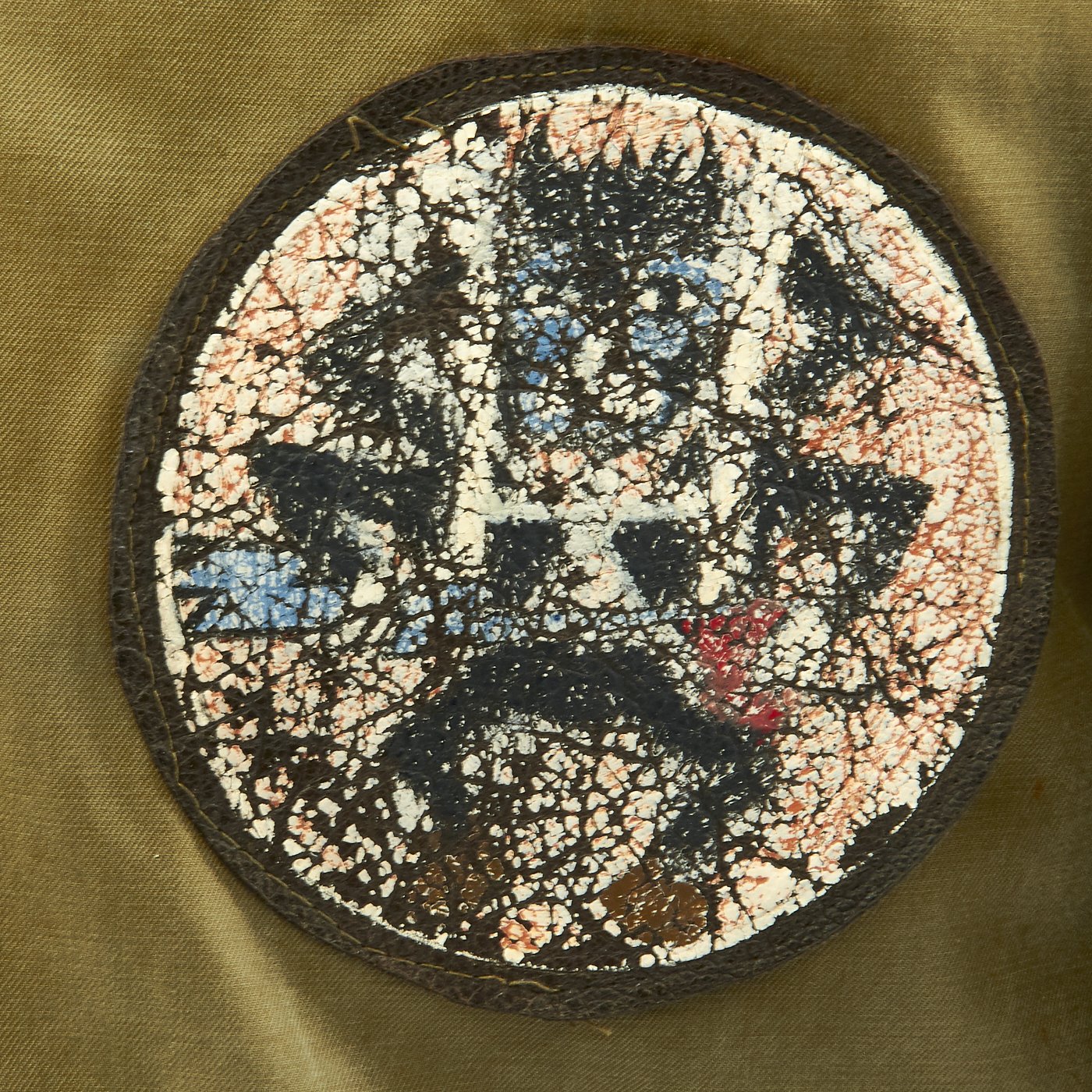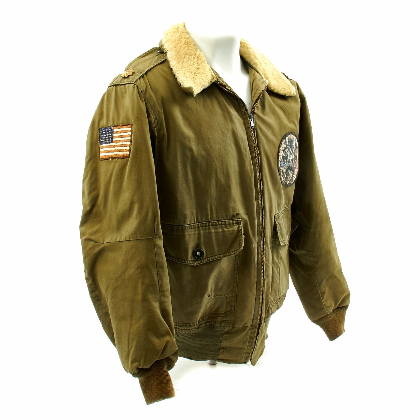 Original Item: One-of-a-kind. During World War Two American Army officer's were authorized to wear B-10 jackets. Of all B-10 jacket only between 5%-8% of wartime produced B-10's were made with a white shearling collars due to material shortages. This is an incredible example in size 42 with original data label and functional zipper. The most notable feature is a hand painted leather circular 507th PIR insignia patch which is stitched to the left chest. The left shoulder bears a 13th Airborne patch, the right upper sleeve has a heavily embroidered American Flag "invasion" patch and each epaulet has pin back Major oak leaf rank insignia pins. Unfortunately the jacket is not named. It is offered in wonderful condition and is an extremely rare Airborne officer jacket. Also included is a period printed 507th Parachute Infantry Regiment insignia card. This jacket was acquired from the Texas Museum of Military History Auction/The Sam Nesmith Collection. Museum documentation is included.