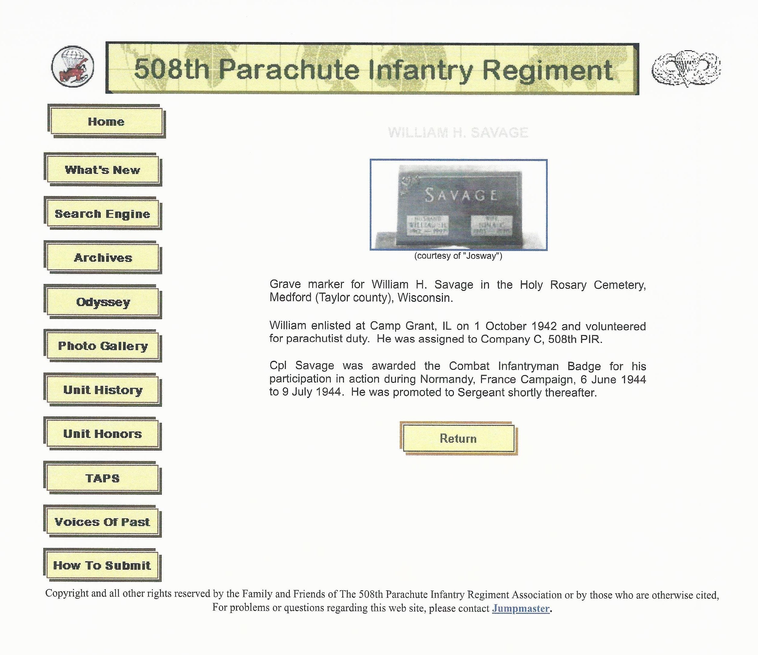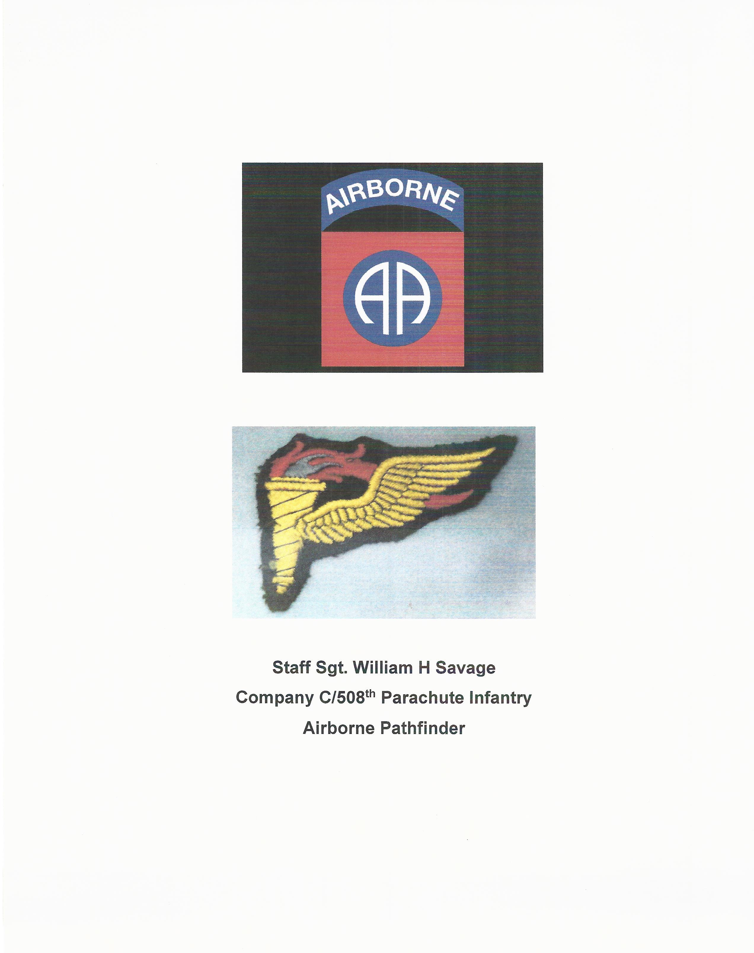 Original Items: One-of-a-kind. This incredible grouping belonged to a Sergeant William H. Savage who was assigned to the the 508th Parachute Infantry Regiment Company C who jumped on D-Day into Normandy and then as a Pathfinder in advance of the other airborne troops during Operation Market Garden. William enlisted at Camp Grant, IL on 1 October 1942 and volunteered for parachutist duty. He was assigned to Company C, 508th PIR. Cpl. Savage was awarded the Combat Infantryman Badge for his participation in action during Normandy, France Campaign, from June 6th, 1944 through July 9th 1944. He was promoted to Sergeant shortly thereafter. He can be found on the 508th PIR accusation website at this link. A wartime photo of Savage can be found on a 1943 roster for COMPANY C at CAMP MACKALL at this link.