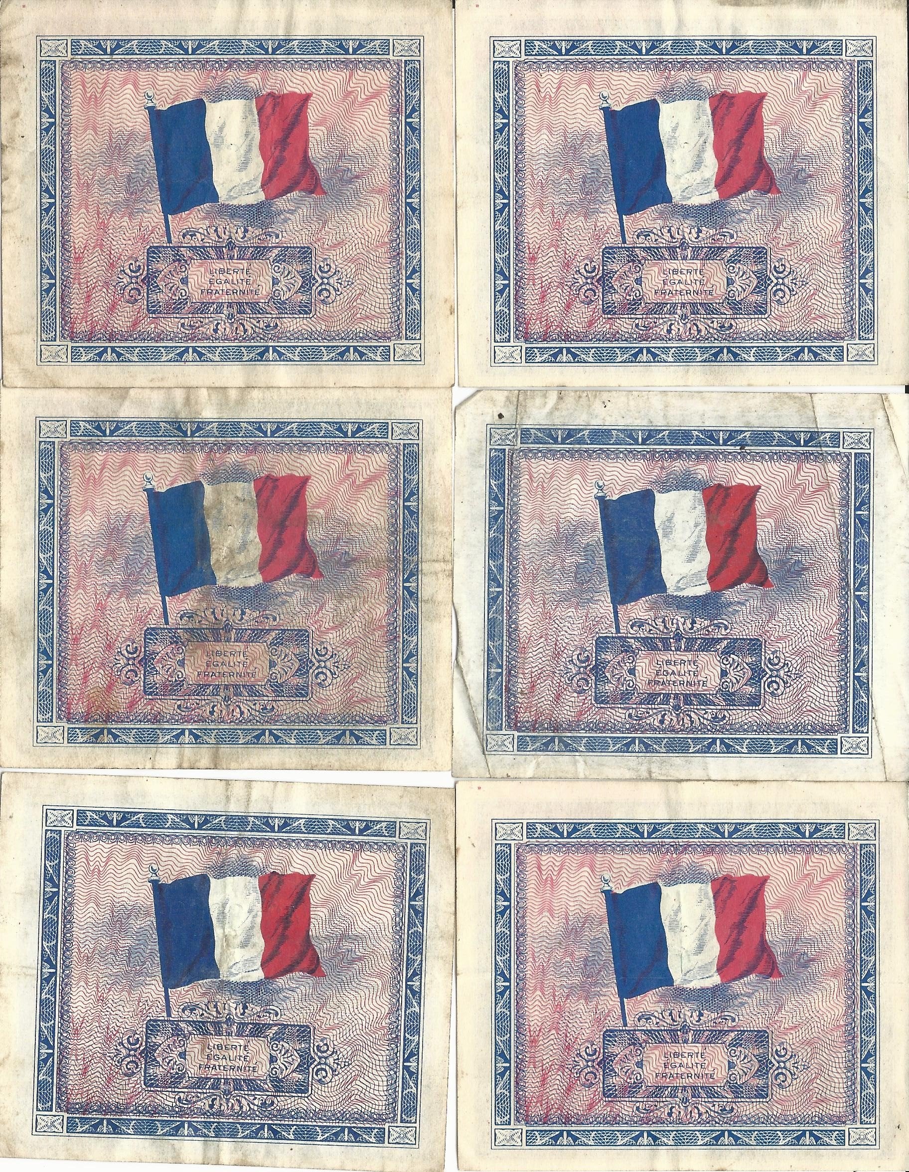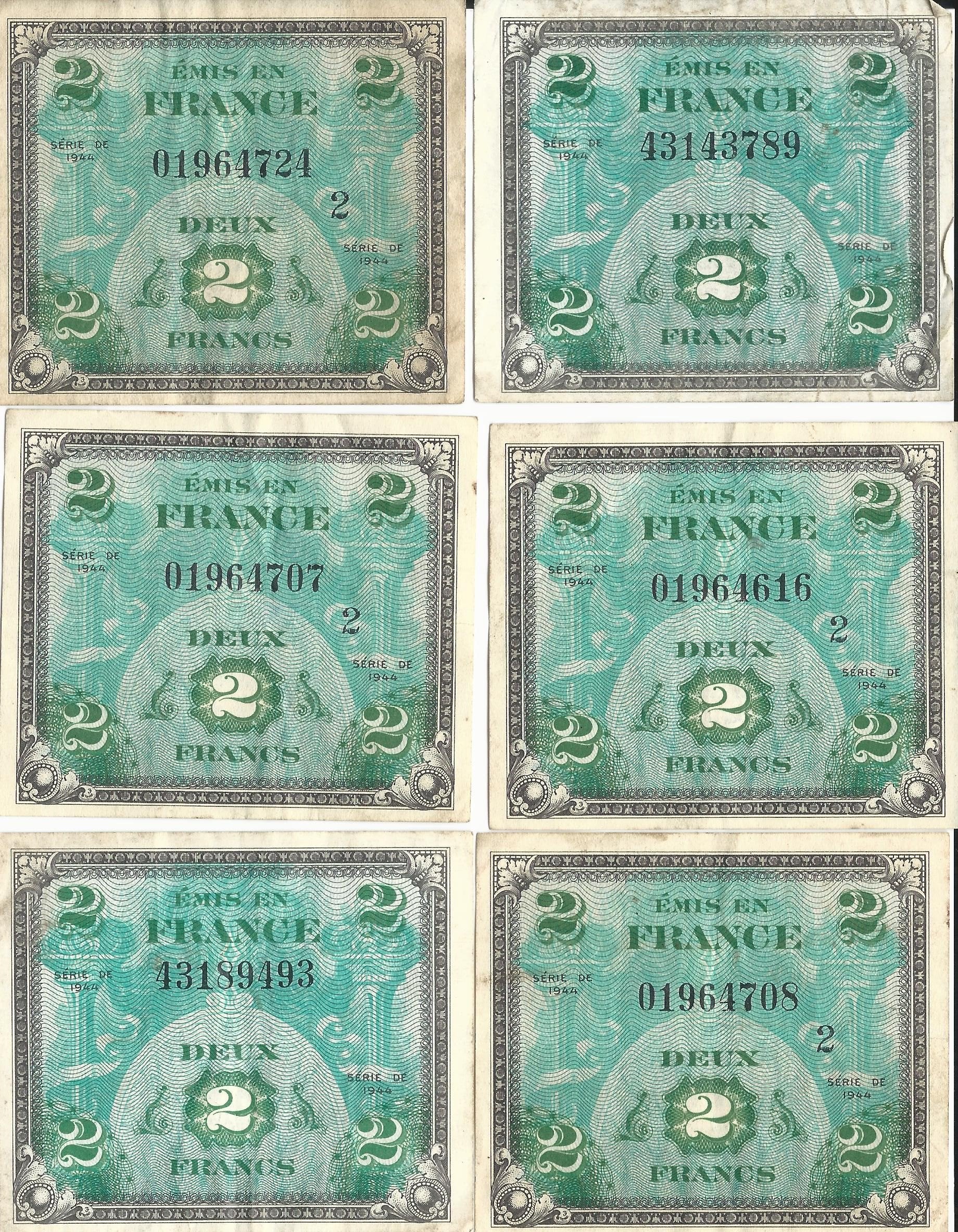 - Six 1944 Dated Two French Franc Notes