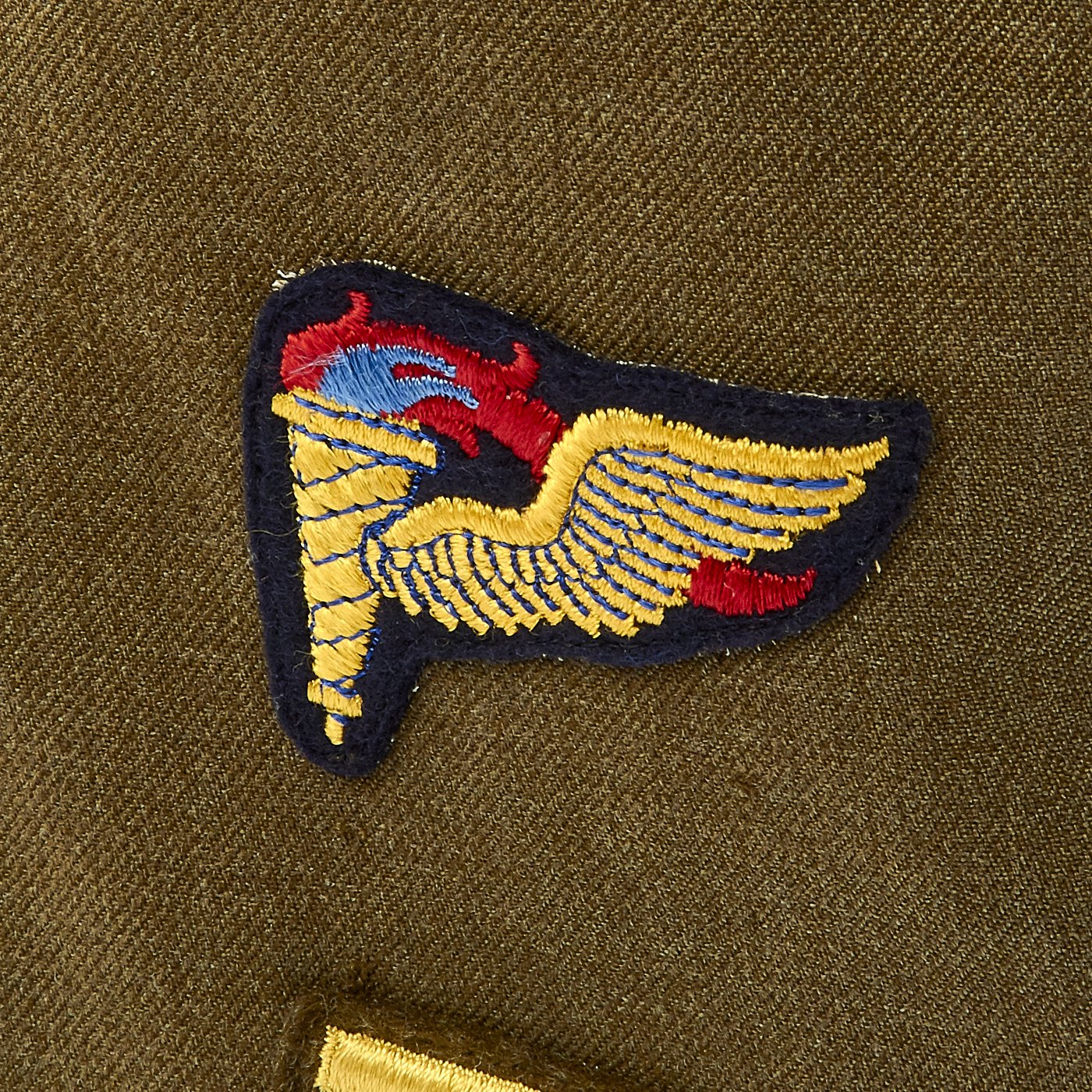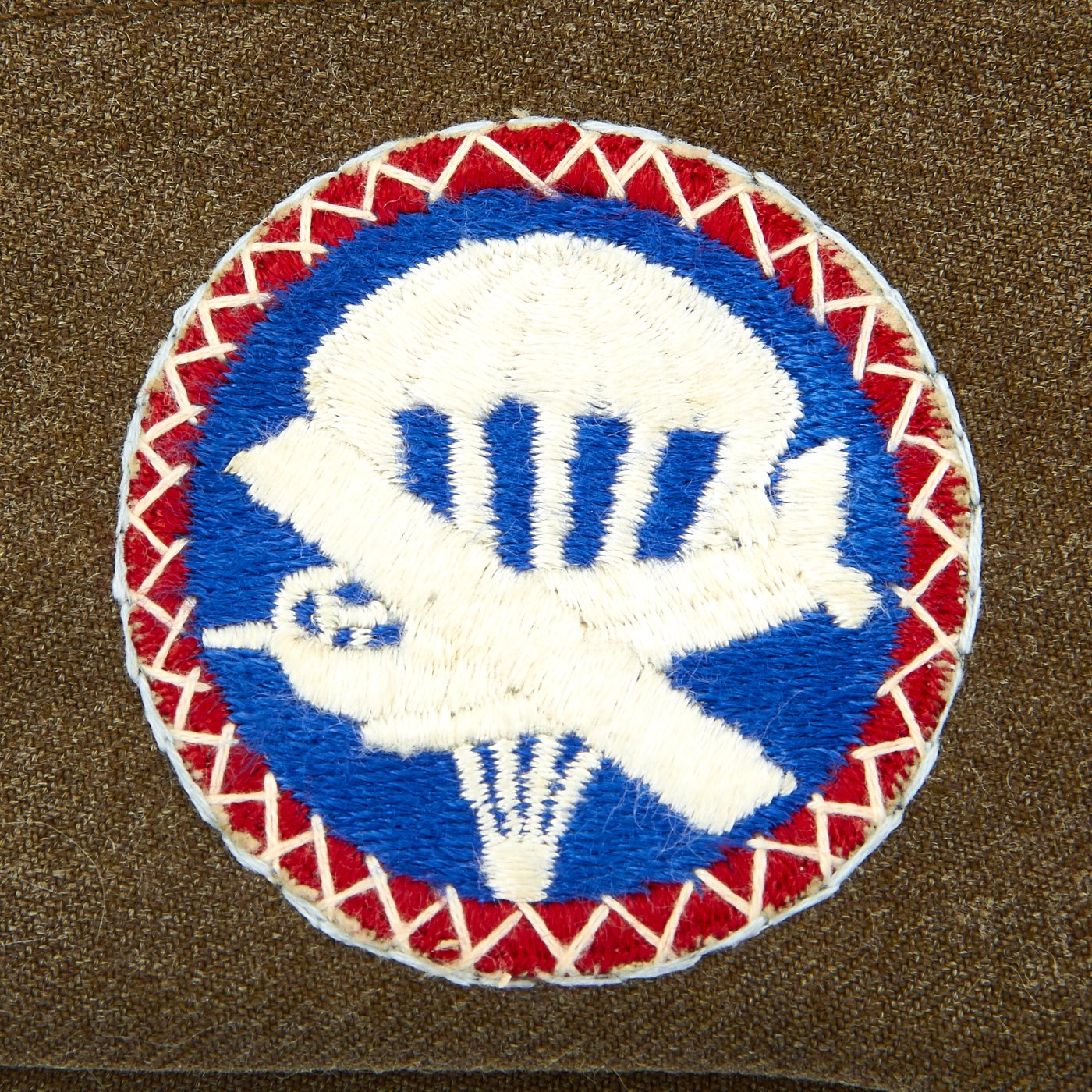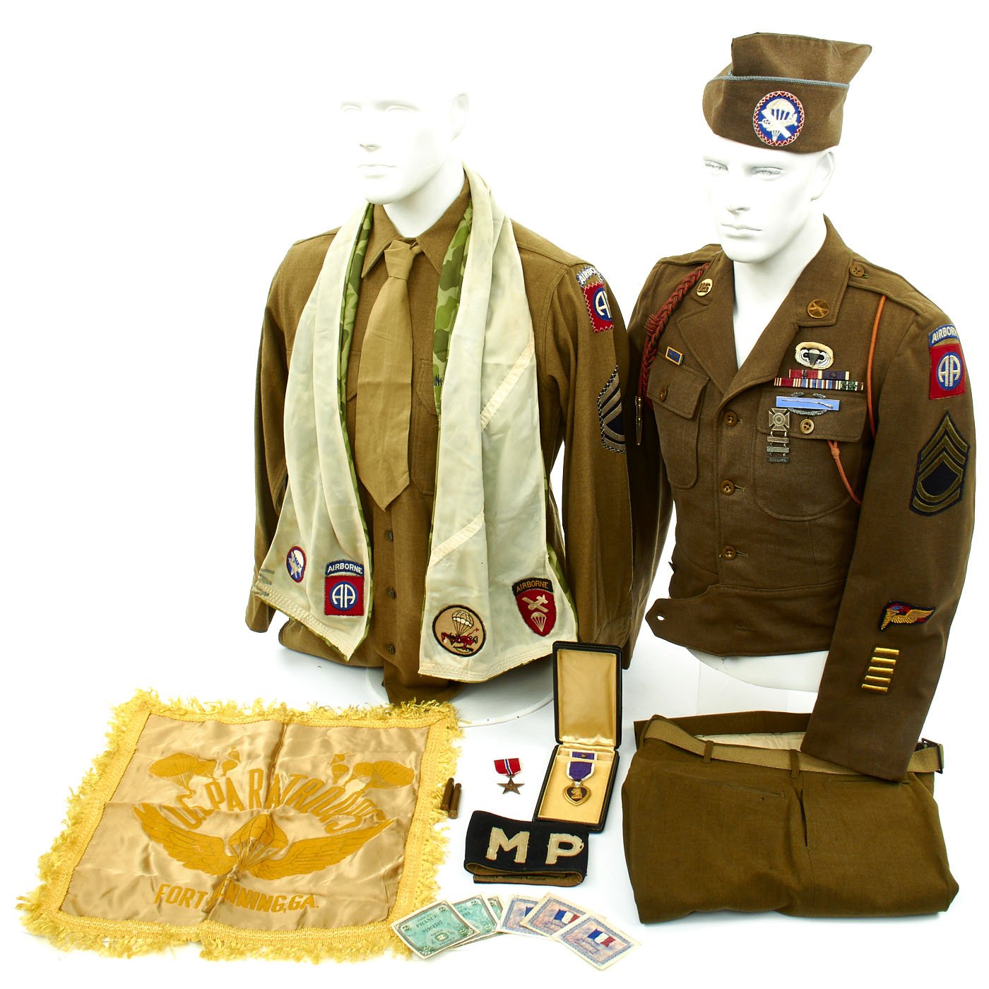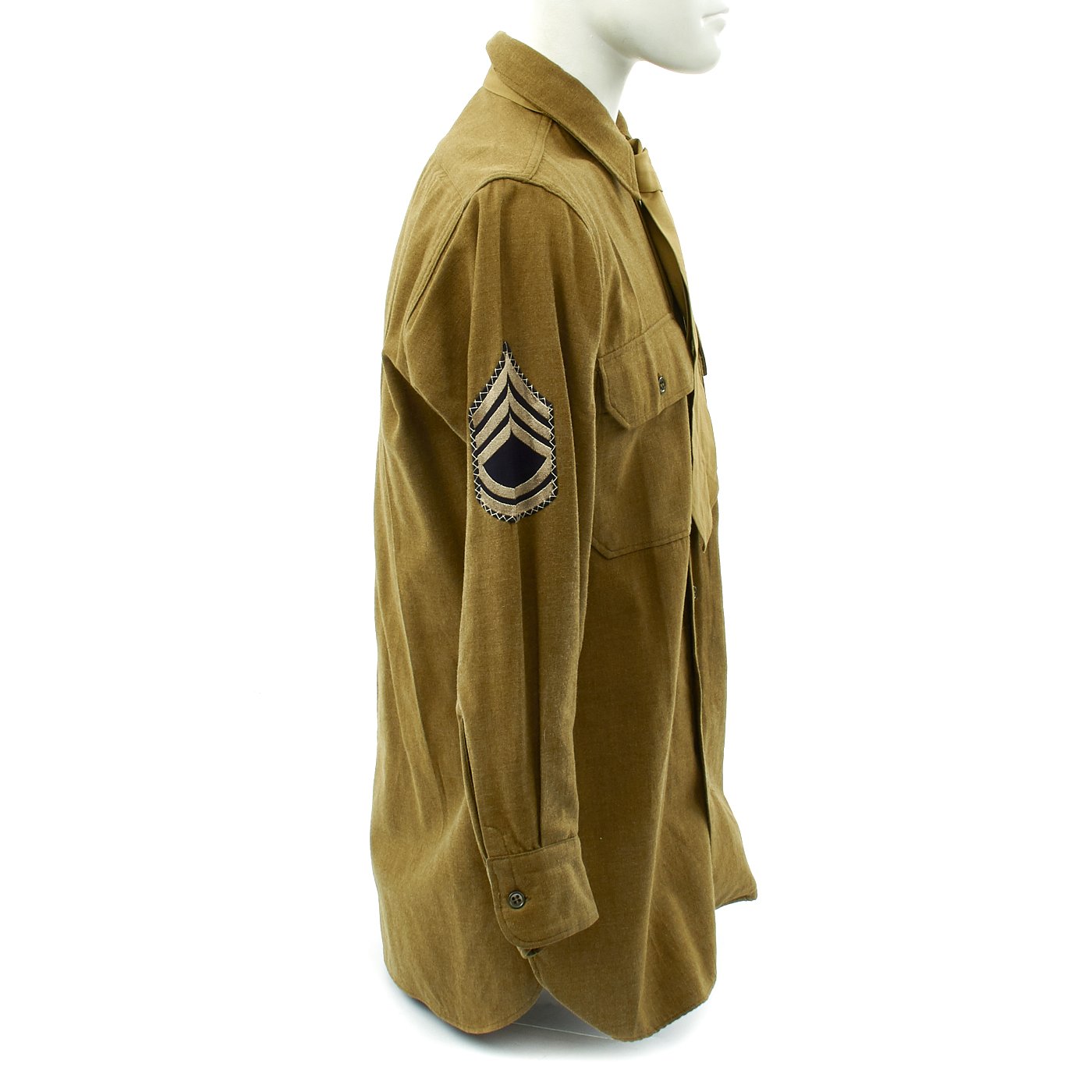 - Army issue wool shirt with 82nd Airborne Division patch to left shoulder and Technical Sergeant Chevrons, all patches stitched with attractive white cross stitching.