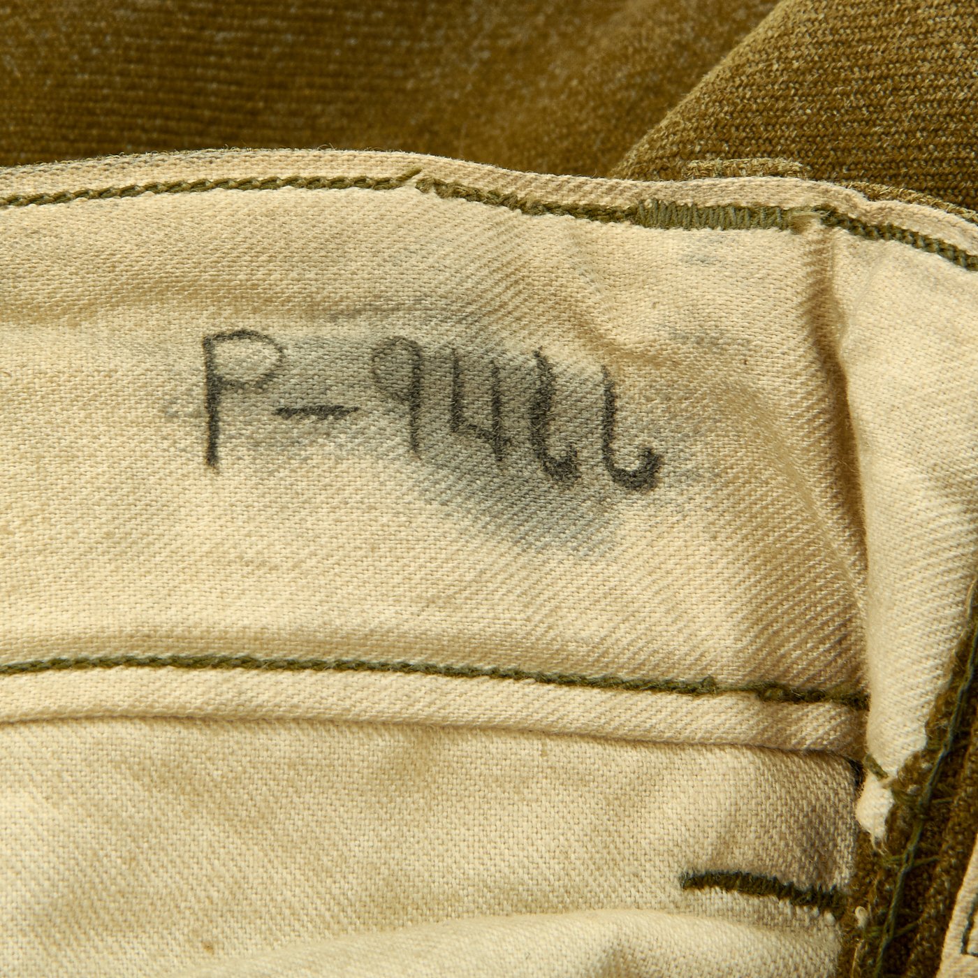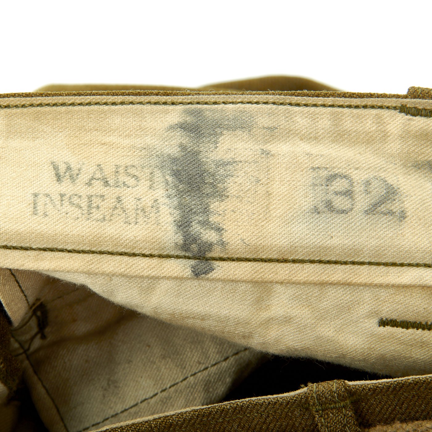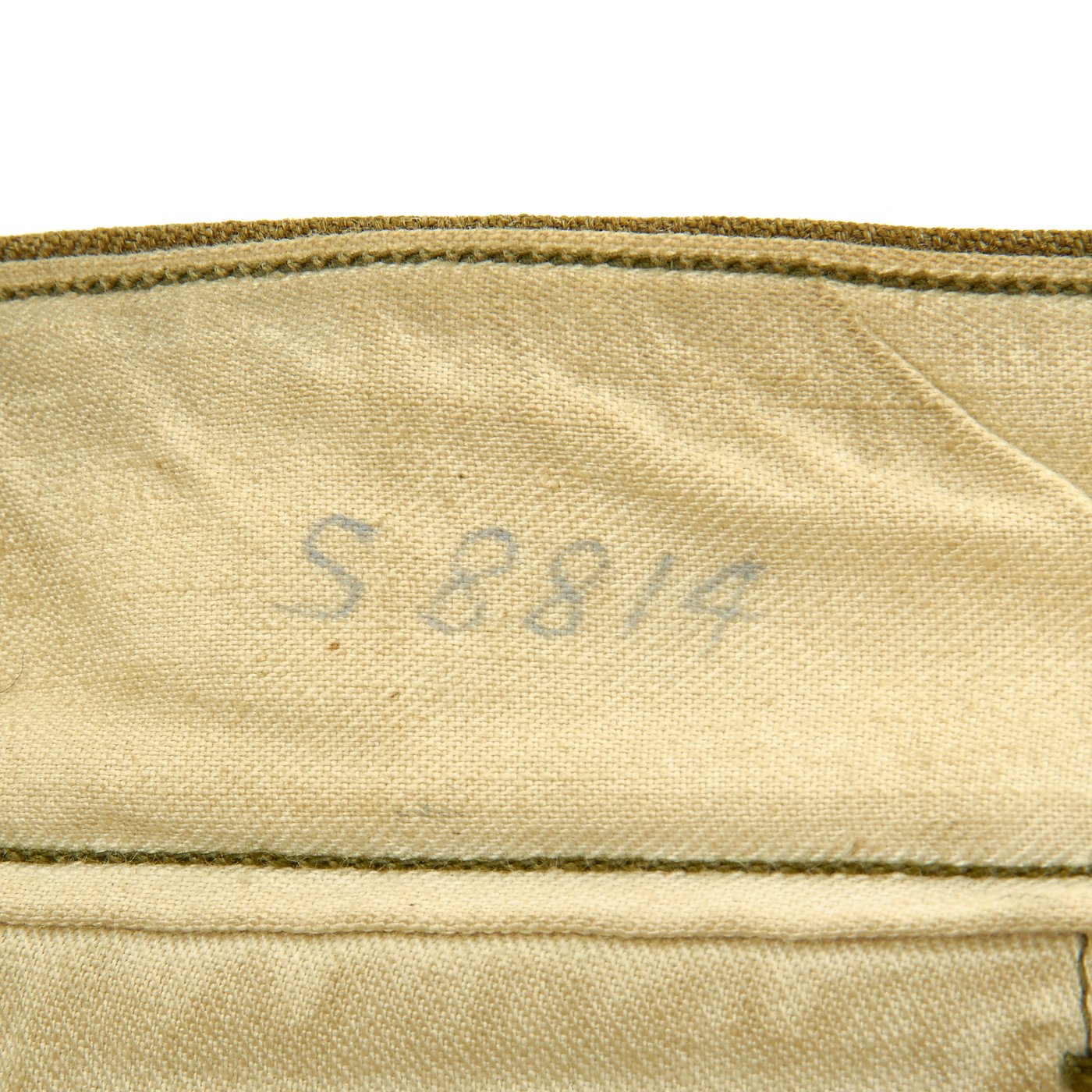 - Size 32 x 29 trousers marked with laundry number S-8814 (same as Ike Jacket).