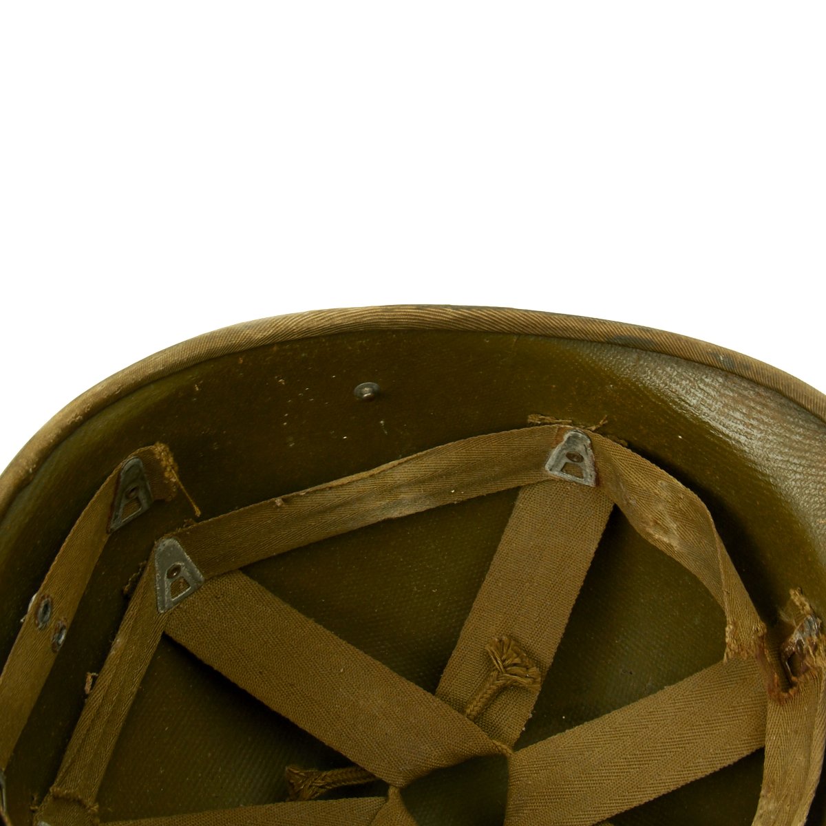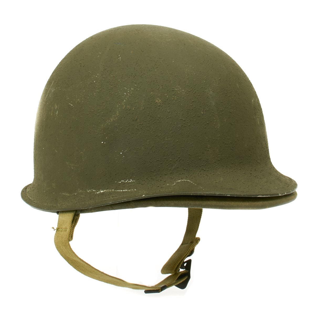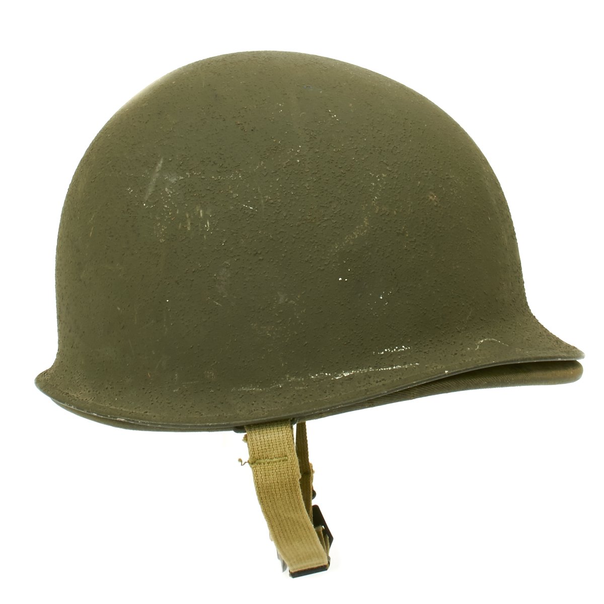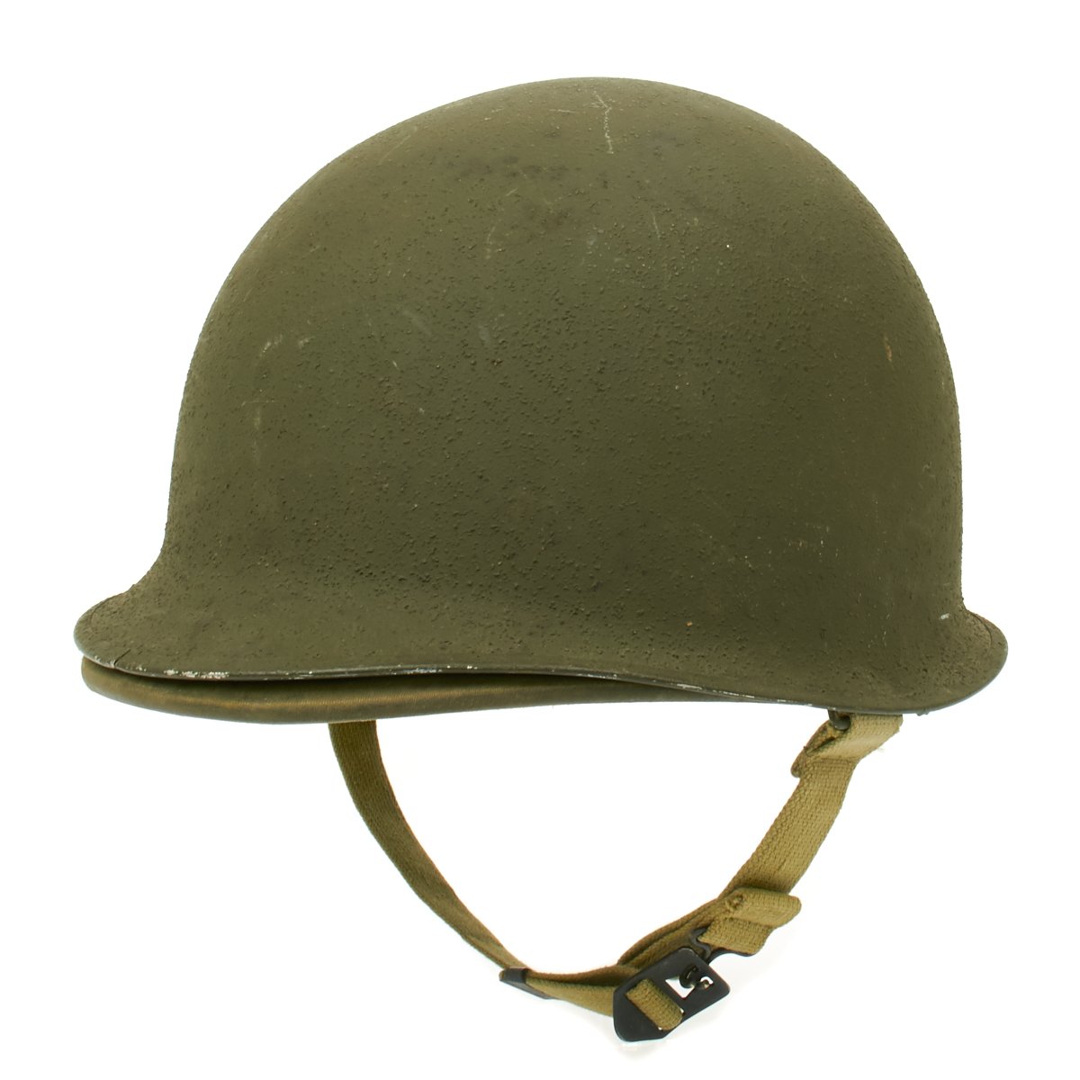 Original Item: Only One Available. The U.S. WWII M-1 helmet was only produced from 1941 to 1945. The first production batch resulted with over 323,510 M-1 helmets before the start of the American involvement in the war. This helmet is stamped 624B which indicates the approximate manufacture date of August 1943.