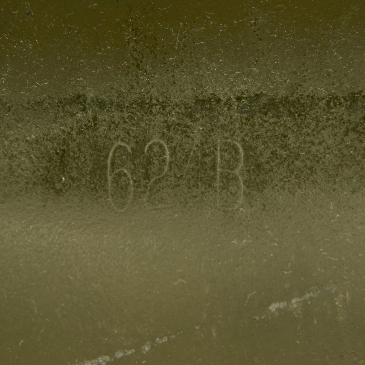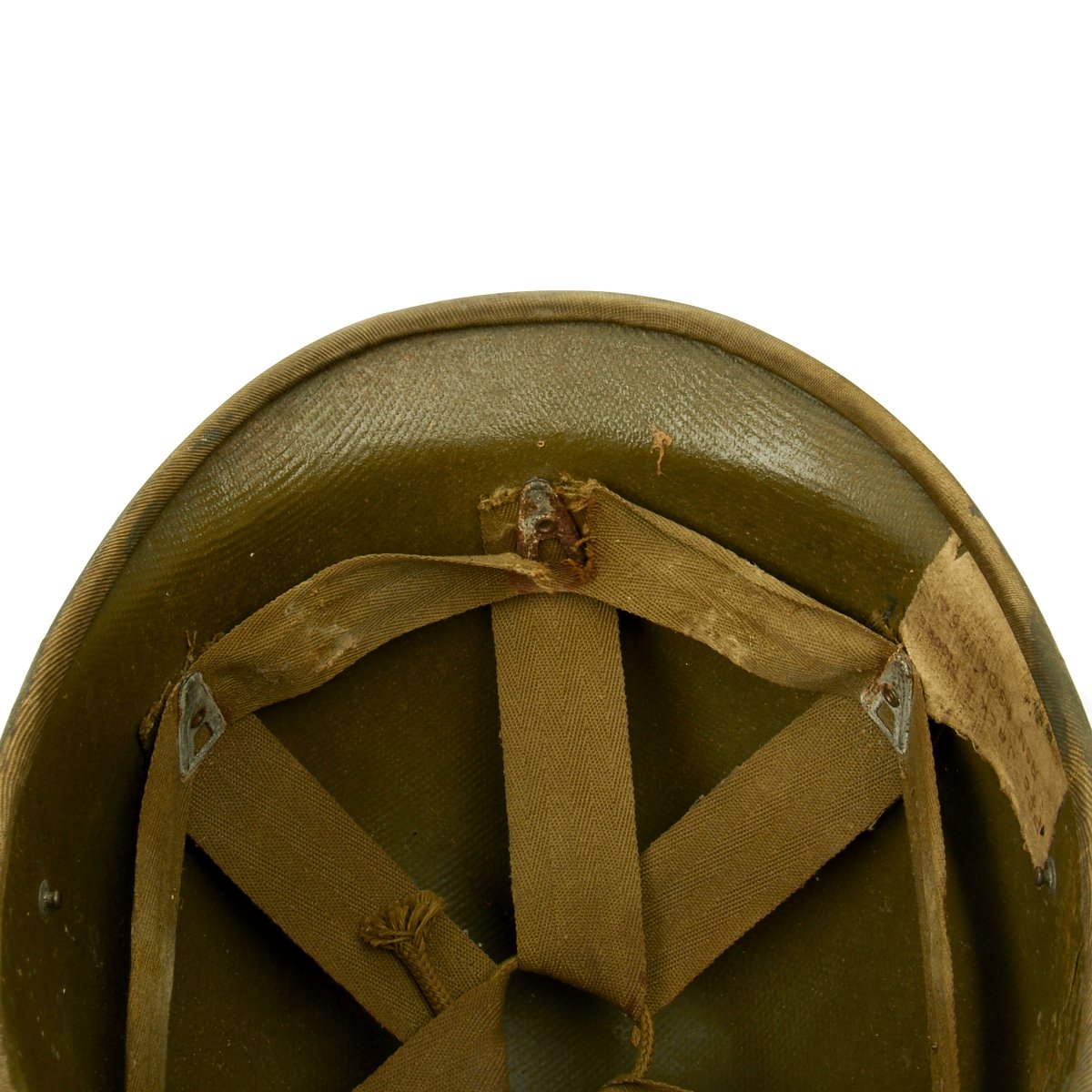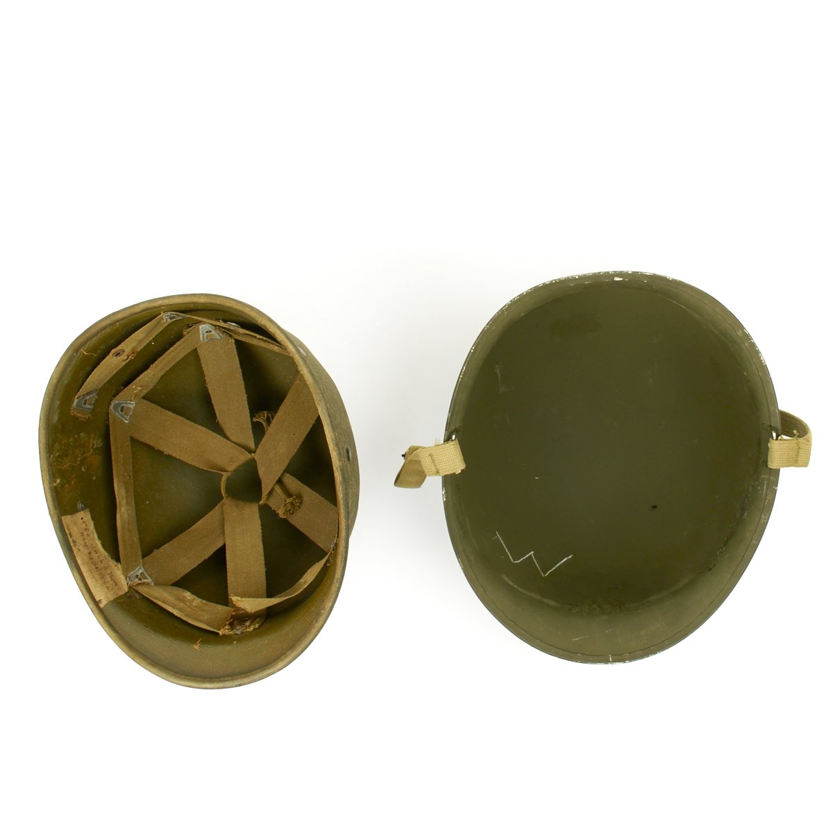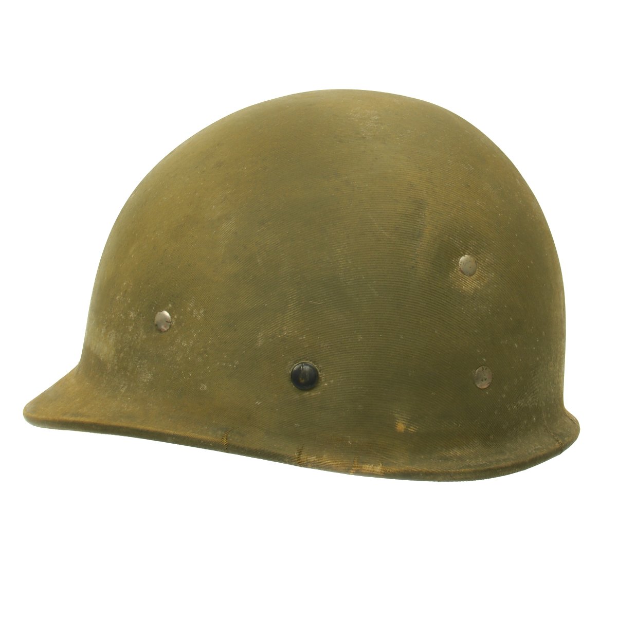 Original Item: Only One Available. The U.S. WWII M-1 helmet was only produced from 1941 to 1945. The first production batch resulted with over 323,510 M-1 helmets before the start of the American involvement in the war. This helmet is stamped 624B which indicates the approximate manufacture date of August 1943.
