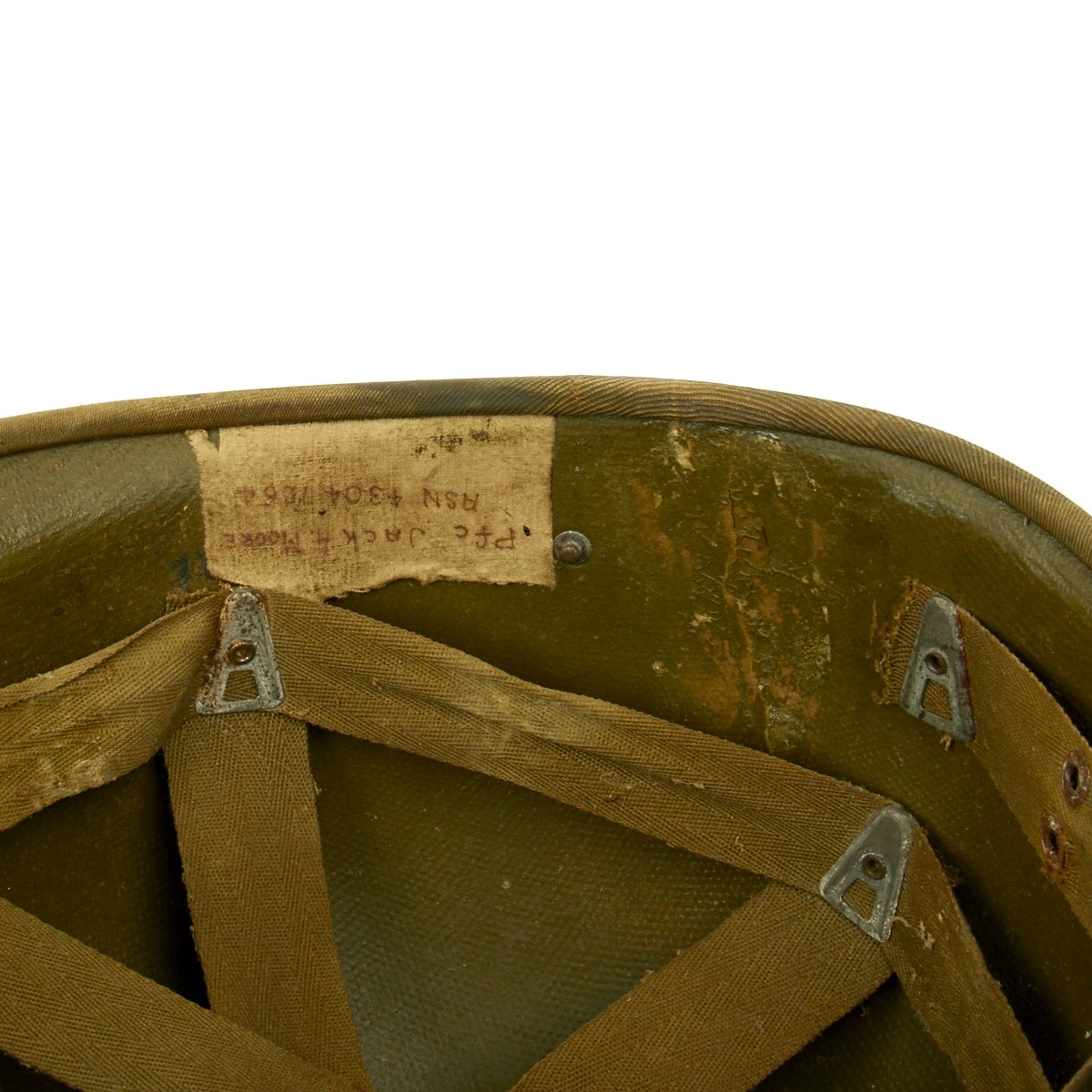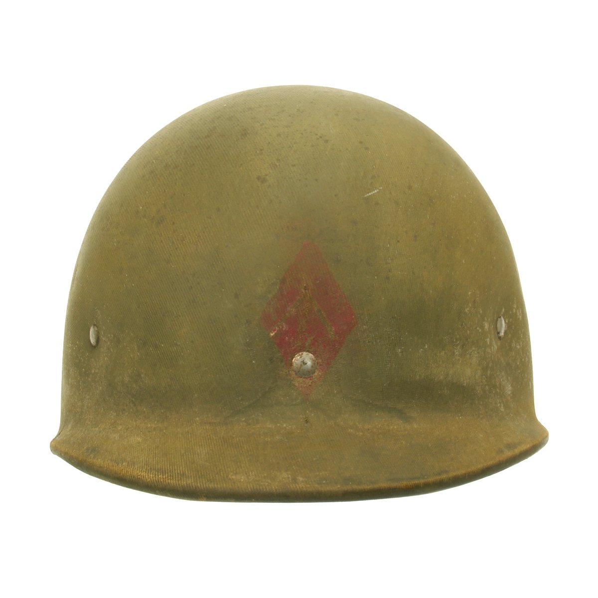 This example is in excellent condition and features a hand painted red diamond to the front for the 5th Infantry Division. It is also NAMED on the inside of the liner as follows: