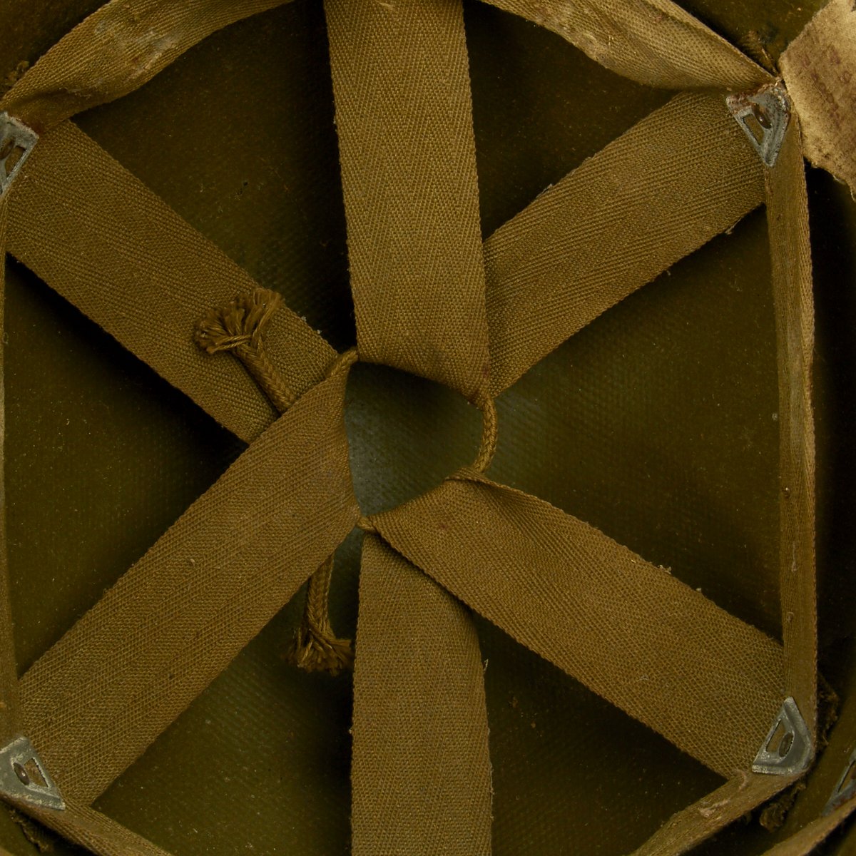 The shape and characteristics of the Hawley liner were identical to those of the fiberglass counterpart. The differences were the material of construction and the absence from the front metal grommet, which is where insignia could be placed. The suspension was made of a series of canvas straps. The sweatband has a leather cover. The whole assembly was riveted to the body of the liner. Small buckles were provided to adjust the suspension. However, doing so was difficult and very clumsy. The hawley liner was issued in very small numbers during the early days of World War Two.